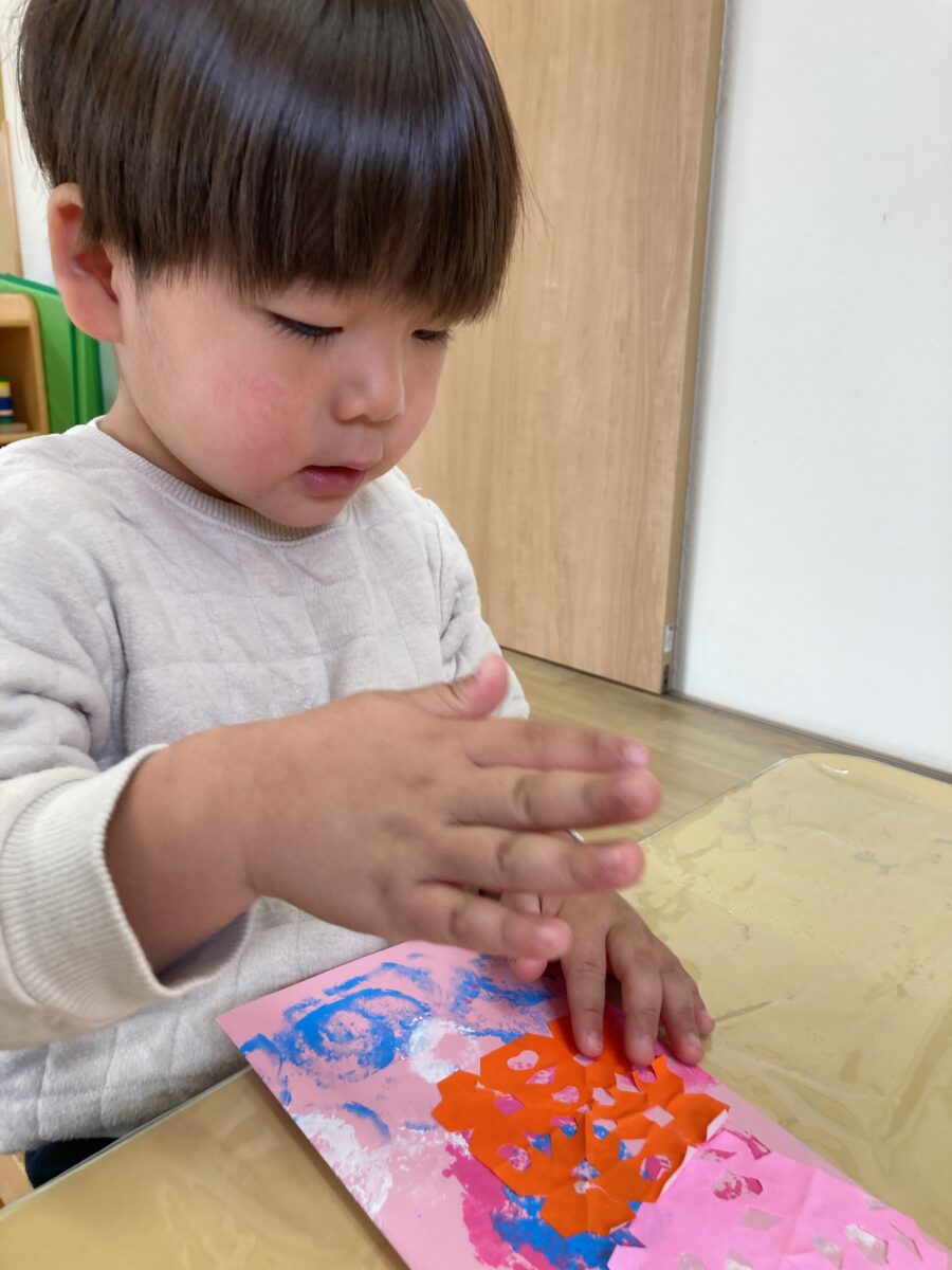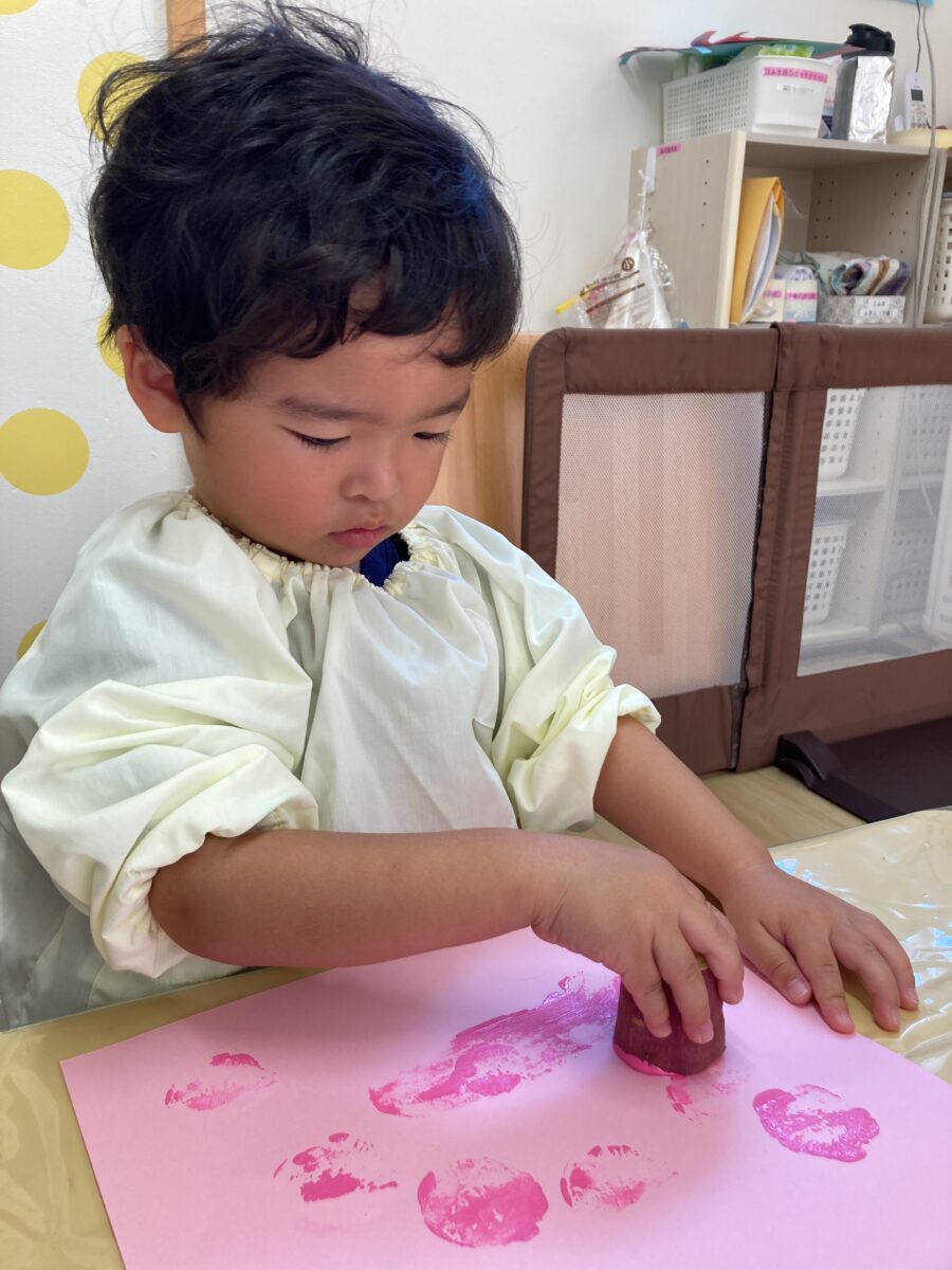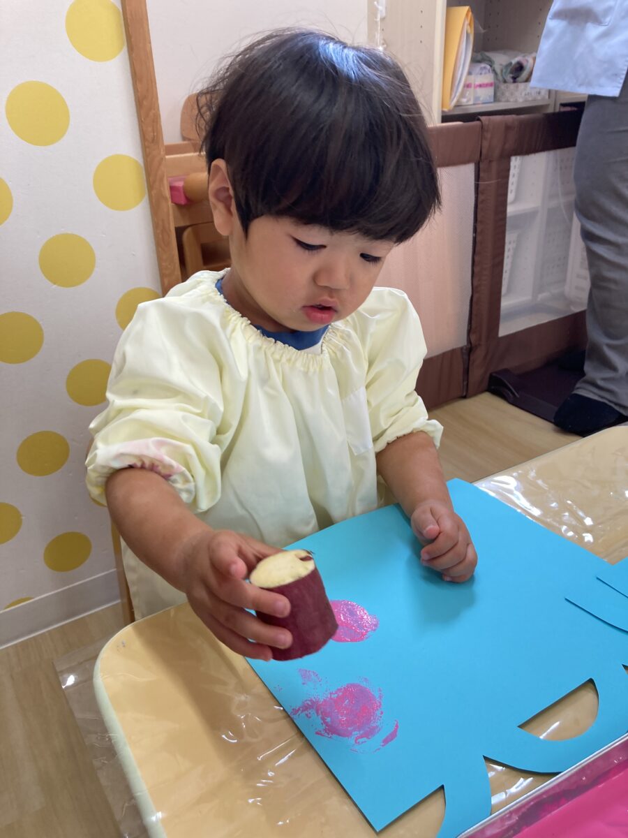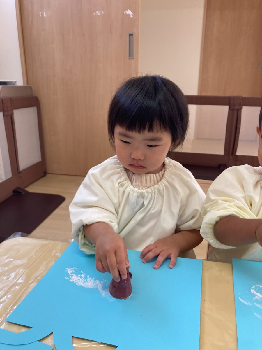 2歳児さんはお芋の感触を楽しみながら押していました![]()
