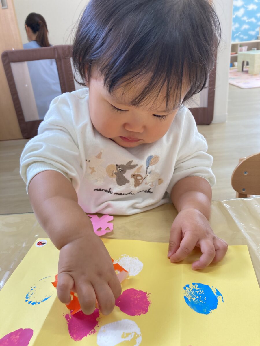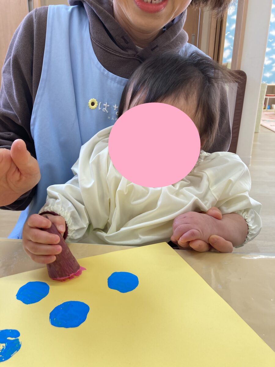 0歳児さんは、保育士と一緒にポンポン🍠![]()