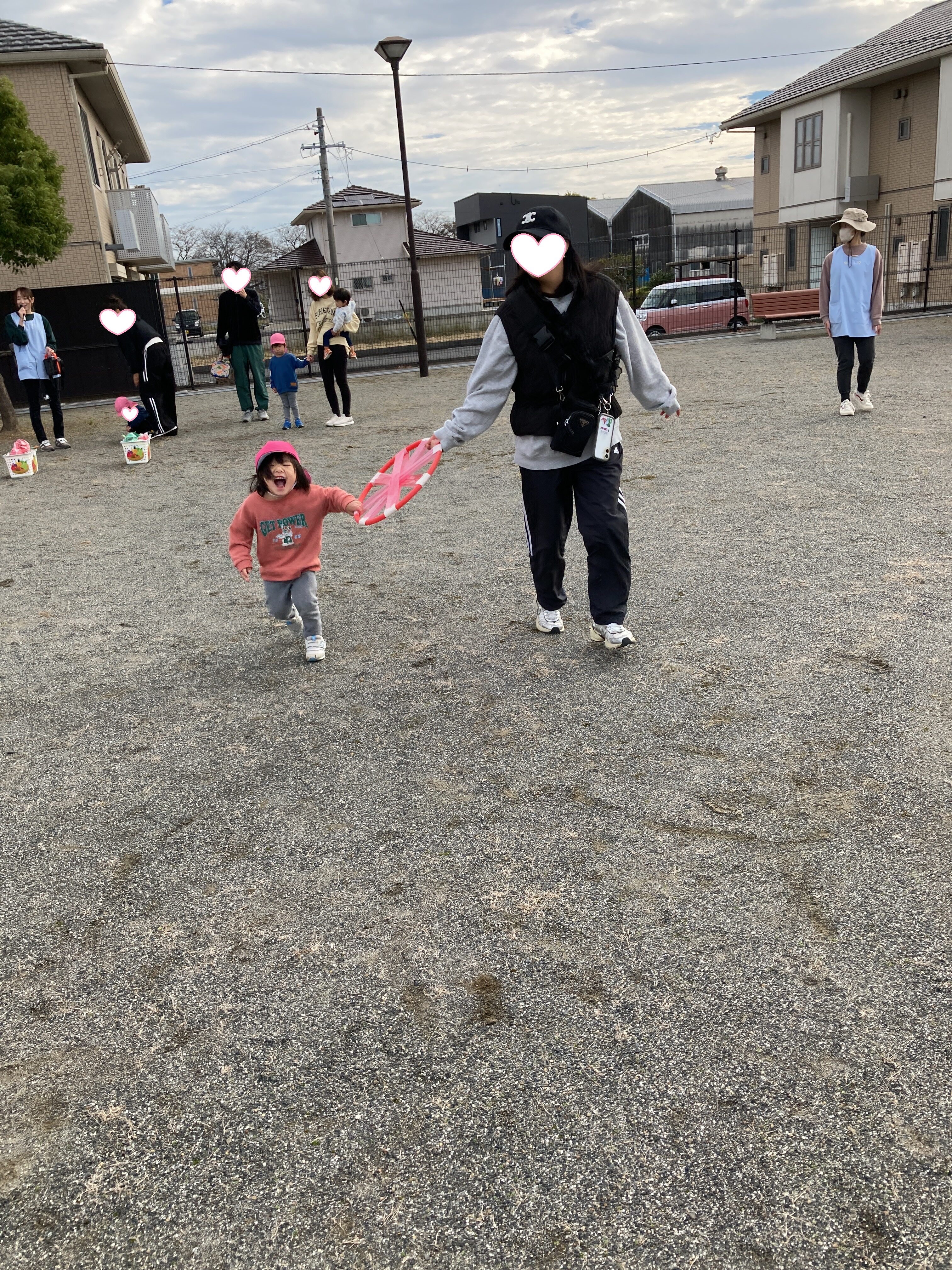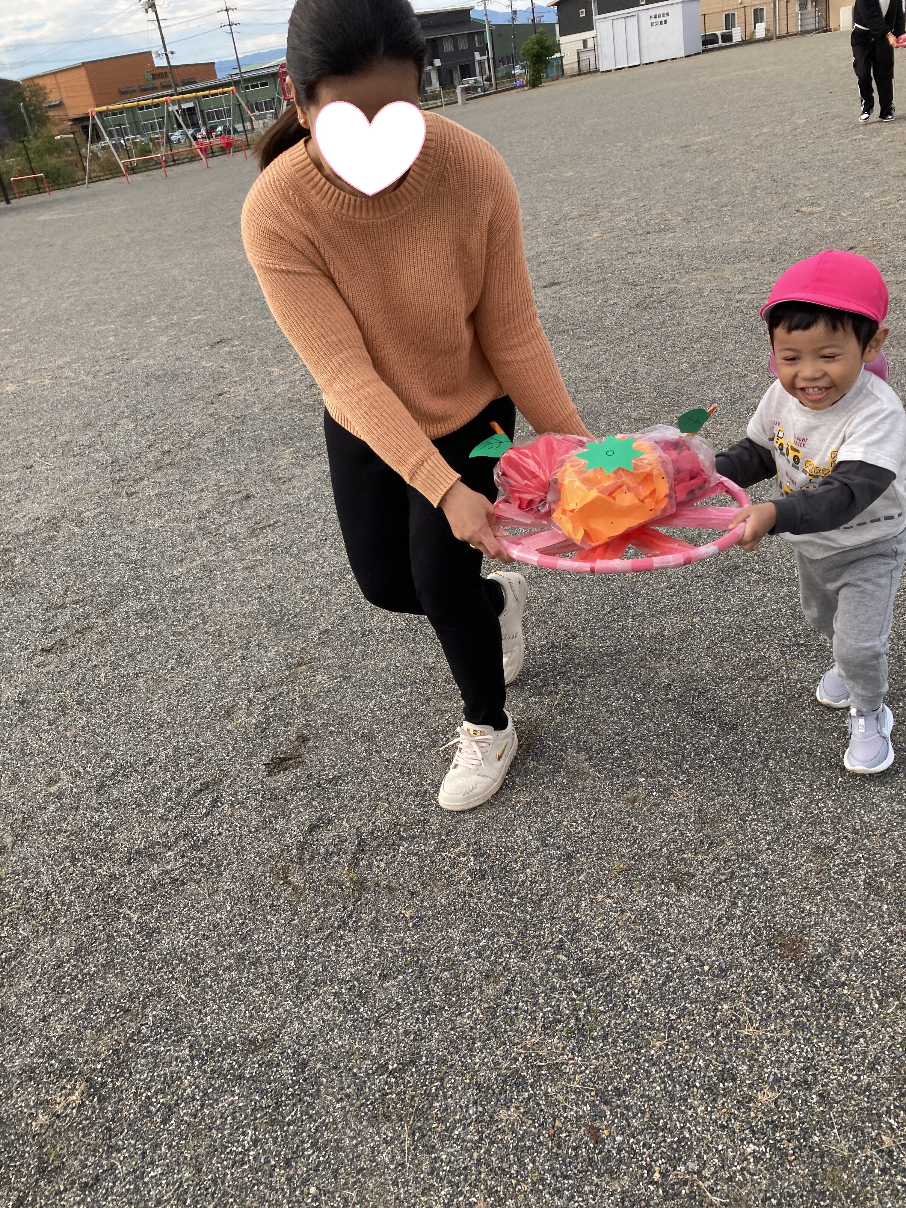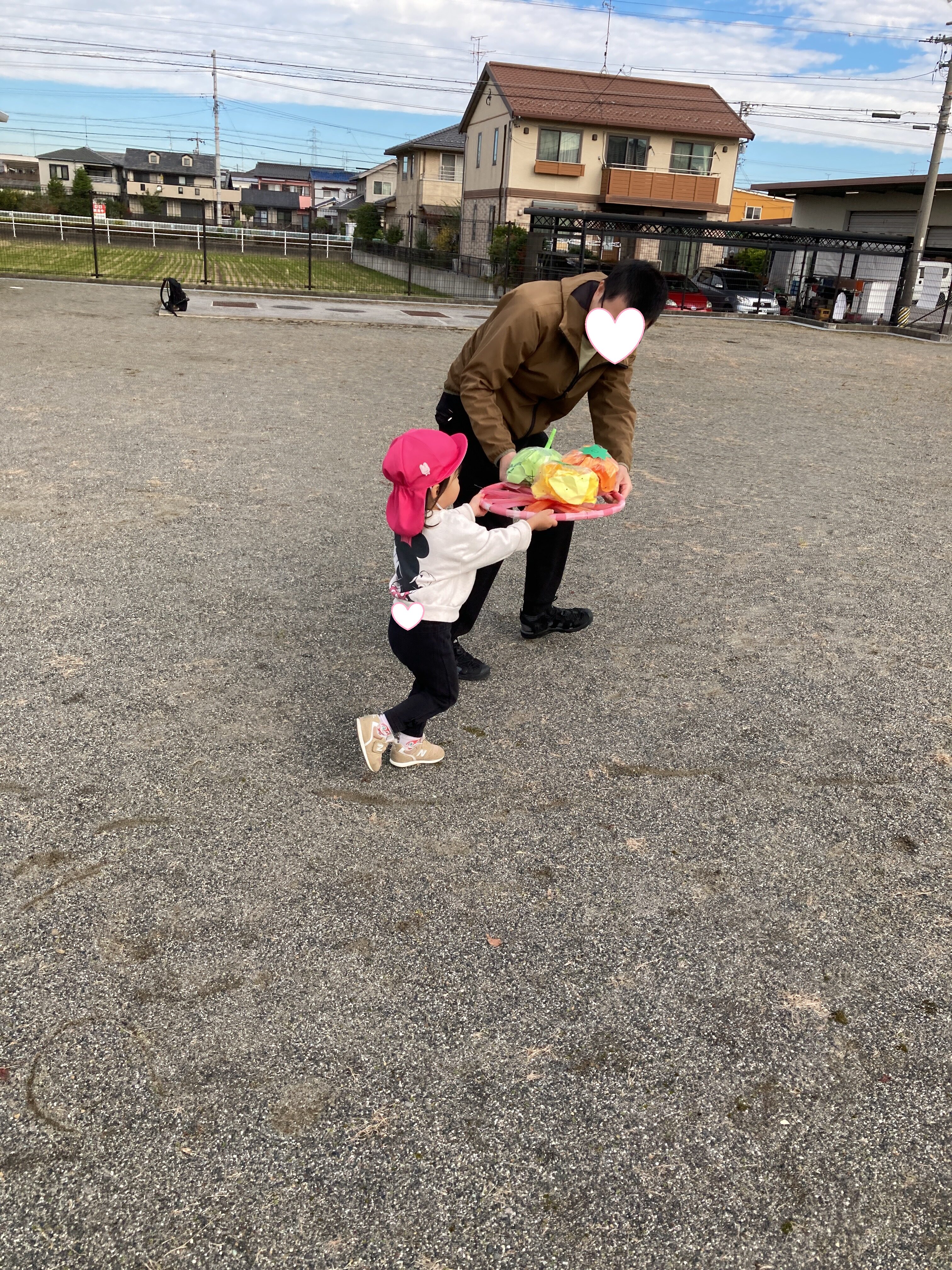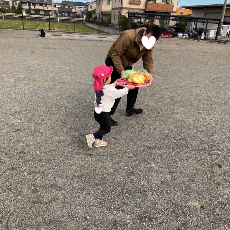 大好きな保護者の方と、フラフープのお皿を持って運びます![]()
