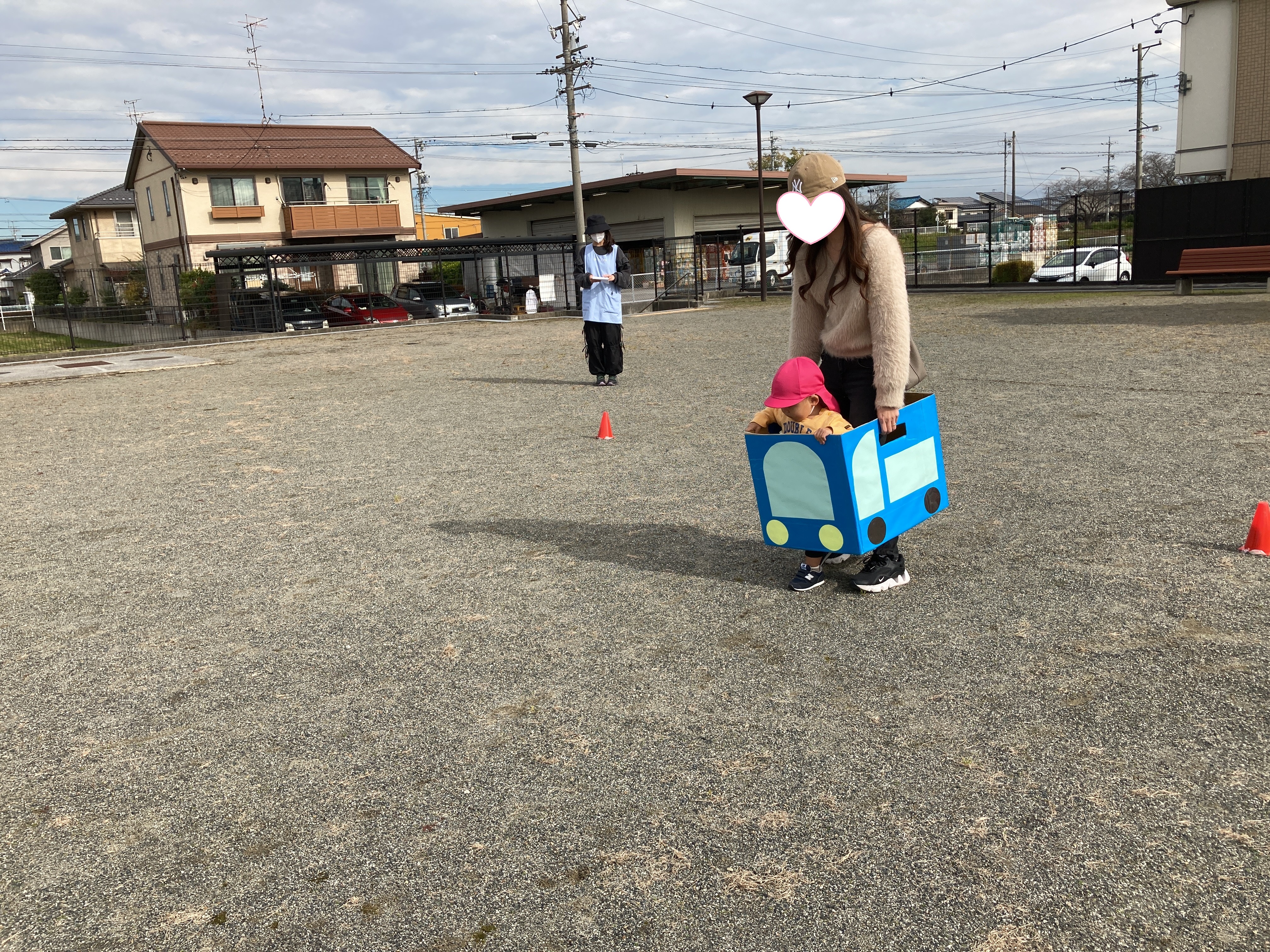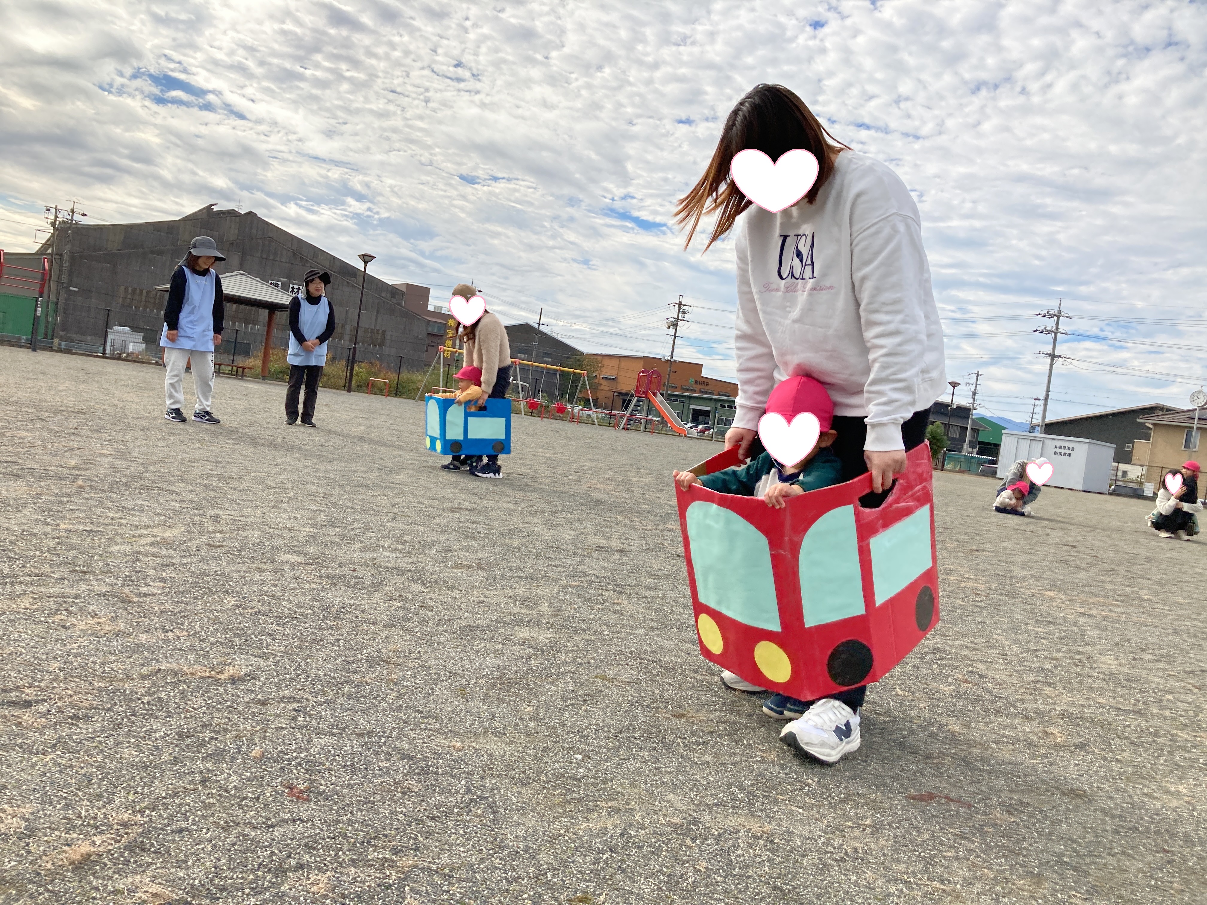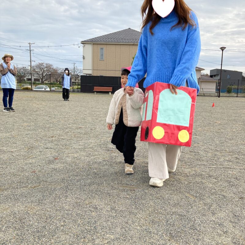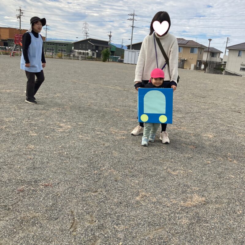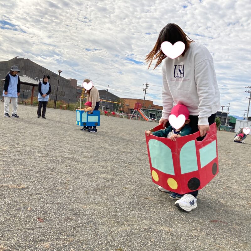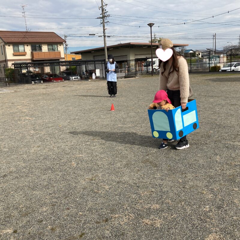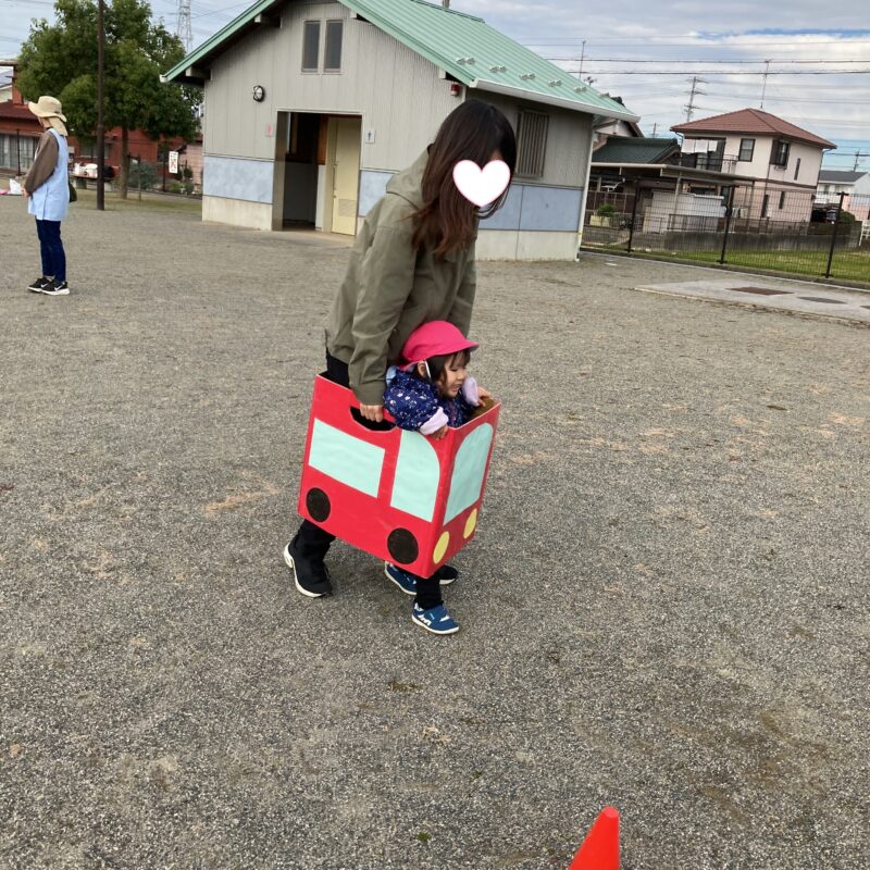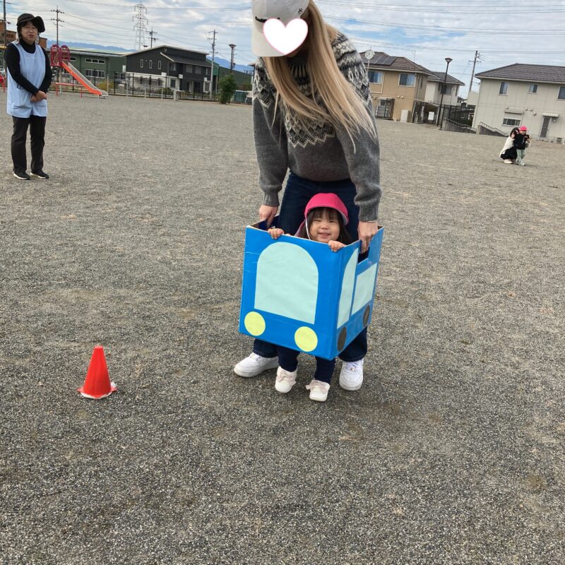 赤と青の車に乗って、保護者の方と駆け抜けました🚗
