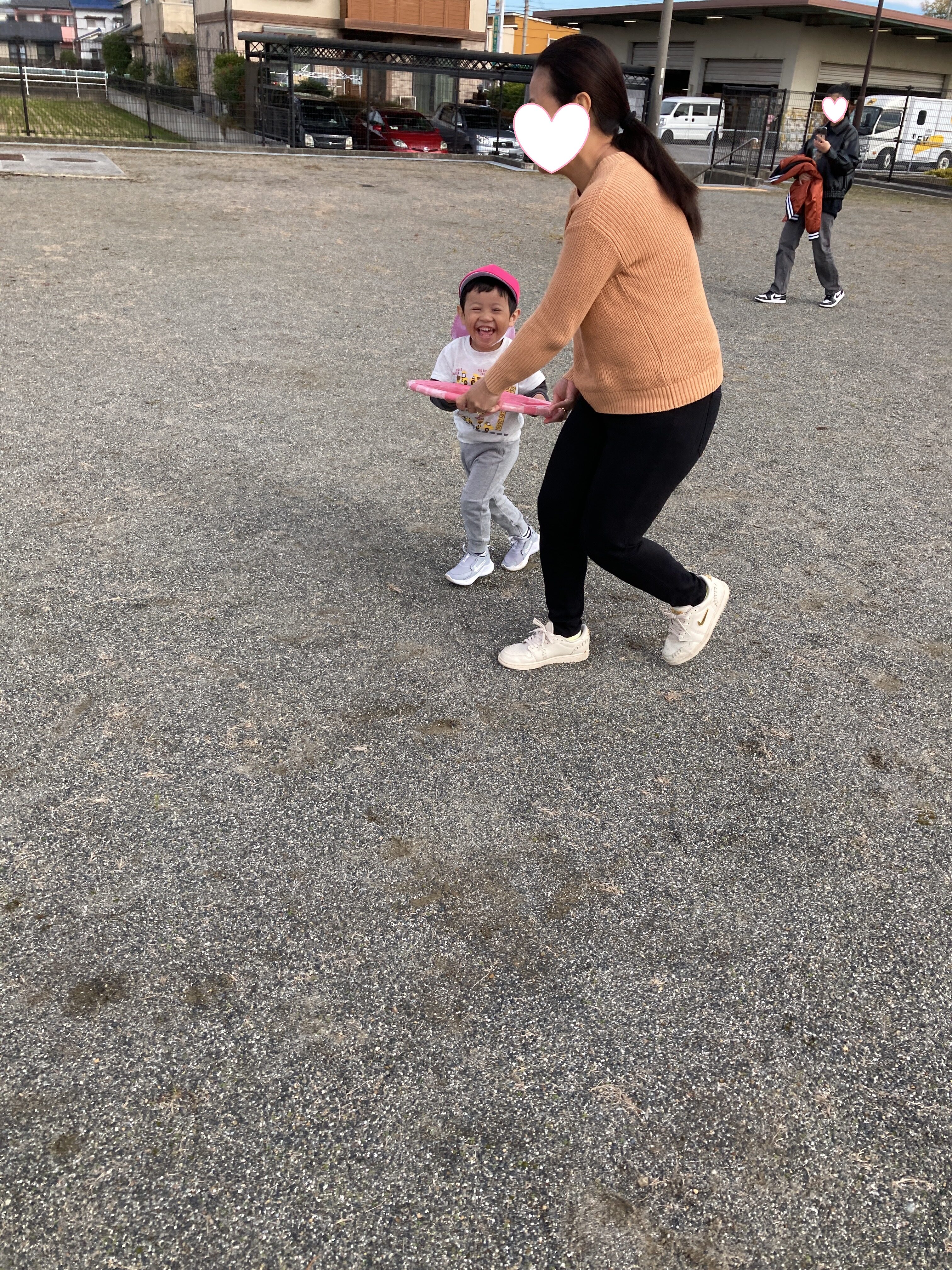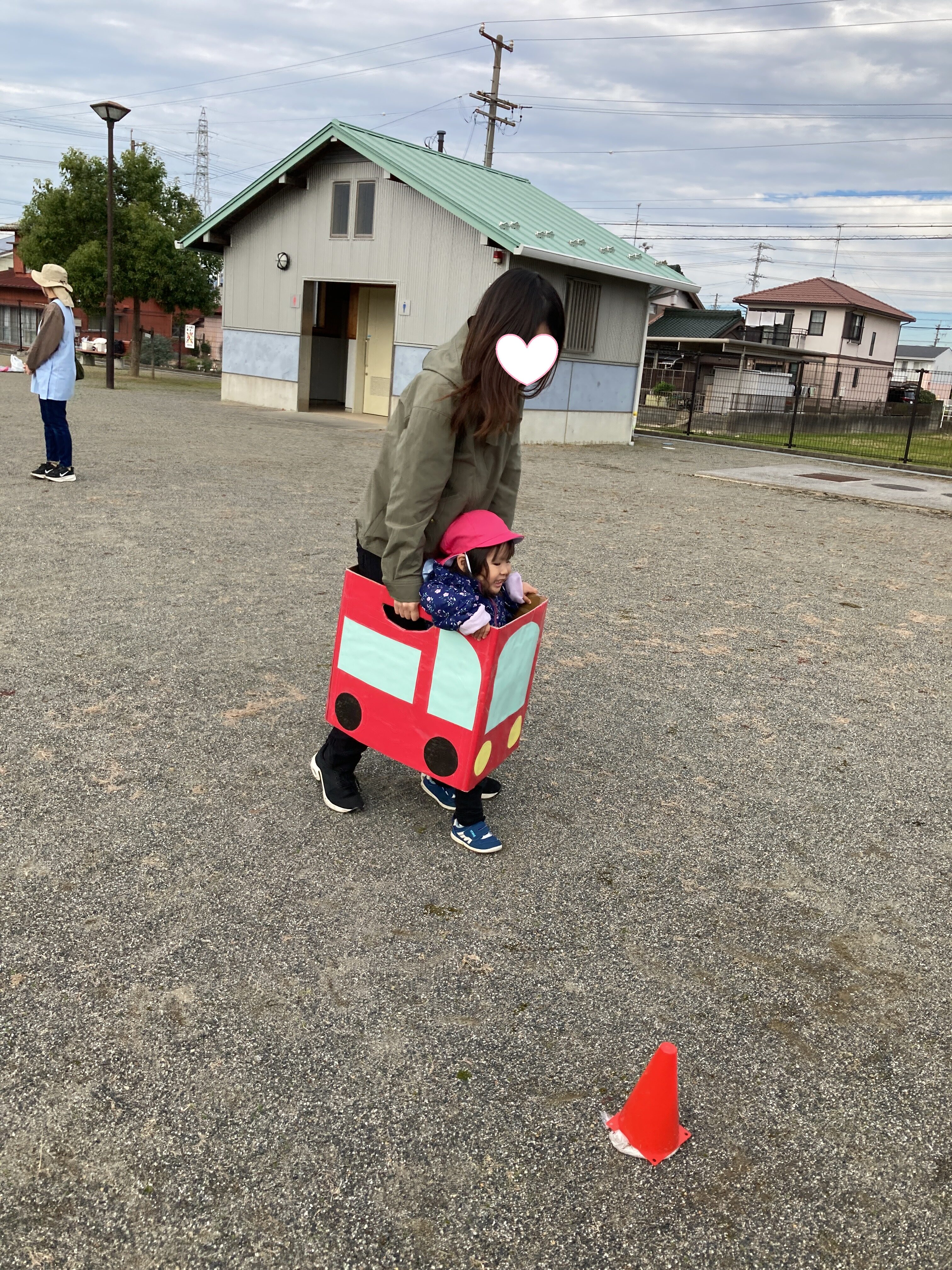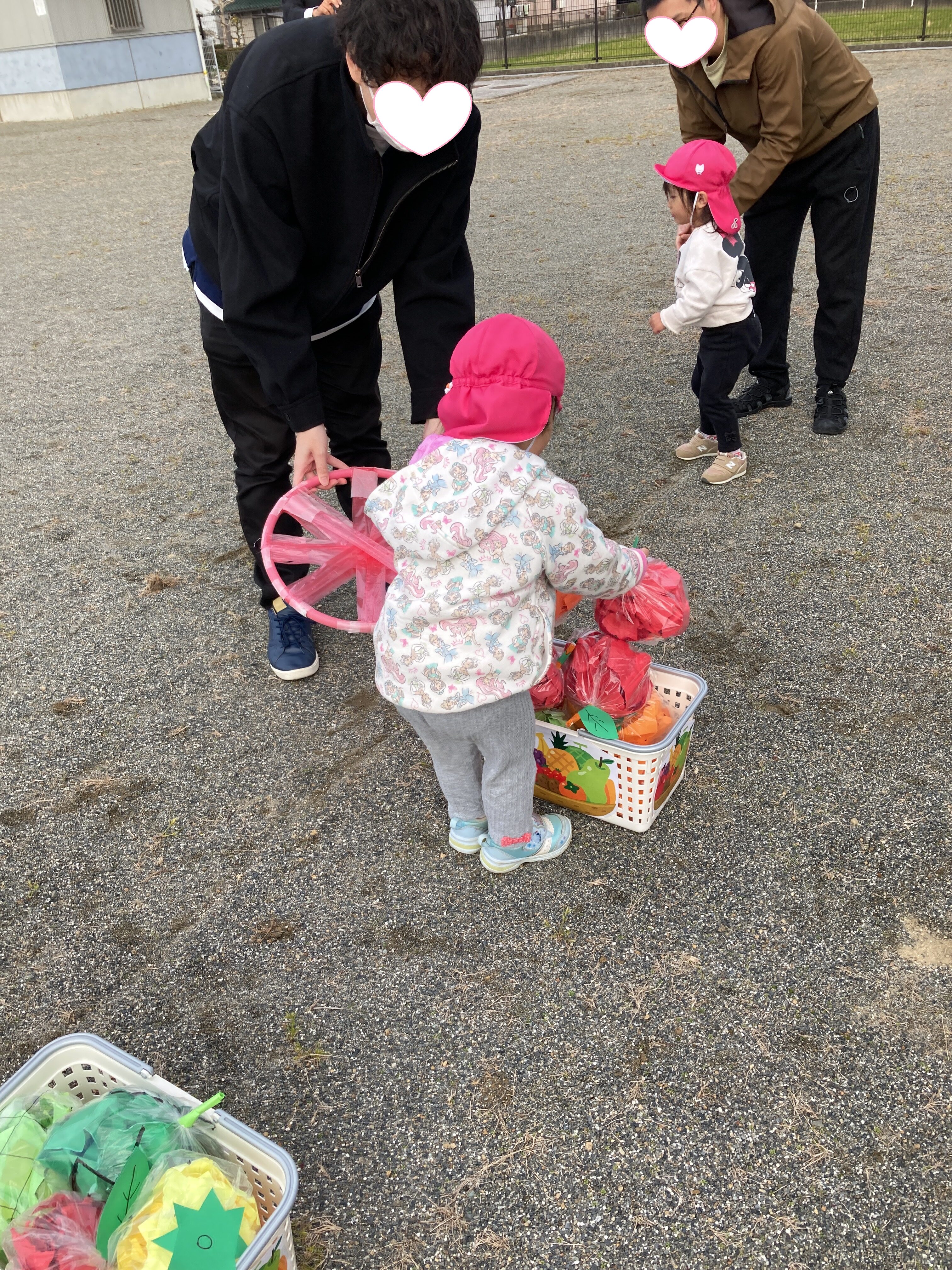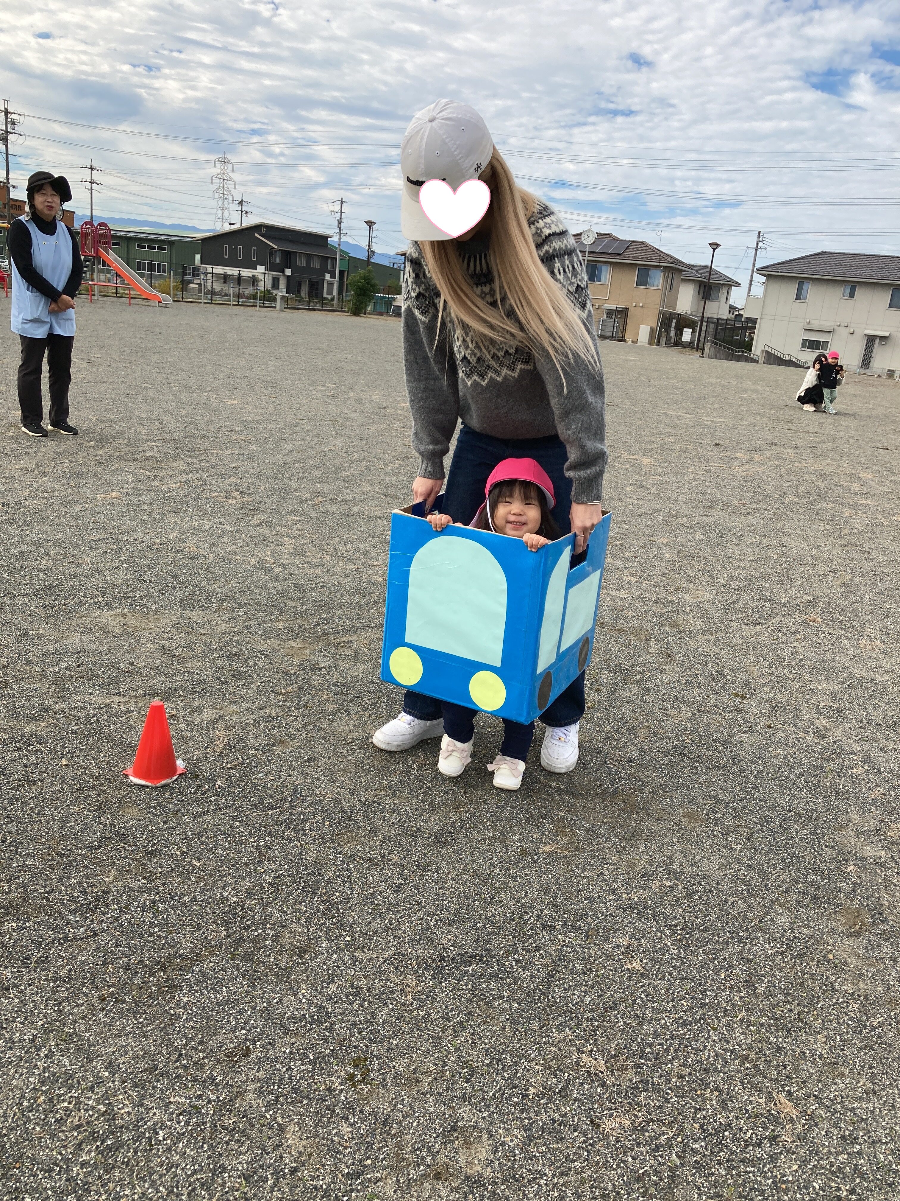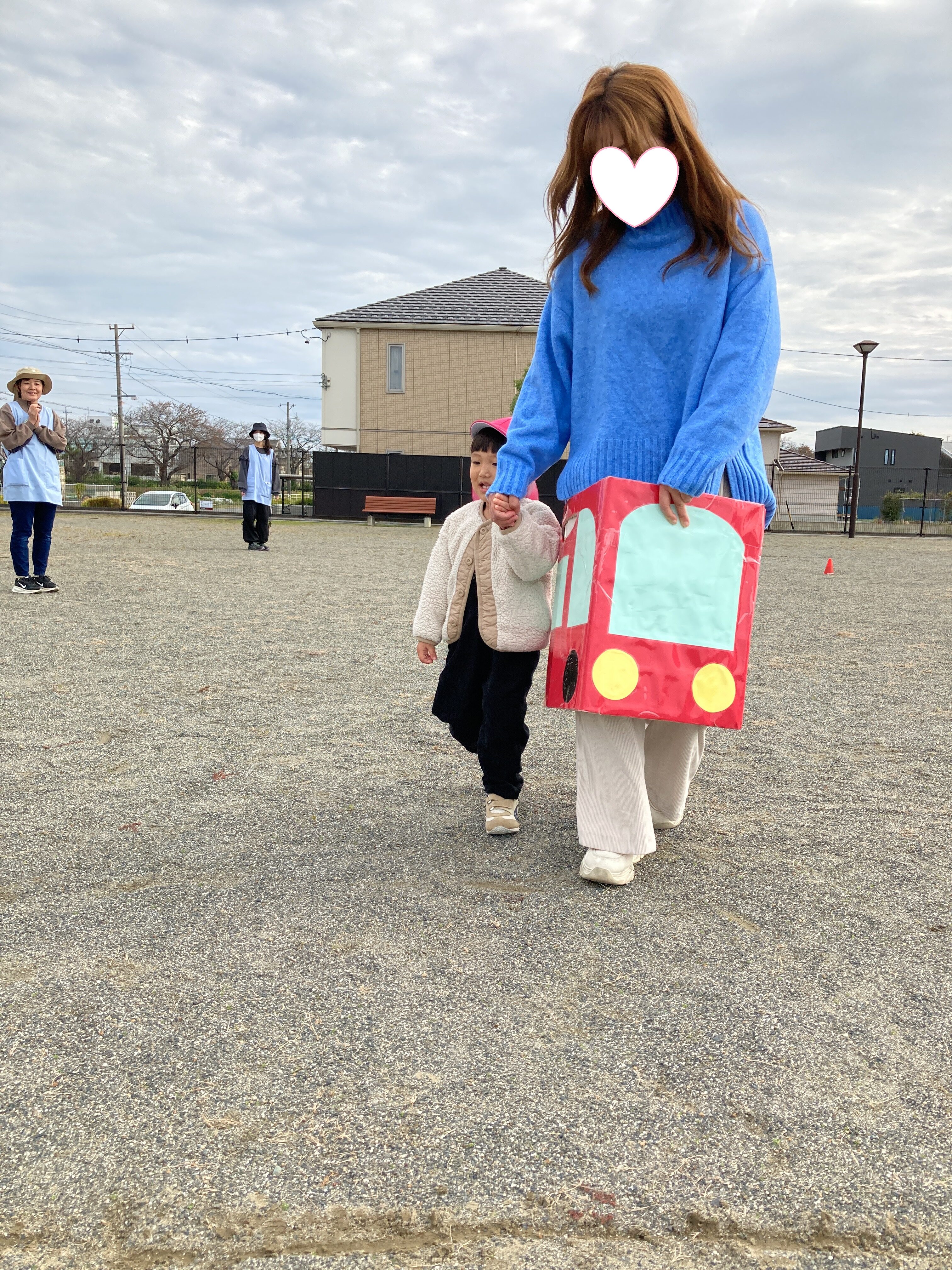 赤と青の車に乗って、保護者の方と駆け抜けました🚗