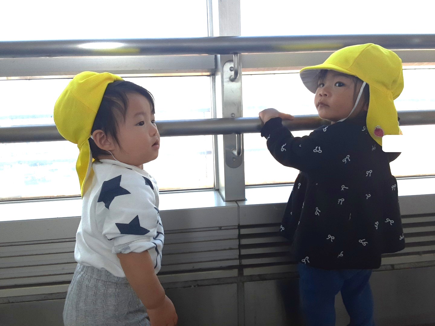 JRうぬま駅のエレーベーターで上に上がり、みんなで電車を見ましたよ🚃