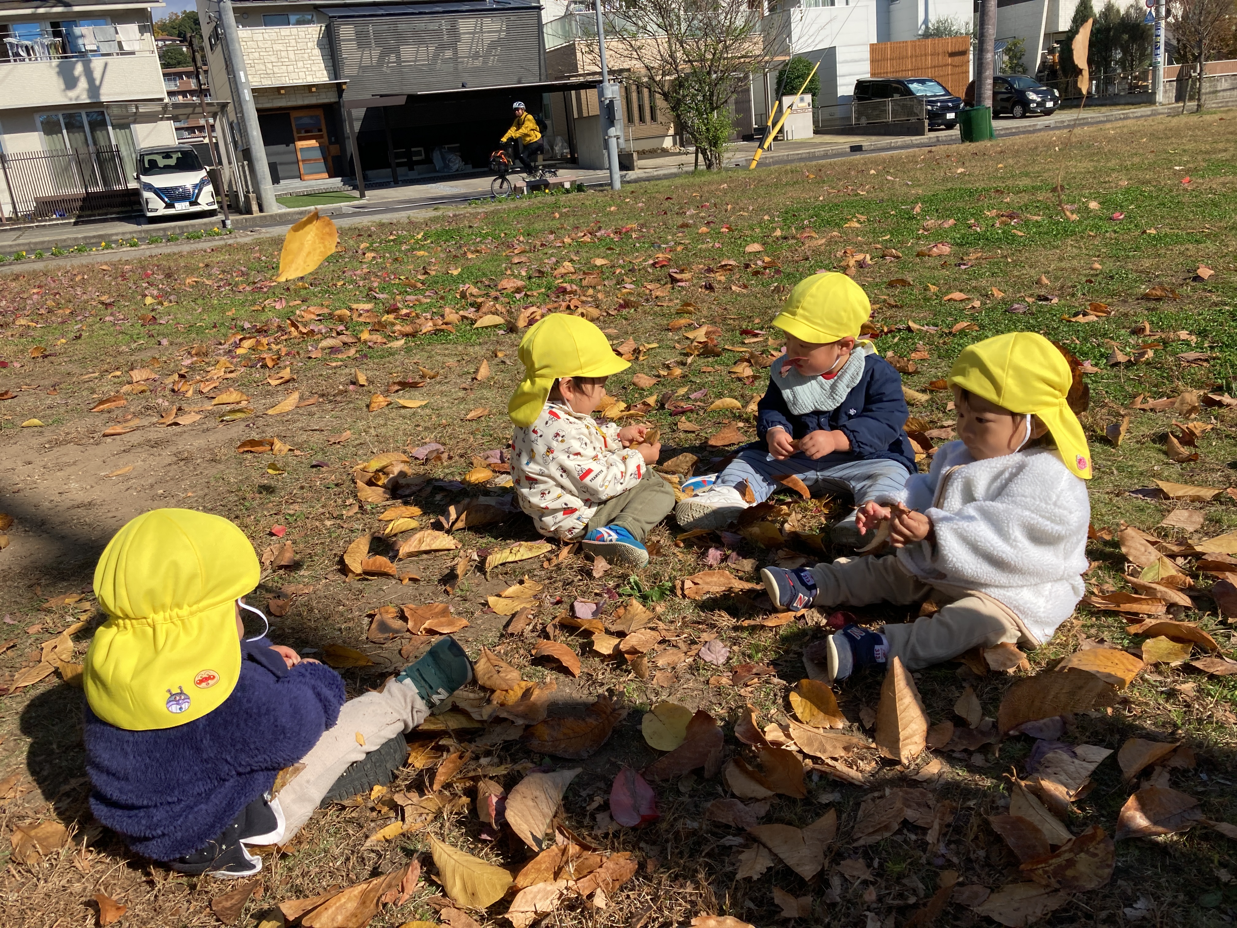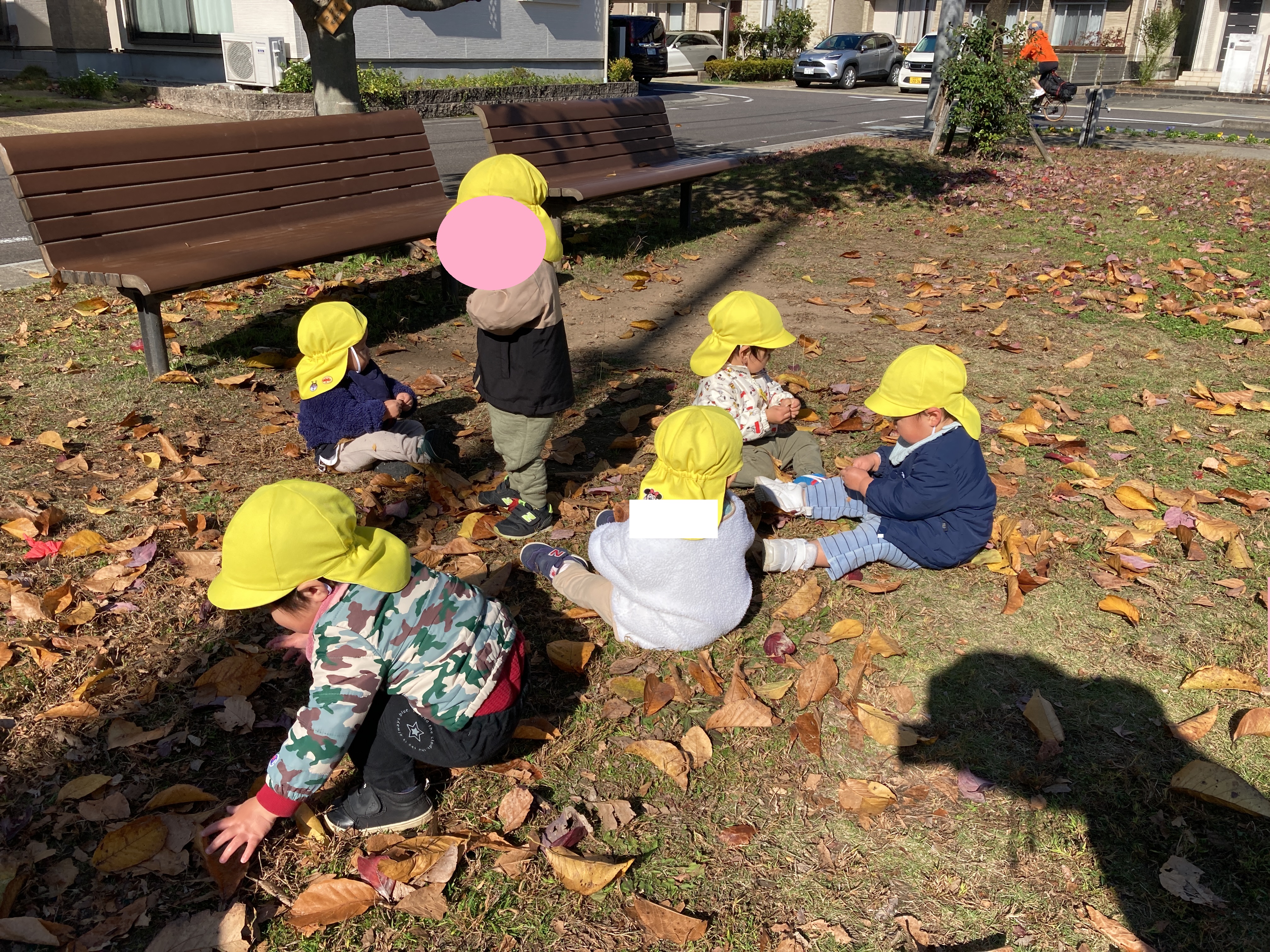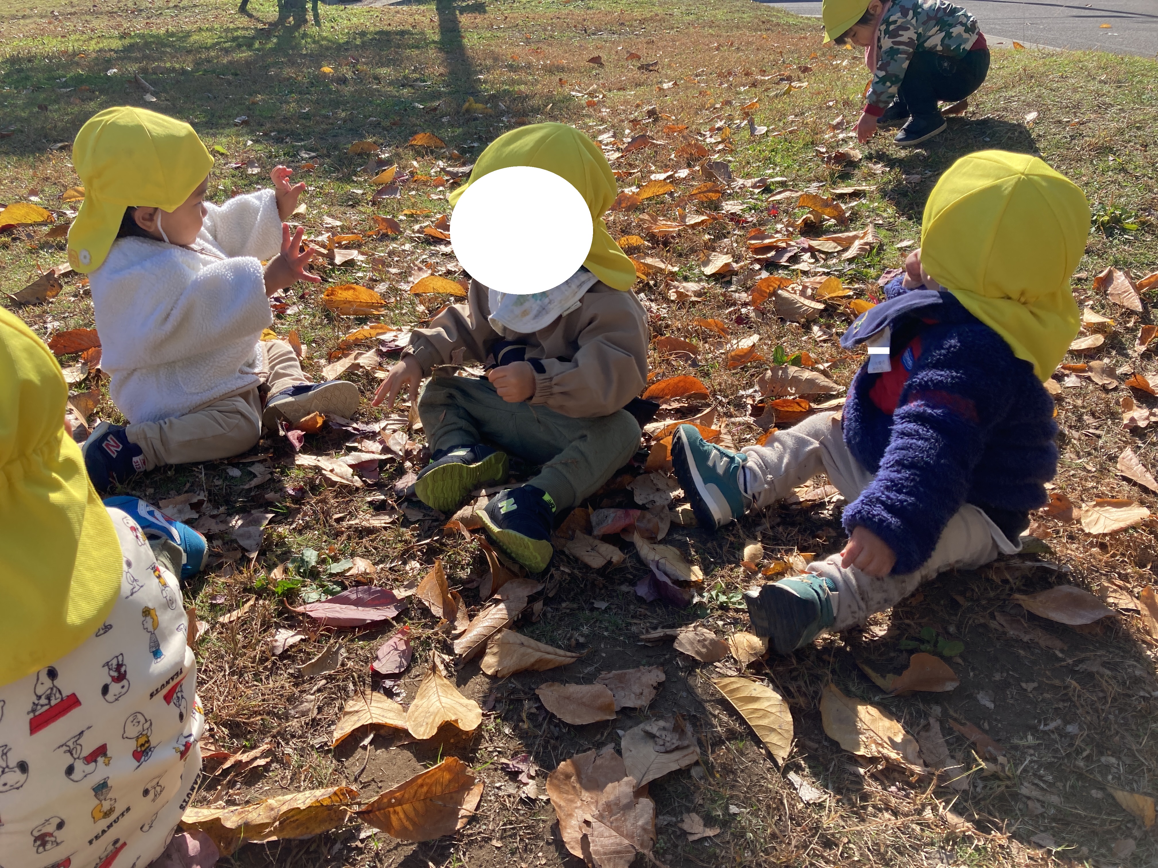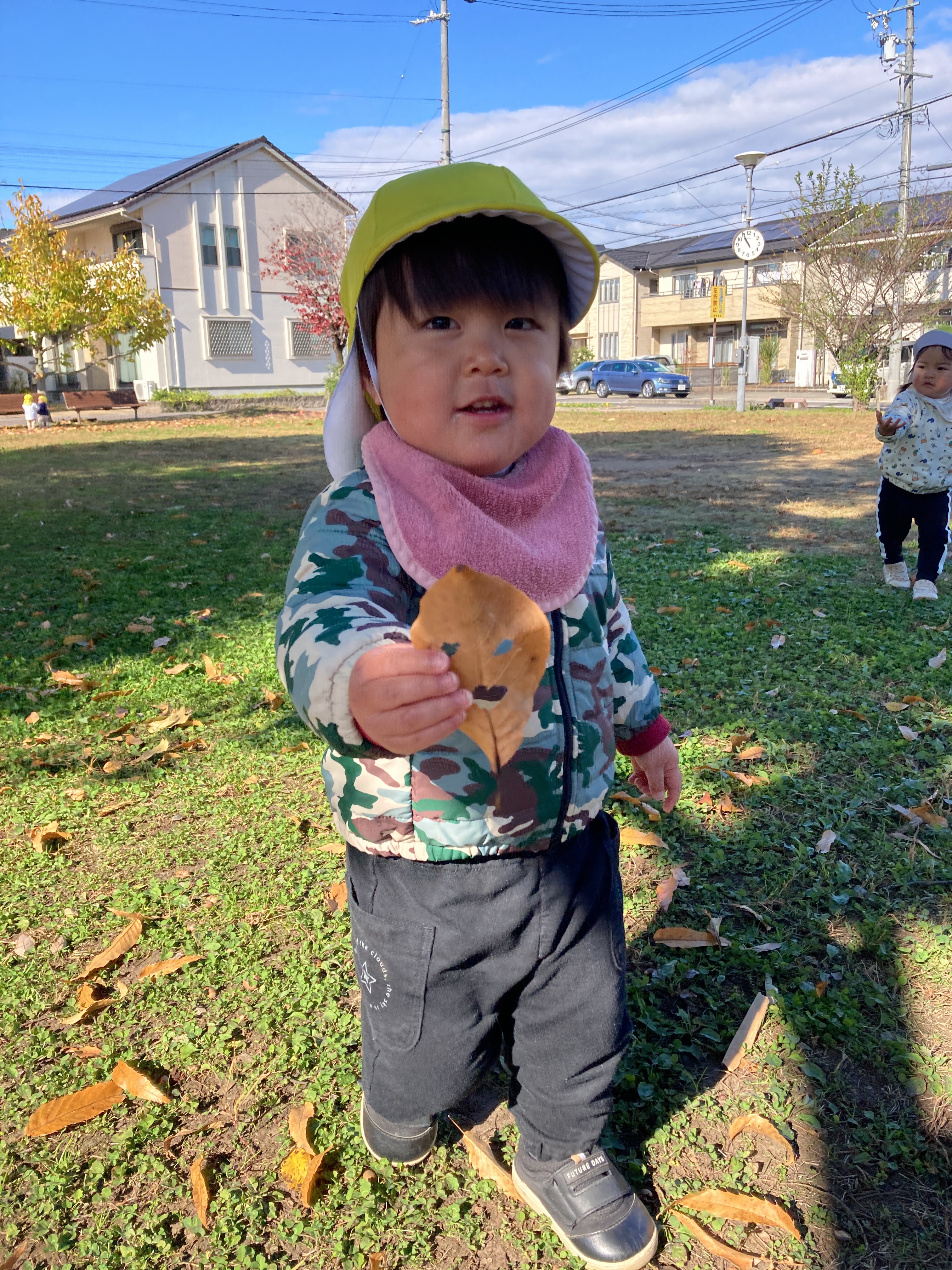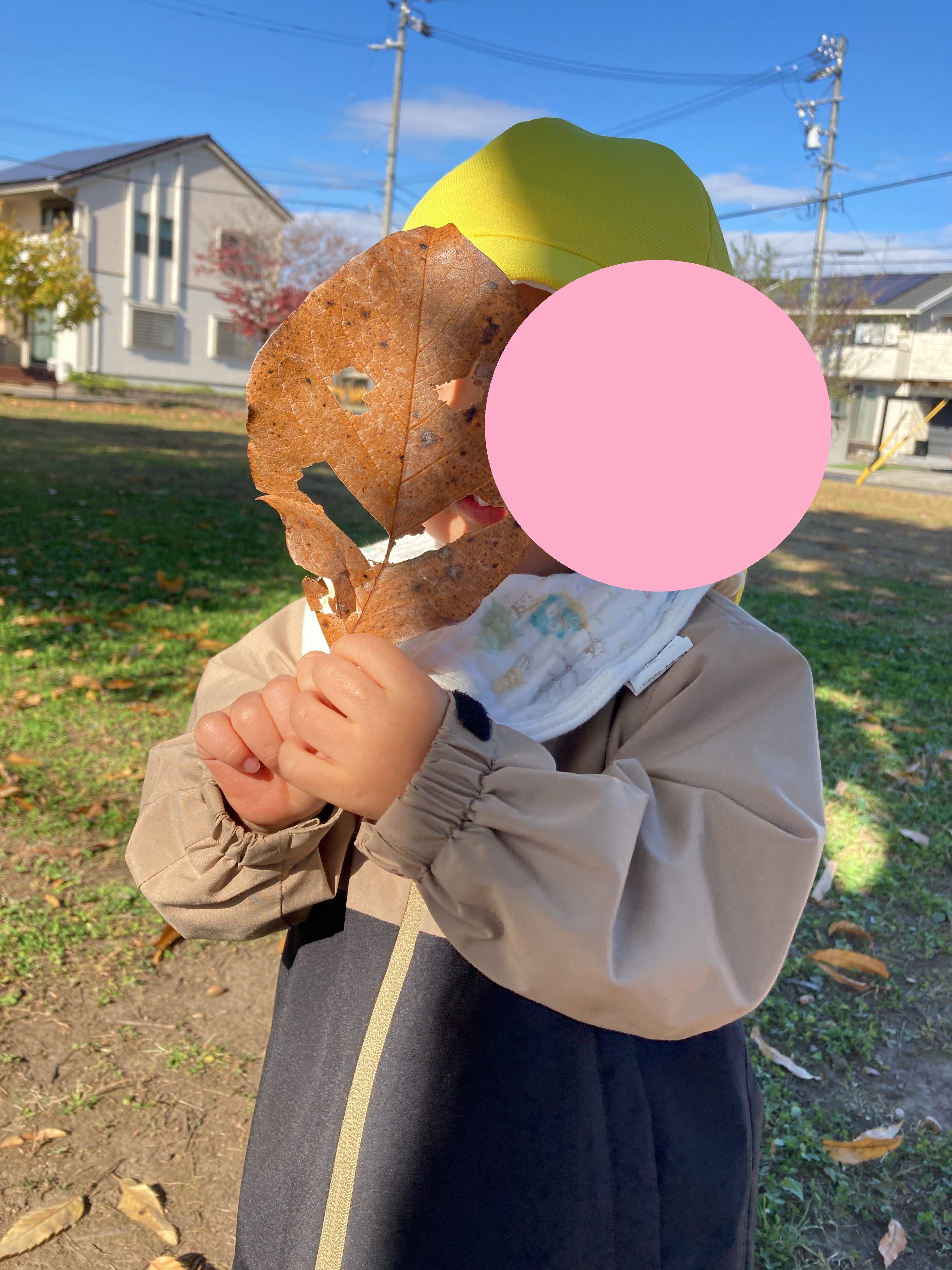 公園では、大きな葉っぱを見つけてお面を作って遊びましたよ