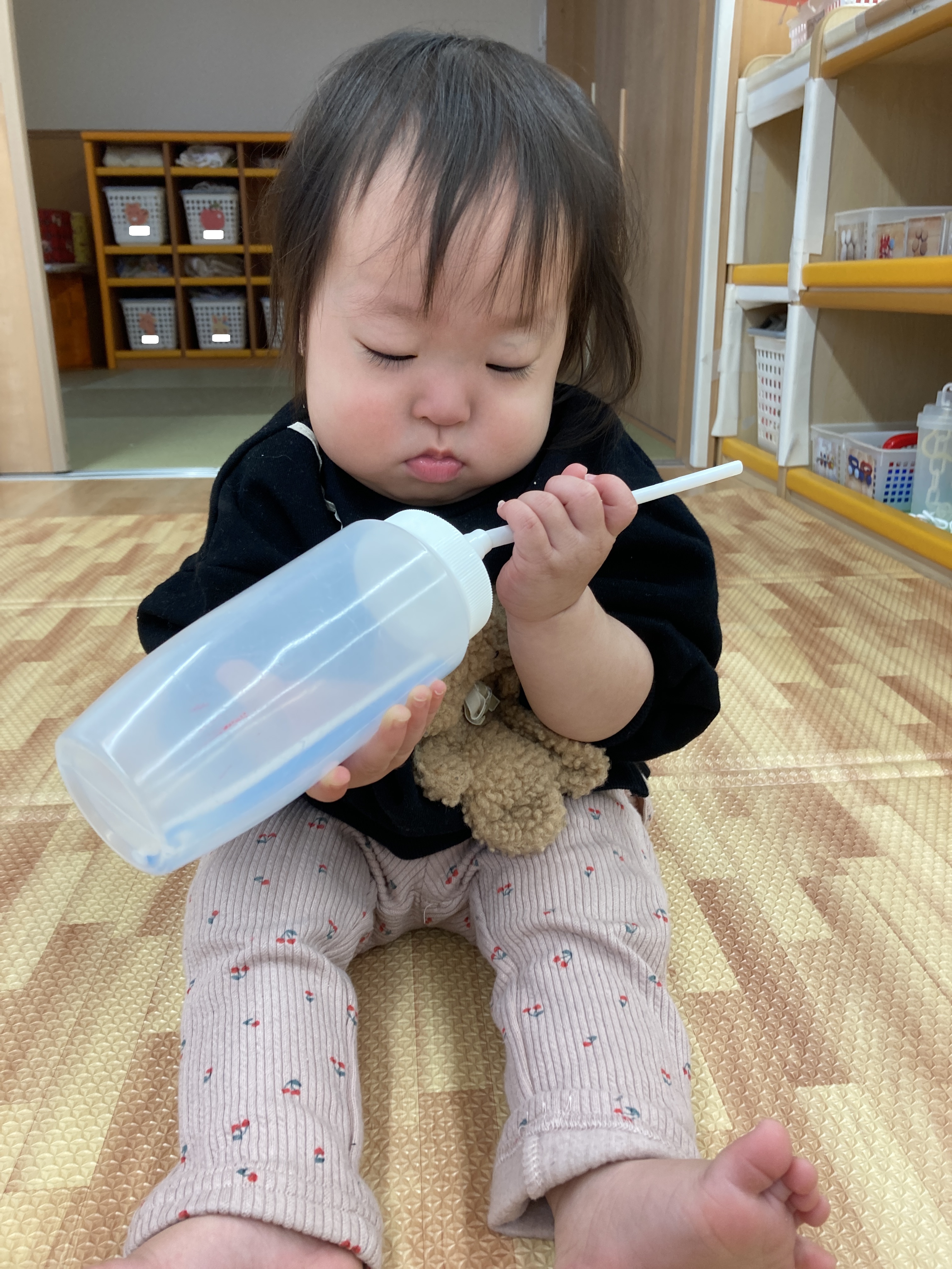 0歳児クラスのひよこ組さん🐤 ストローのポットン落としが人気です❕