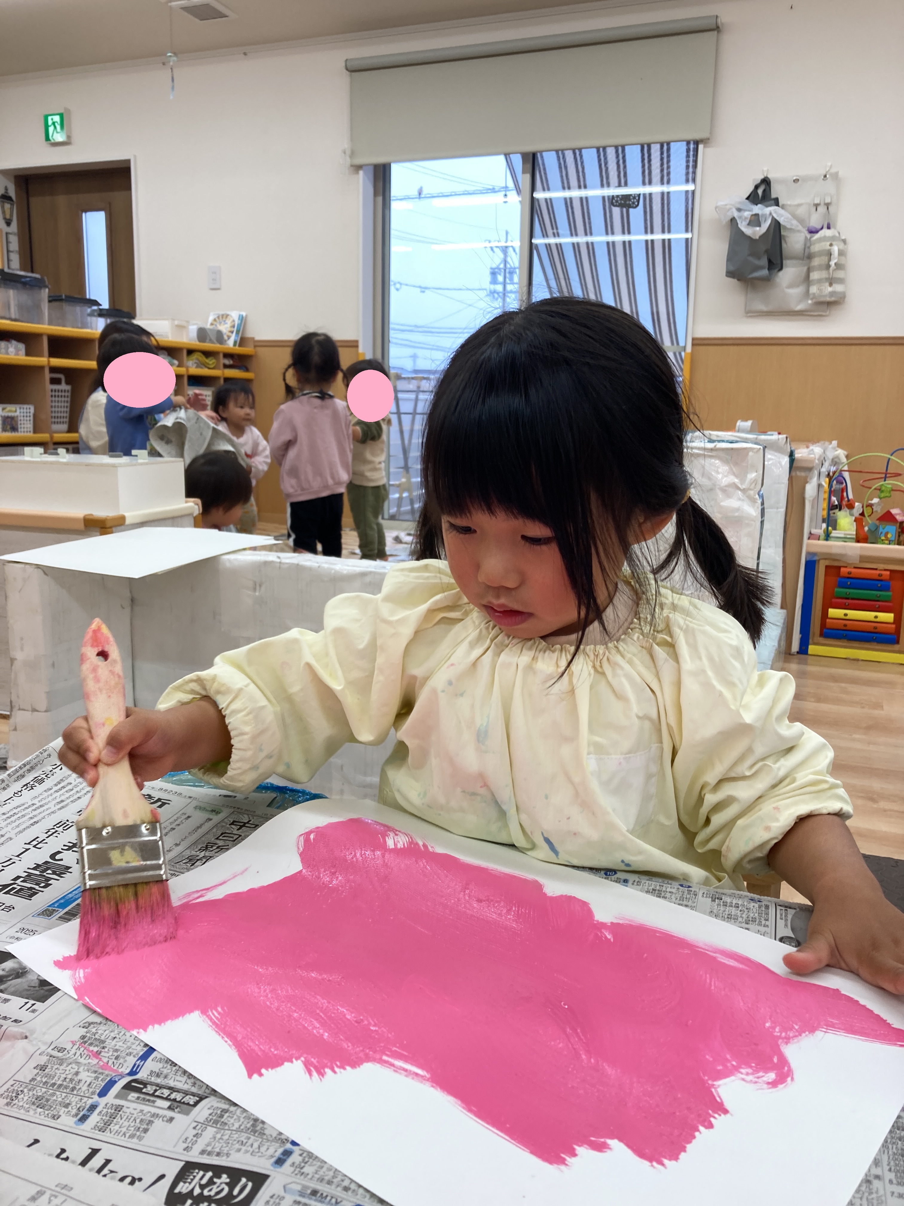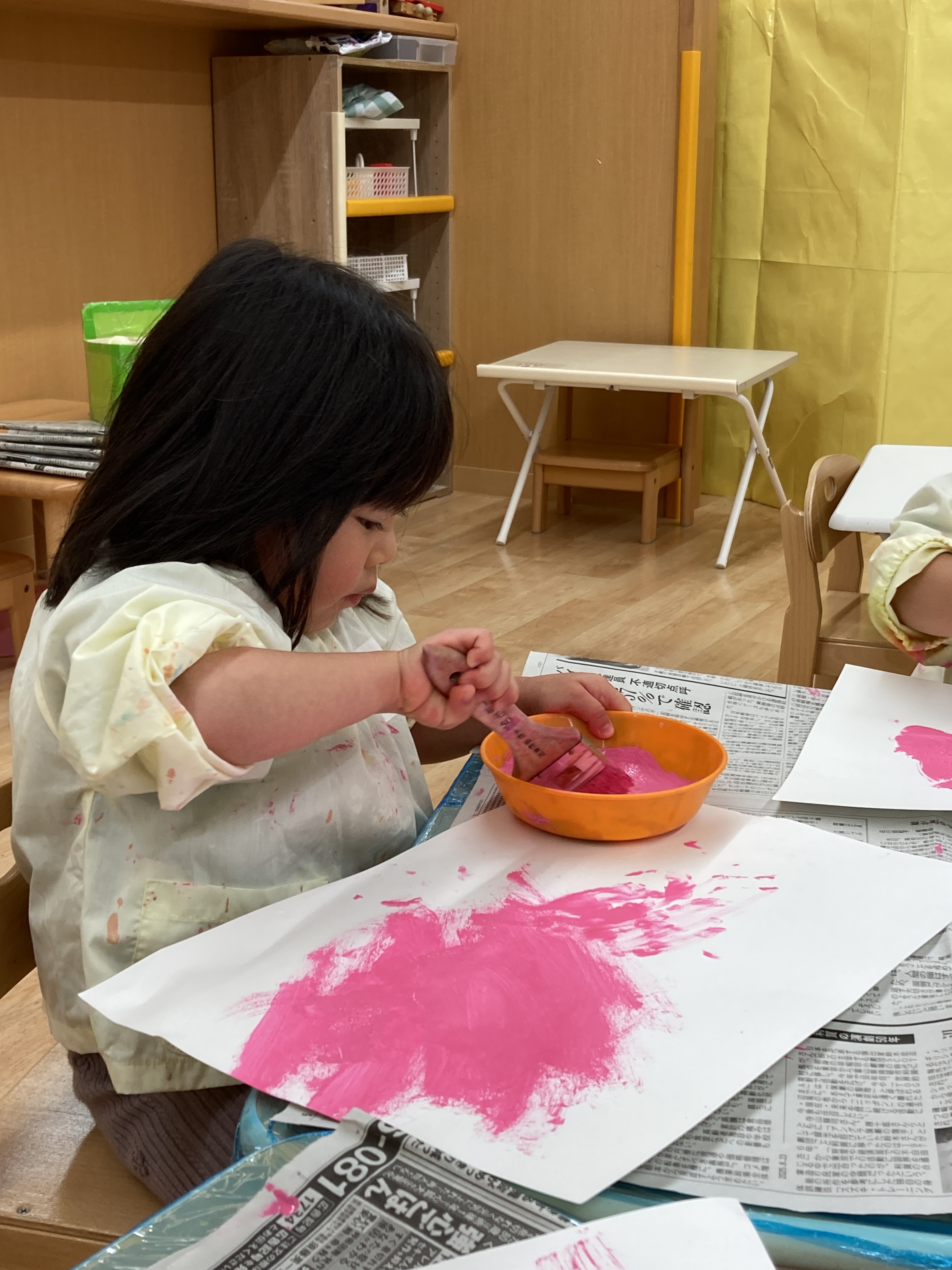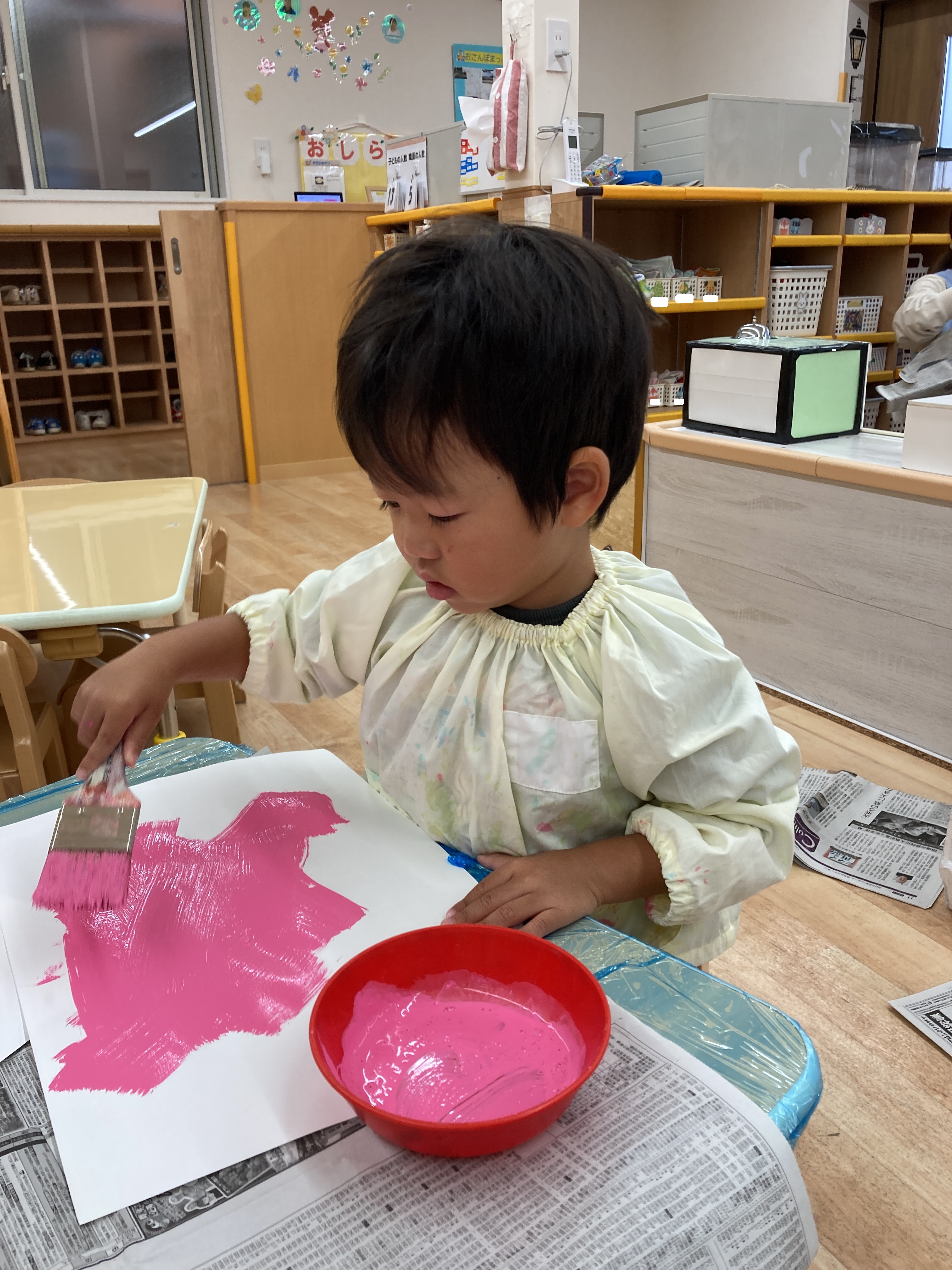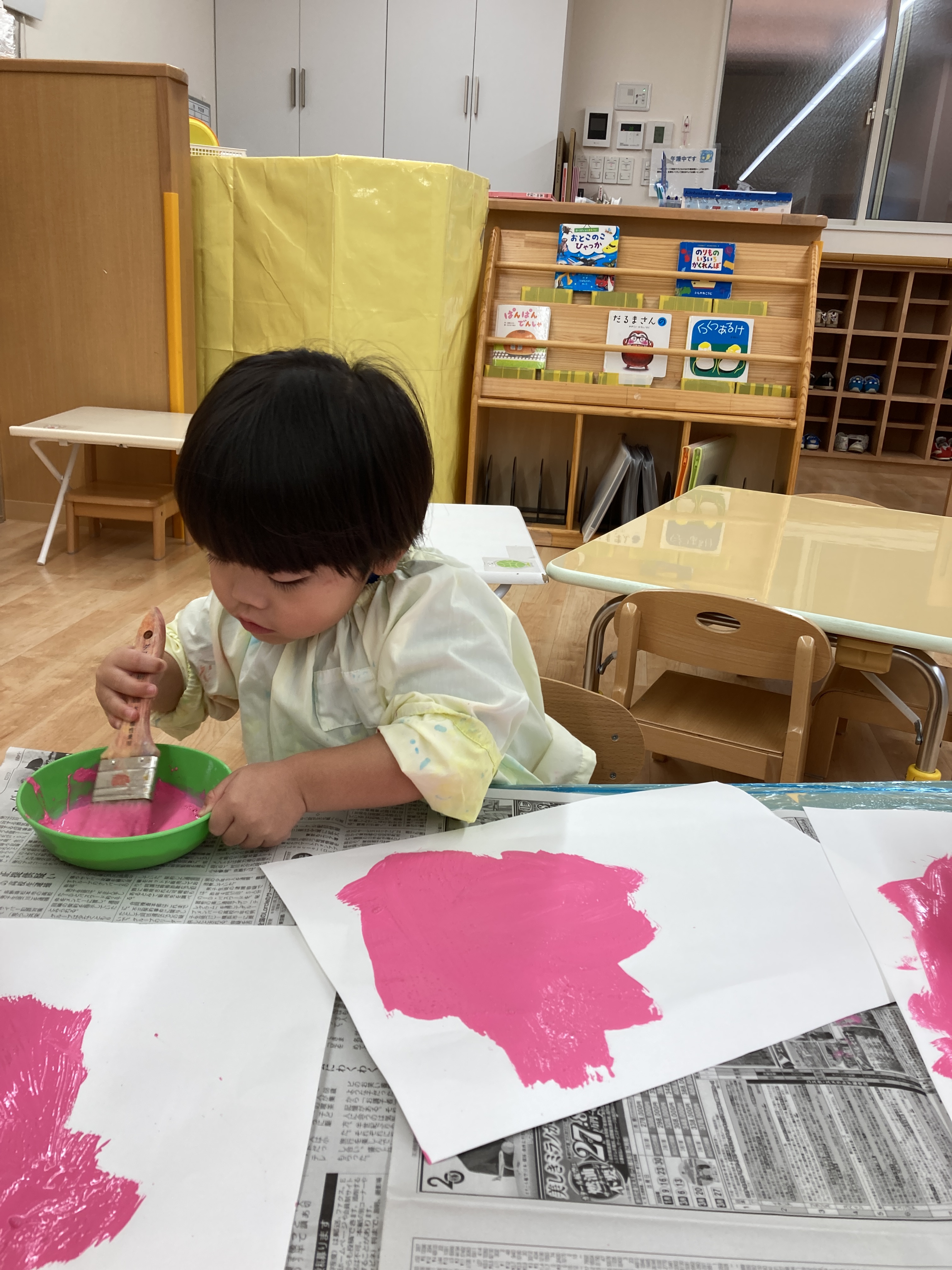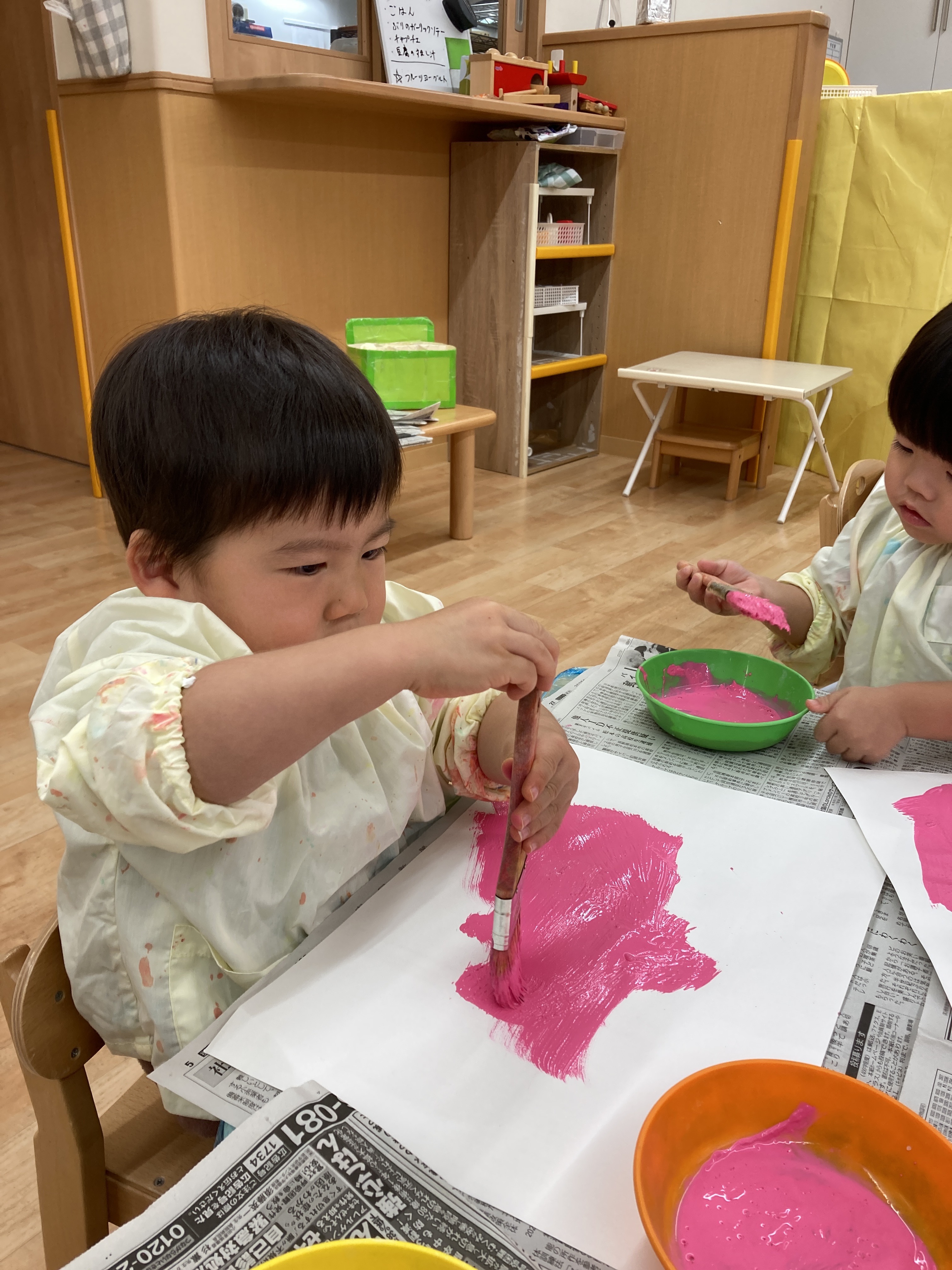 「もっとぬりたい」「もういっかいやるの」と、長い時間夢中になって楽しむ姿が見られました