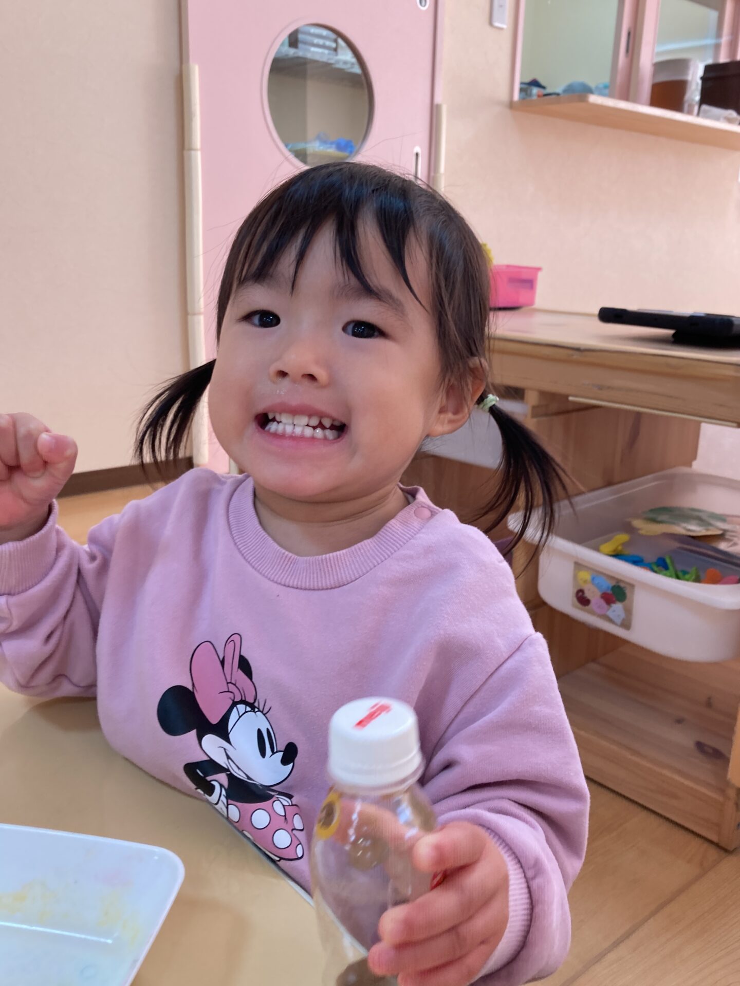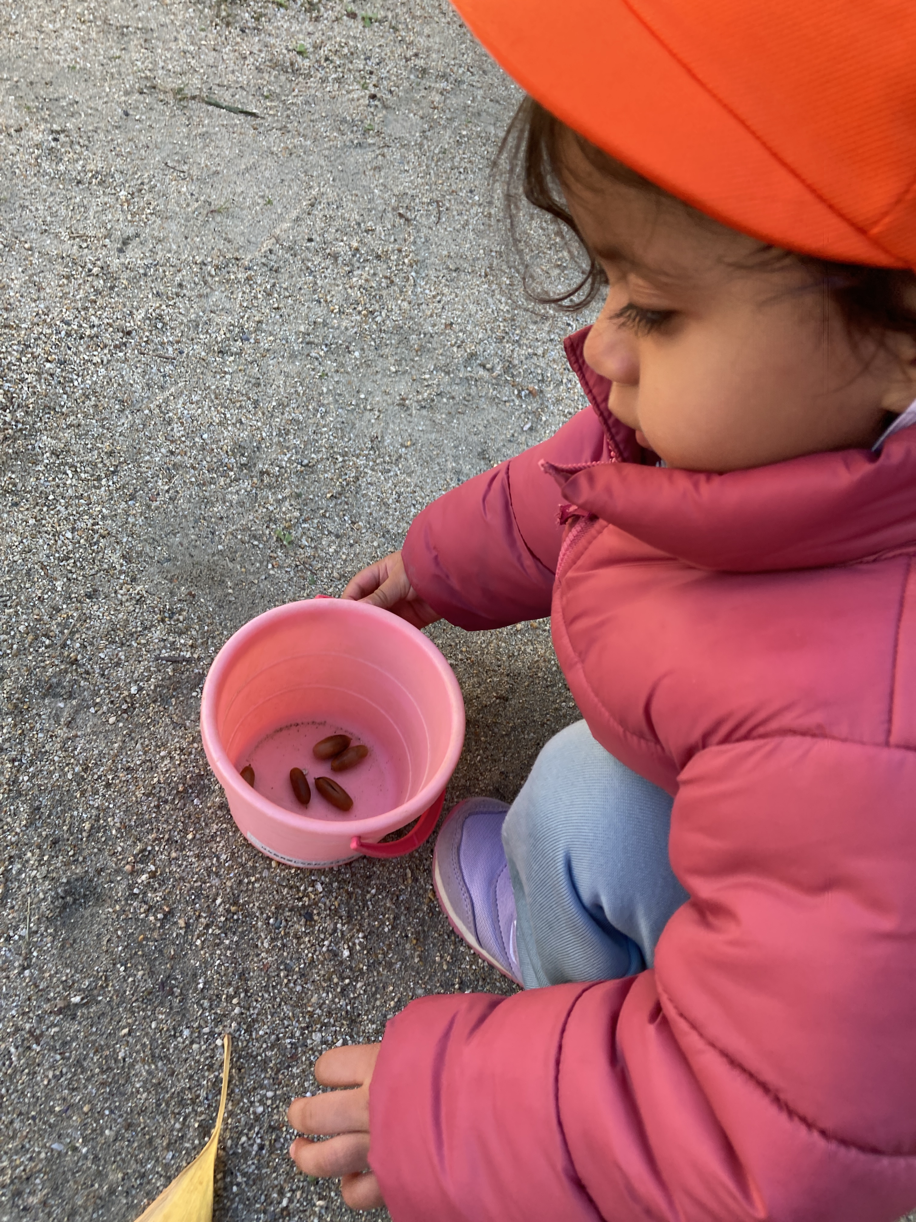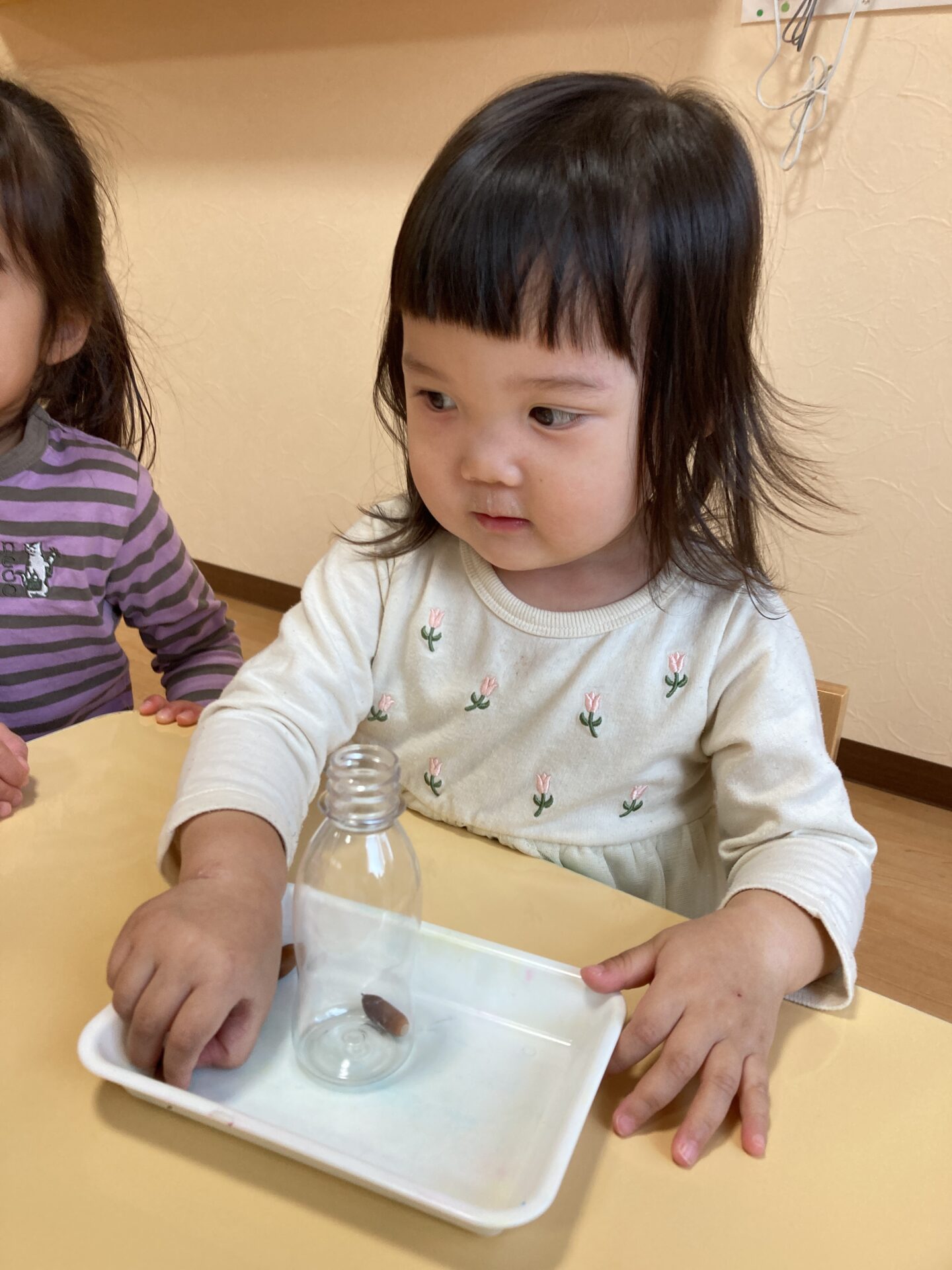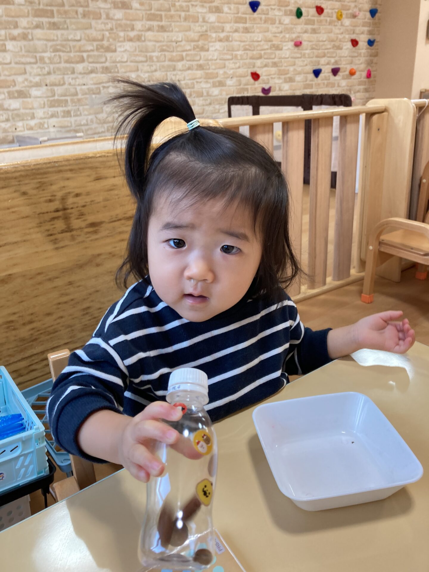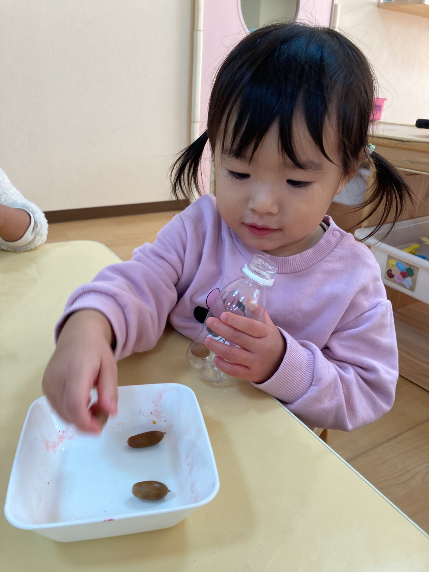 指先を器用に使って、上手にどんぐりを容器に入れることができました!