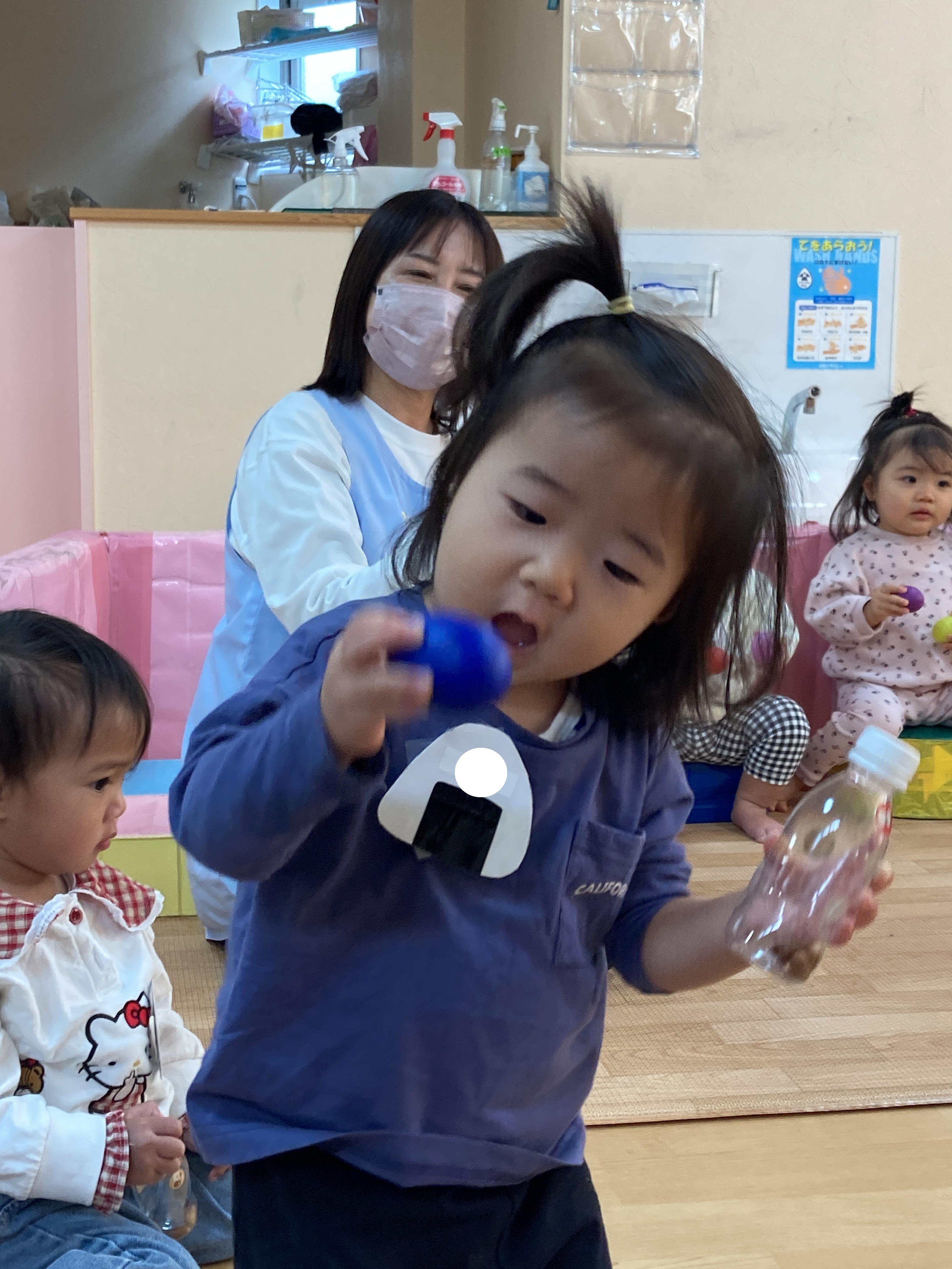 11月のリトミックでも、お歌に合わせてどんぐりマラカスを振って遊びましたよ![]()