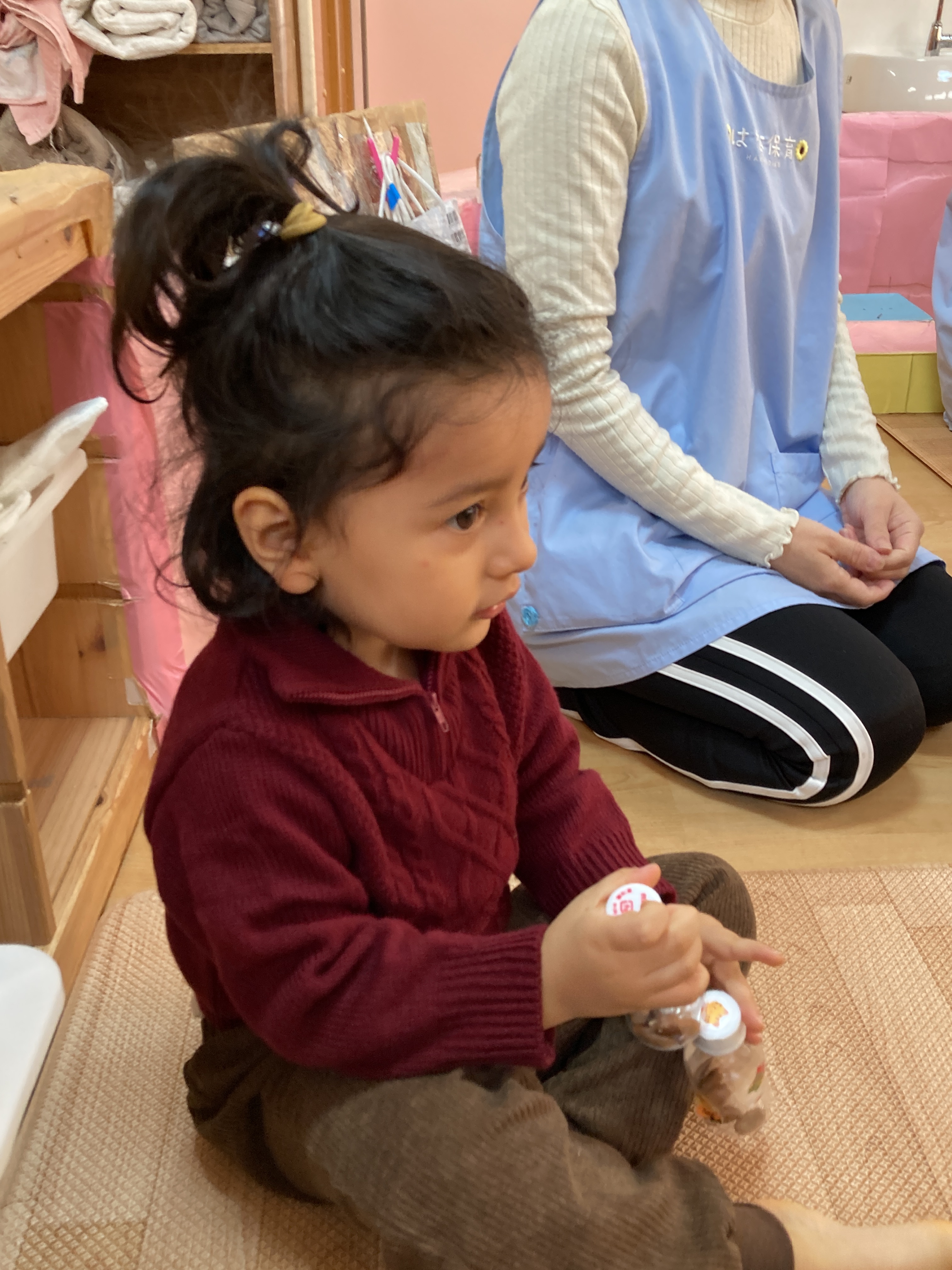 シャカシャカ振ってみたり、転がしてみたりして音を楽しんでいました🎶