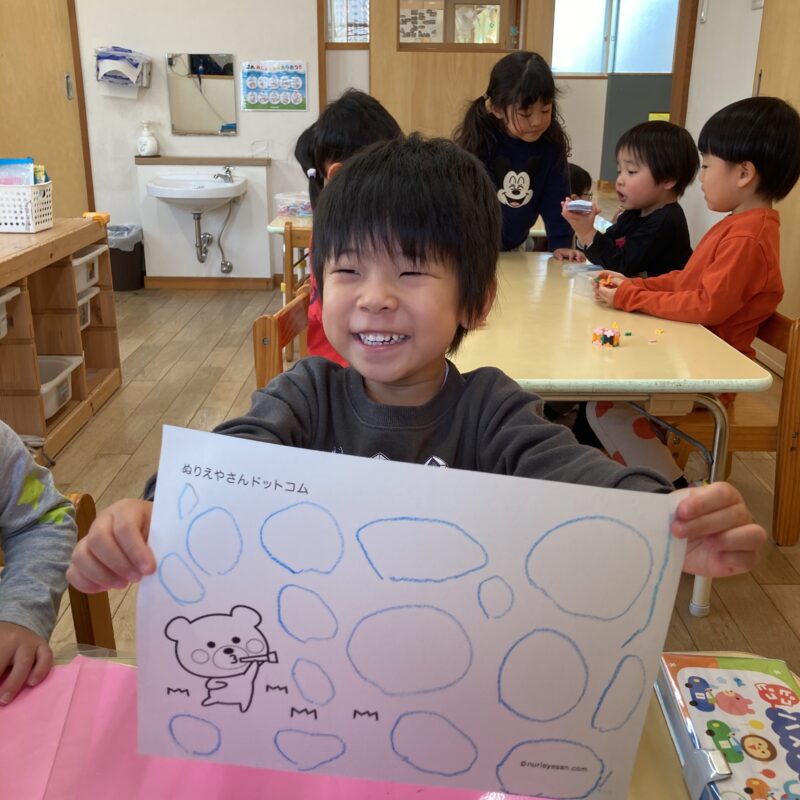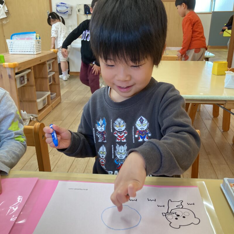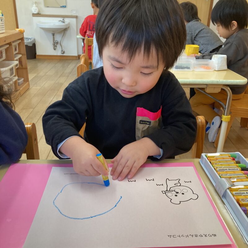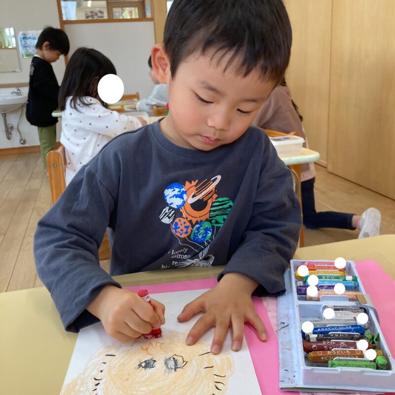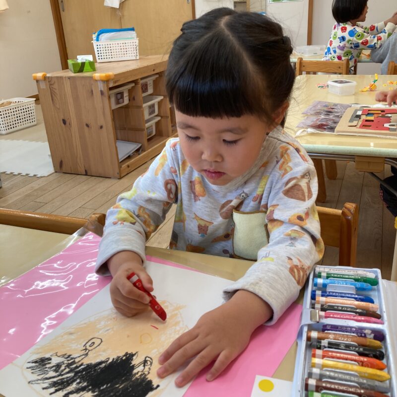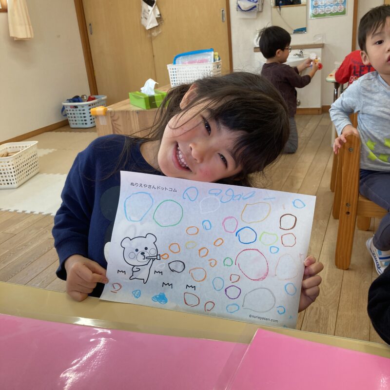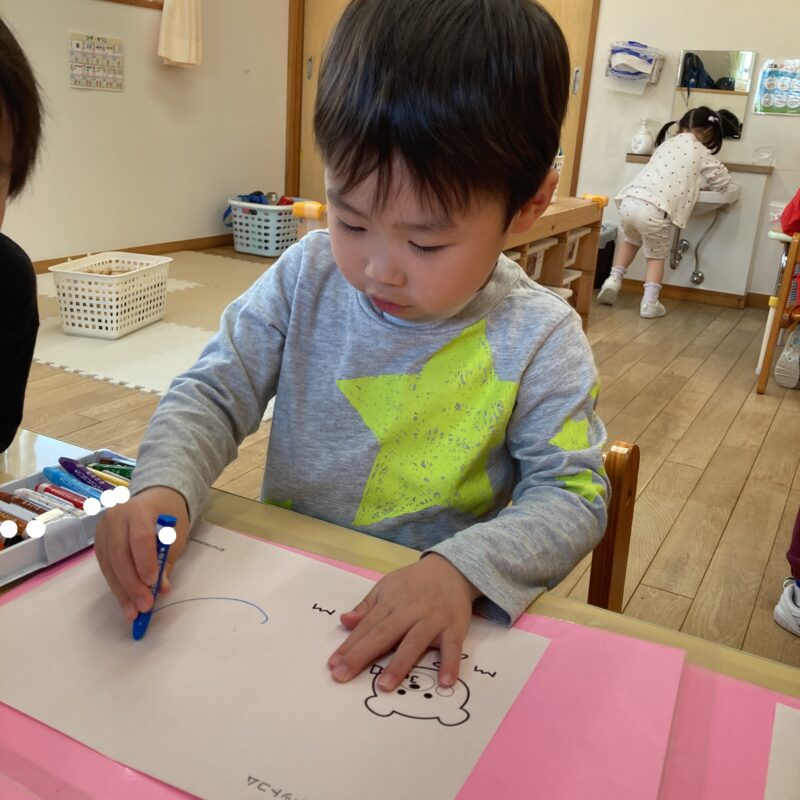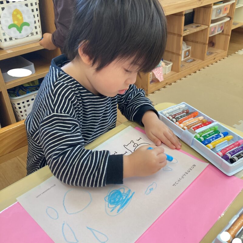 つき組では、クレパスでぬりえをすることが好きな子が多く、少しずつ塗り方にも成長を感じることが増えてきました![]()