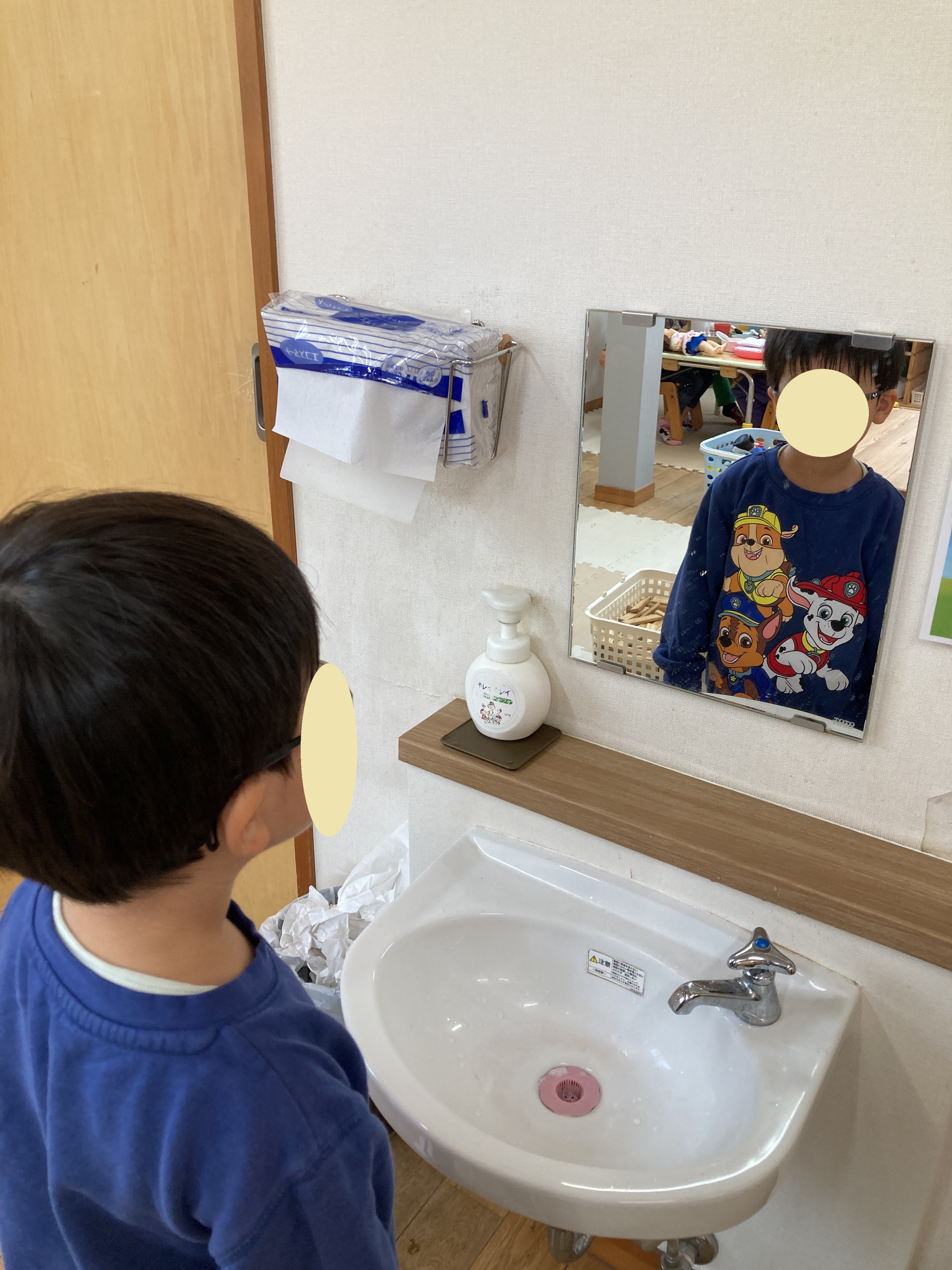 眼鏡をかけている子は鏡を見に行き「何色かな~?」と確認していました![]()