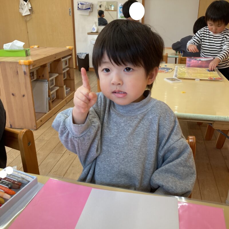 「何色だった~?」と保育士が聞くと「これ!」とグレーを手に取り眼鏡を描いていました!