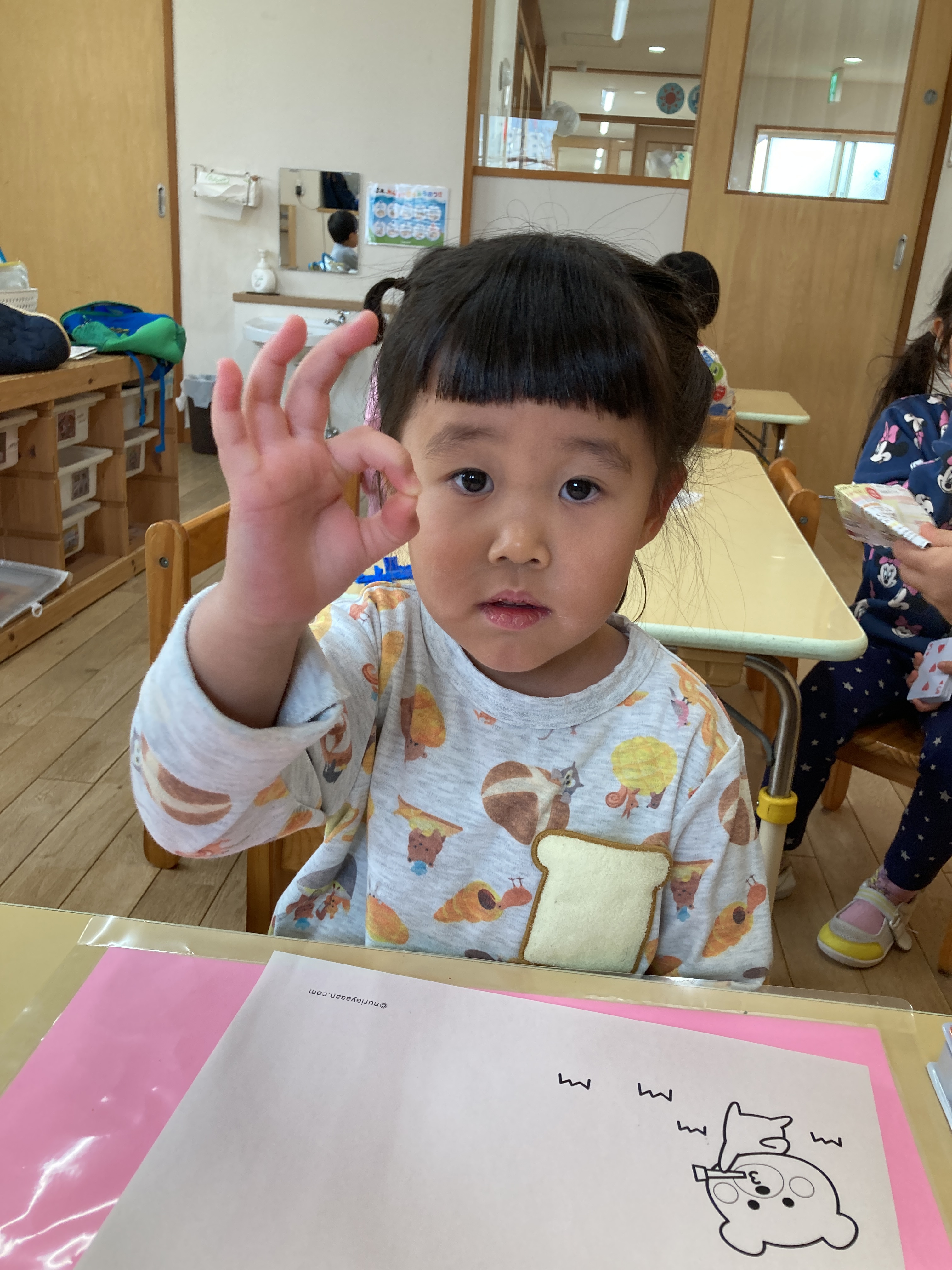 描き終えると「これ楽しいね~!」「保育園で描いたから家でも描いてみる!」ととても嬉しい声がたくさん聞こえてきました![]()
