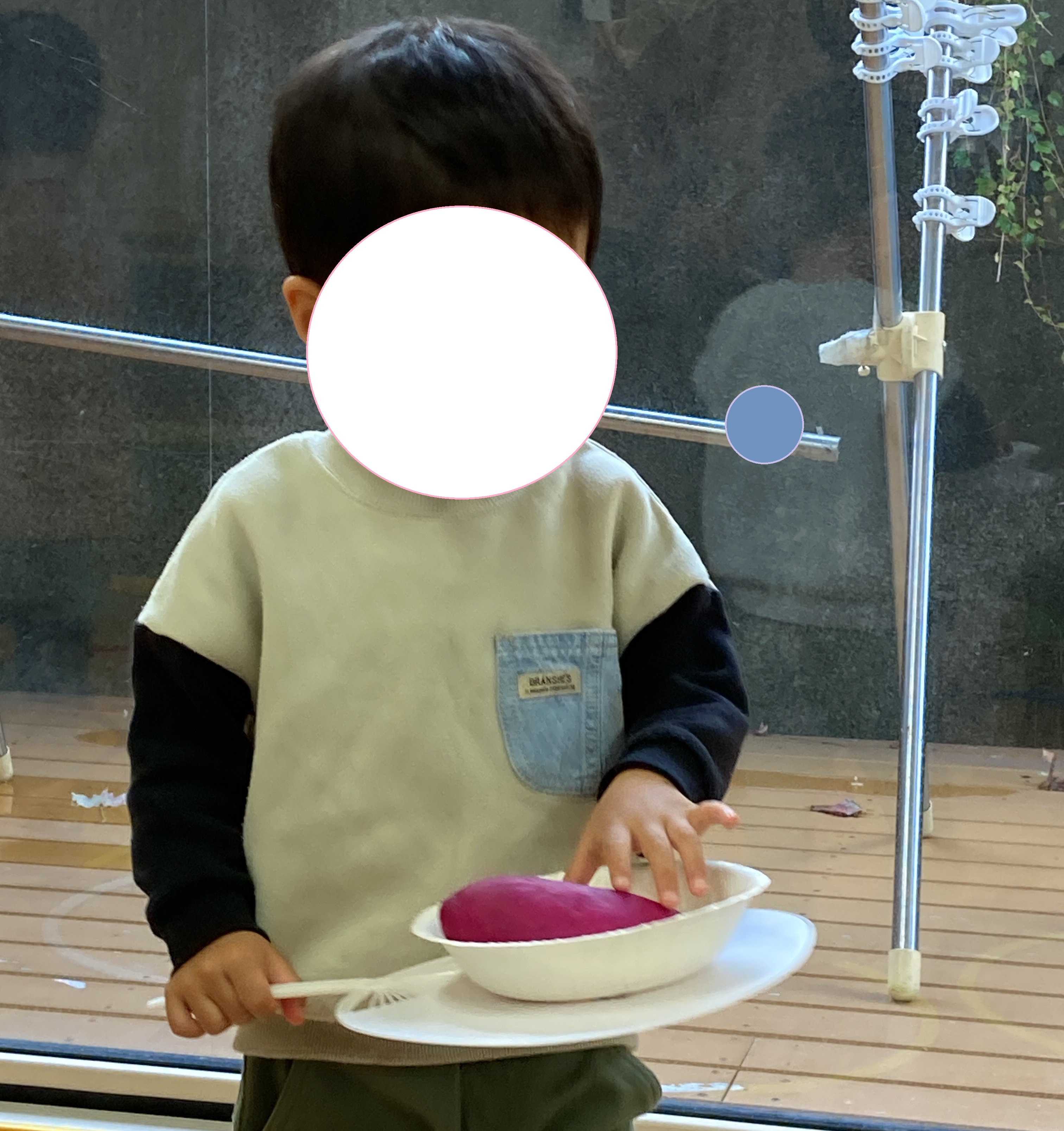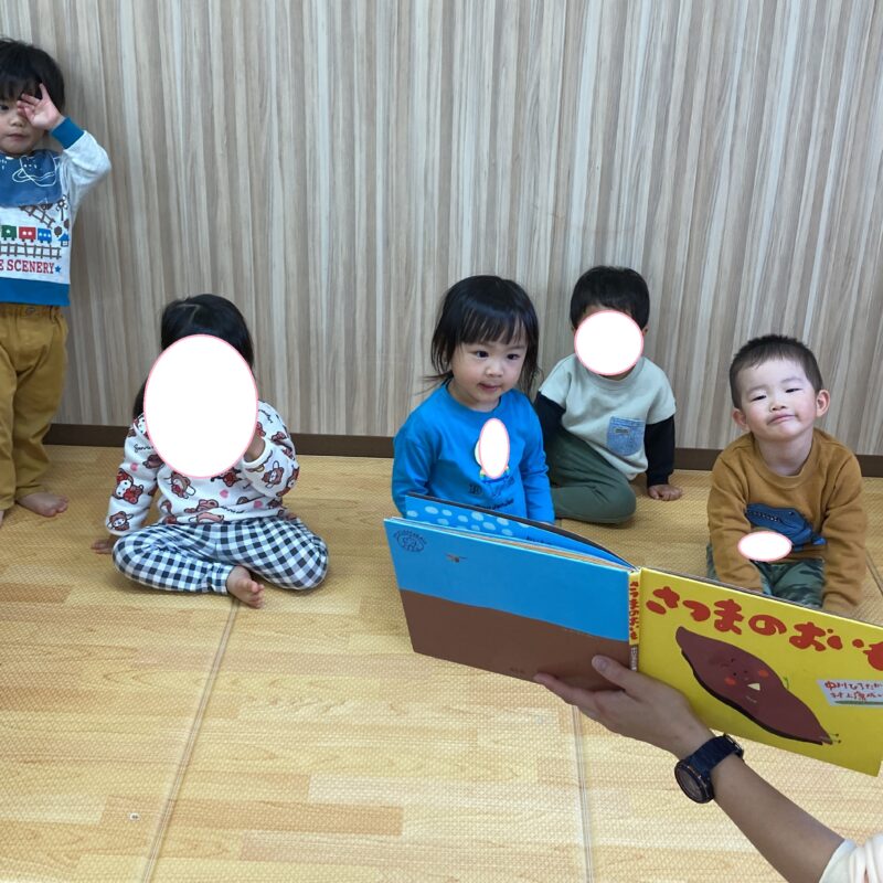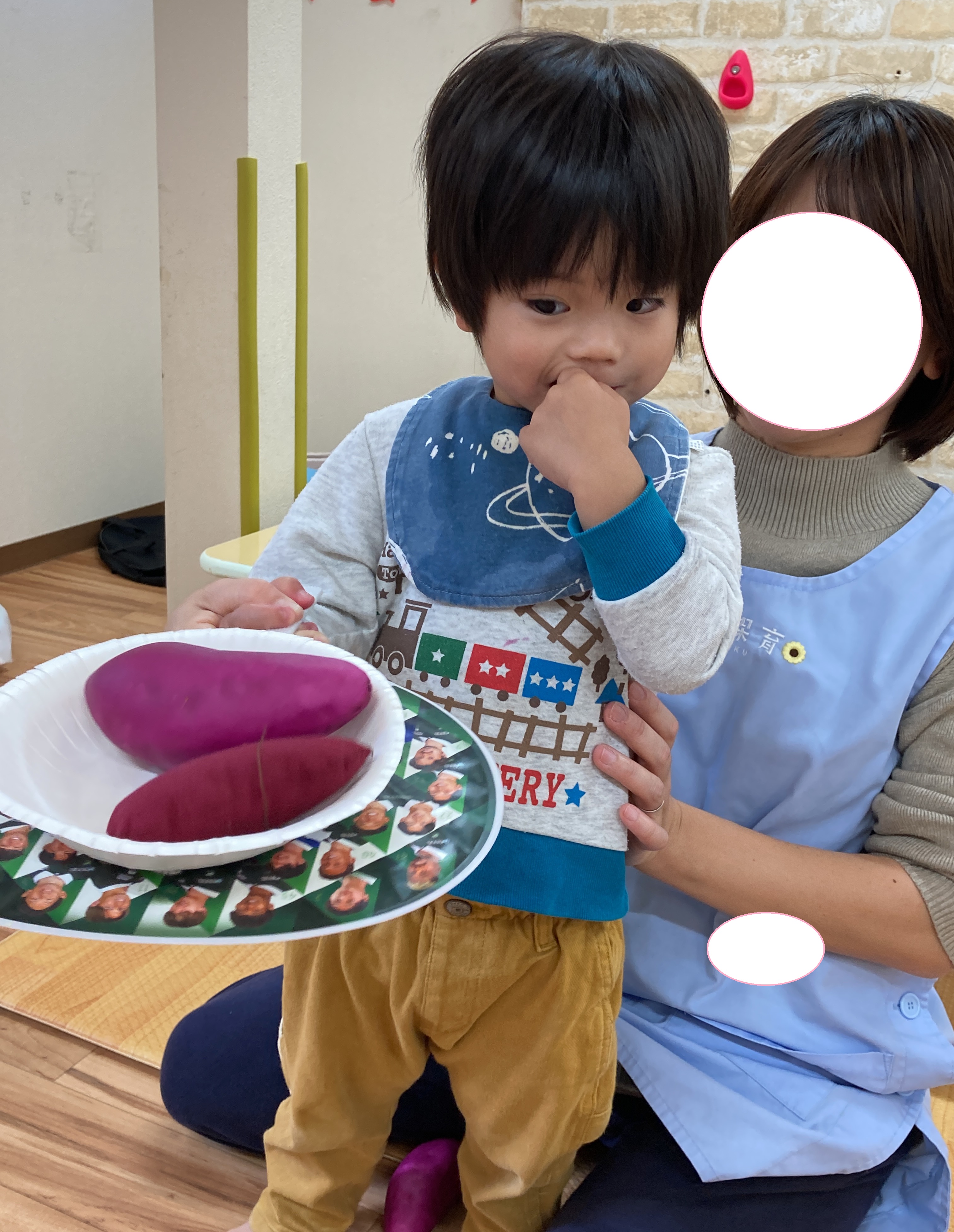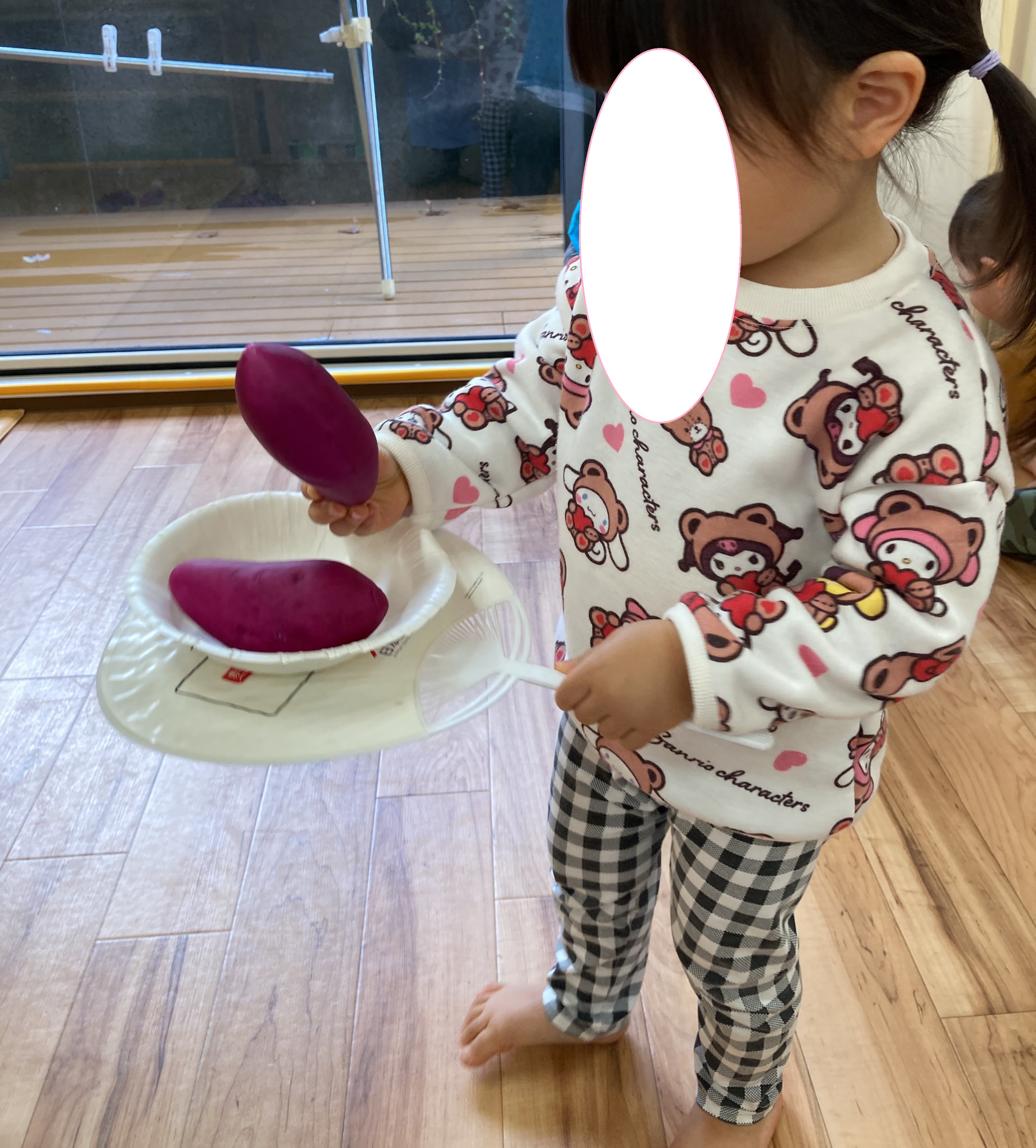 次は絵本を見て、実際に様々な素材のサツマイモを取り出します