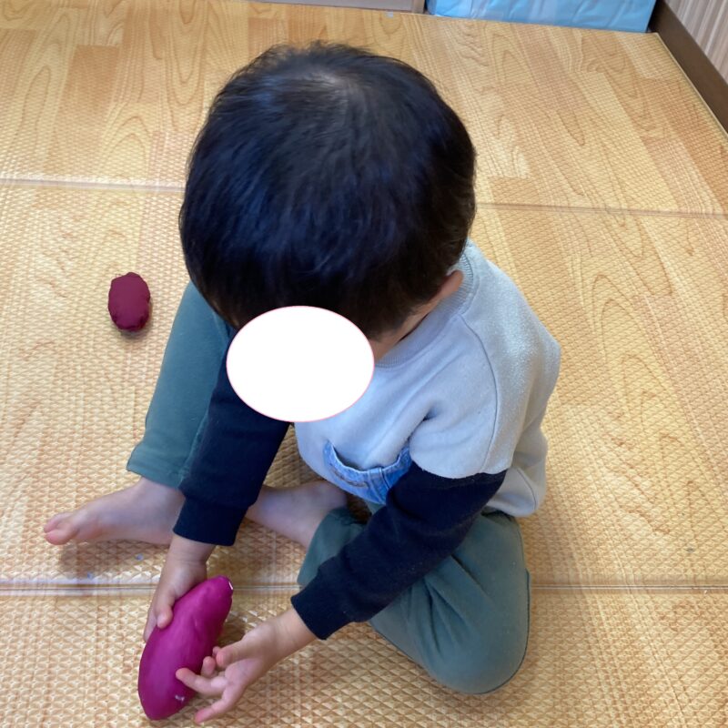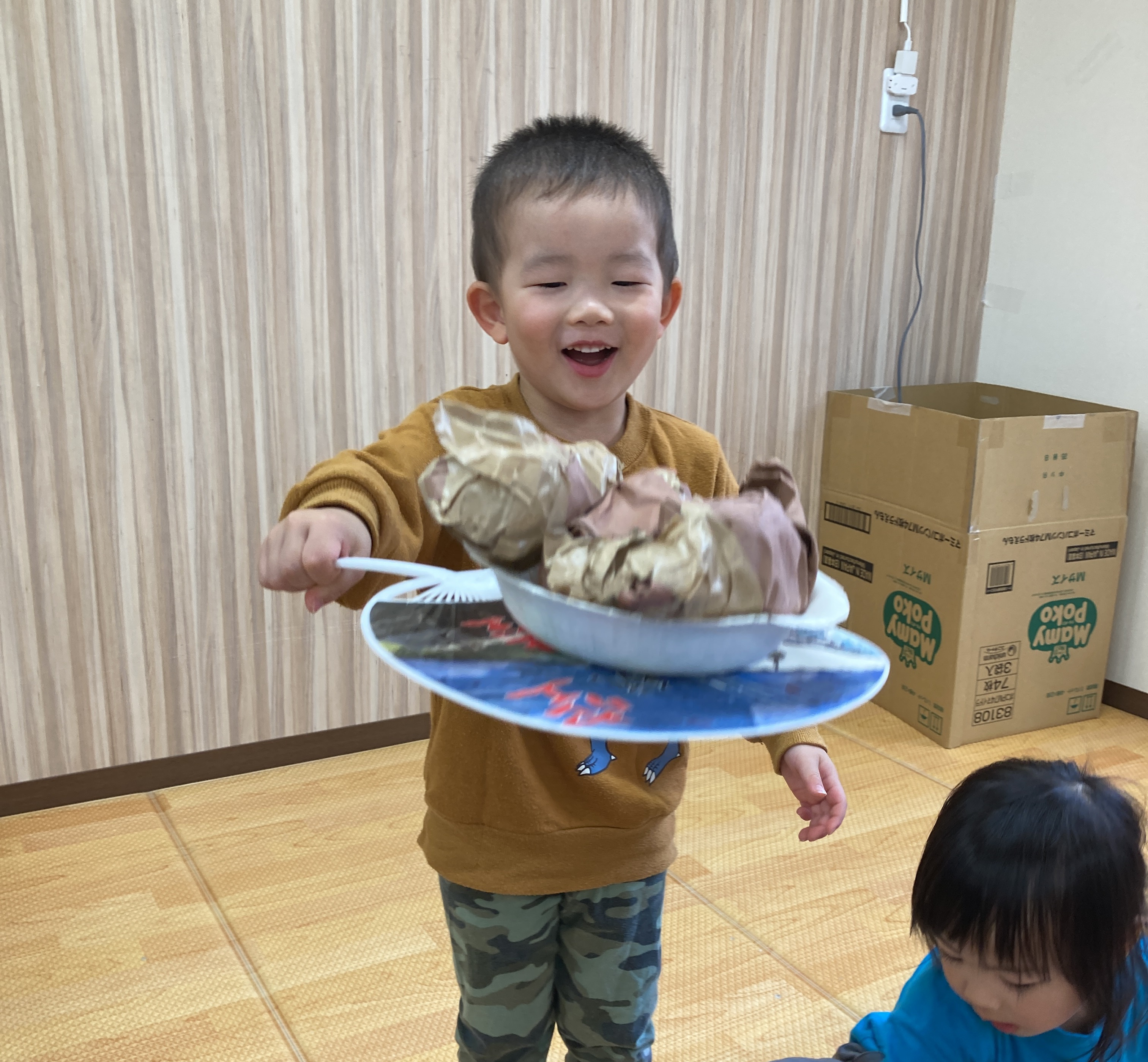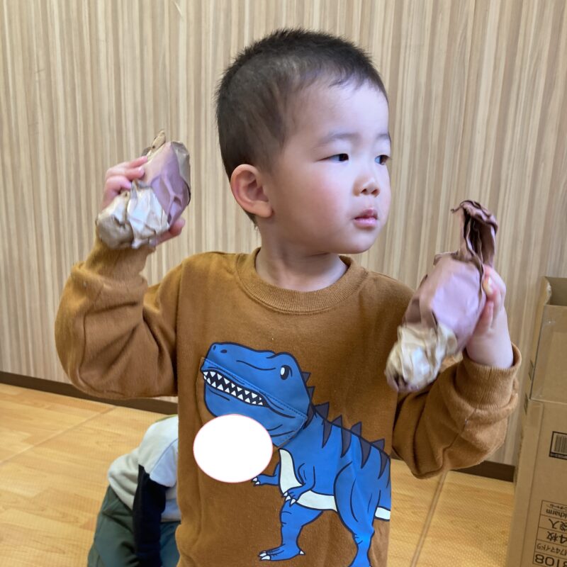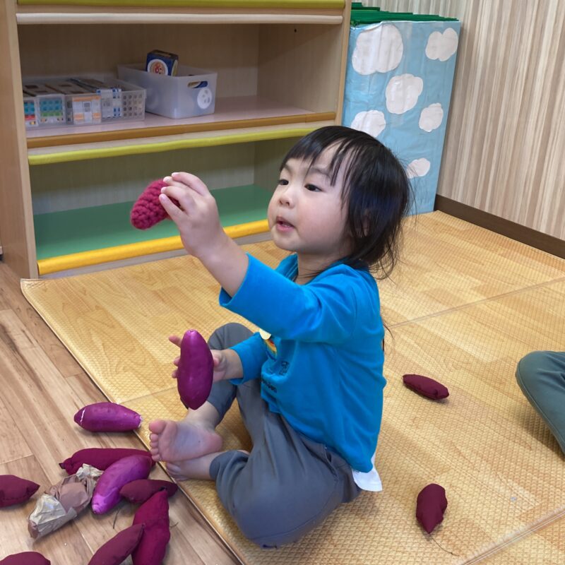 様々な素材で作られたサツマイモを箱から取り出しますどんなお芋かな?