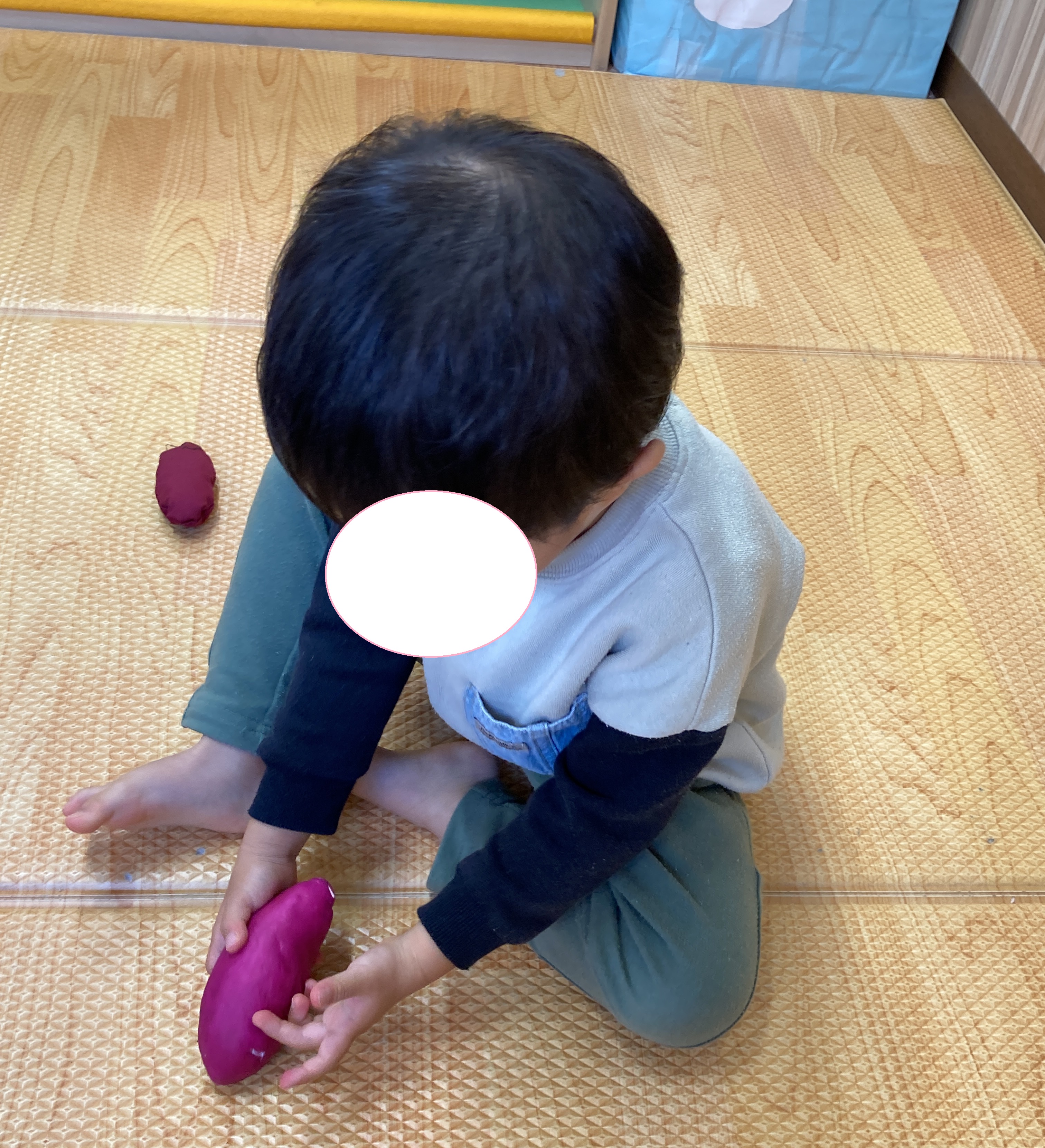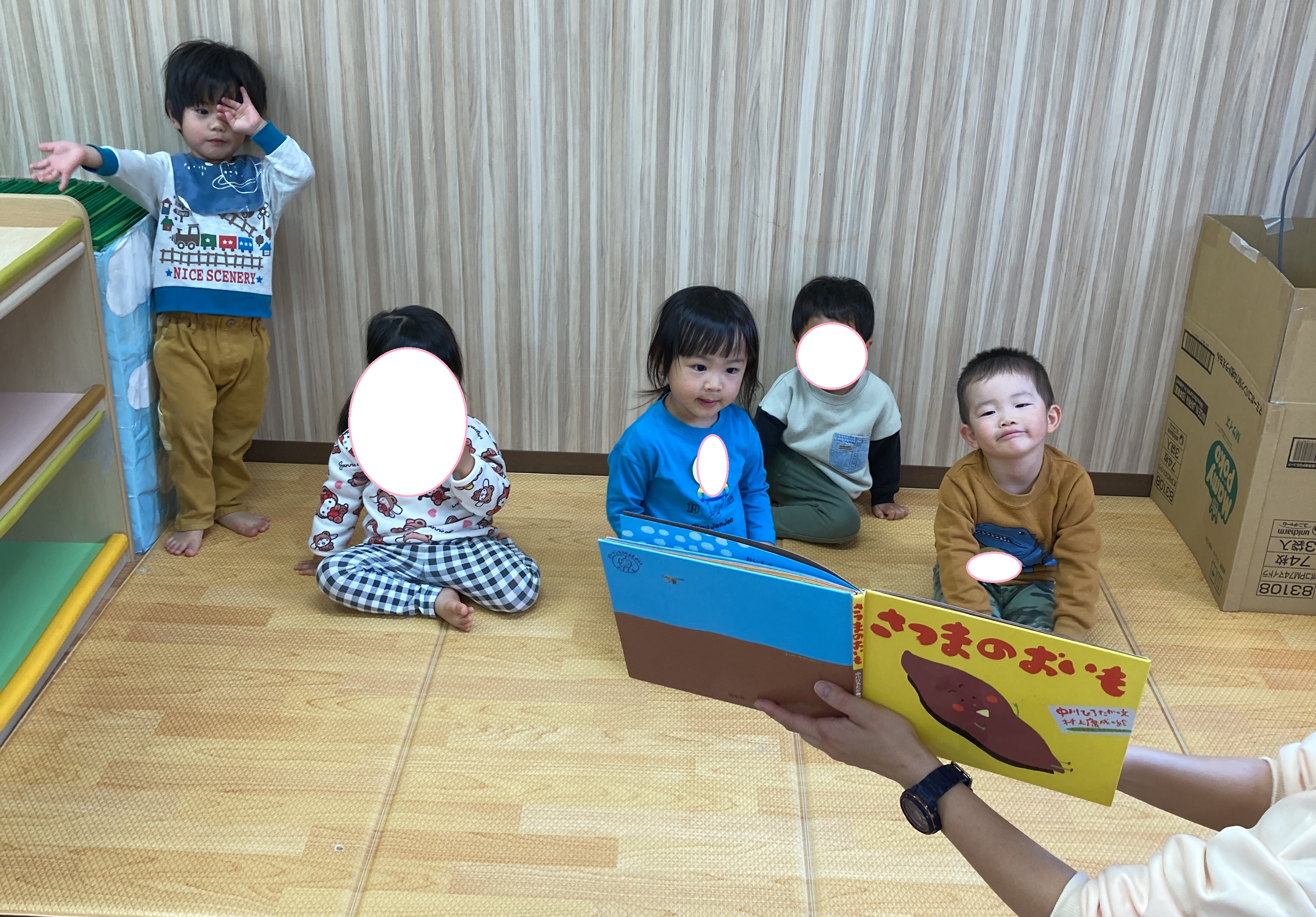 次は絵本を見て、実際に様々な素材のサツマイモを取り出します