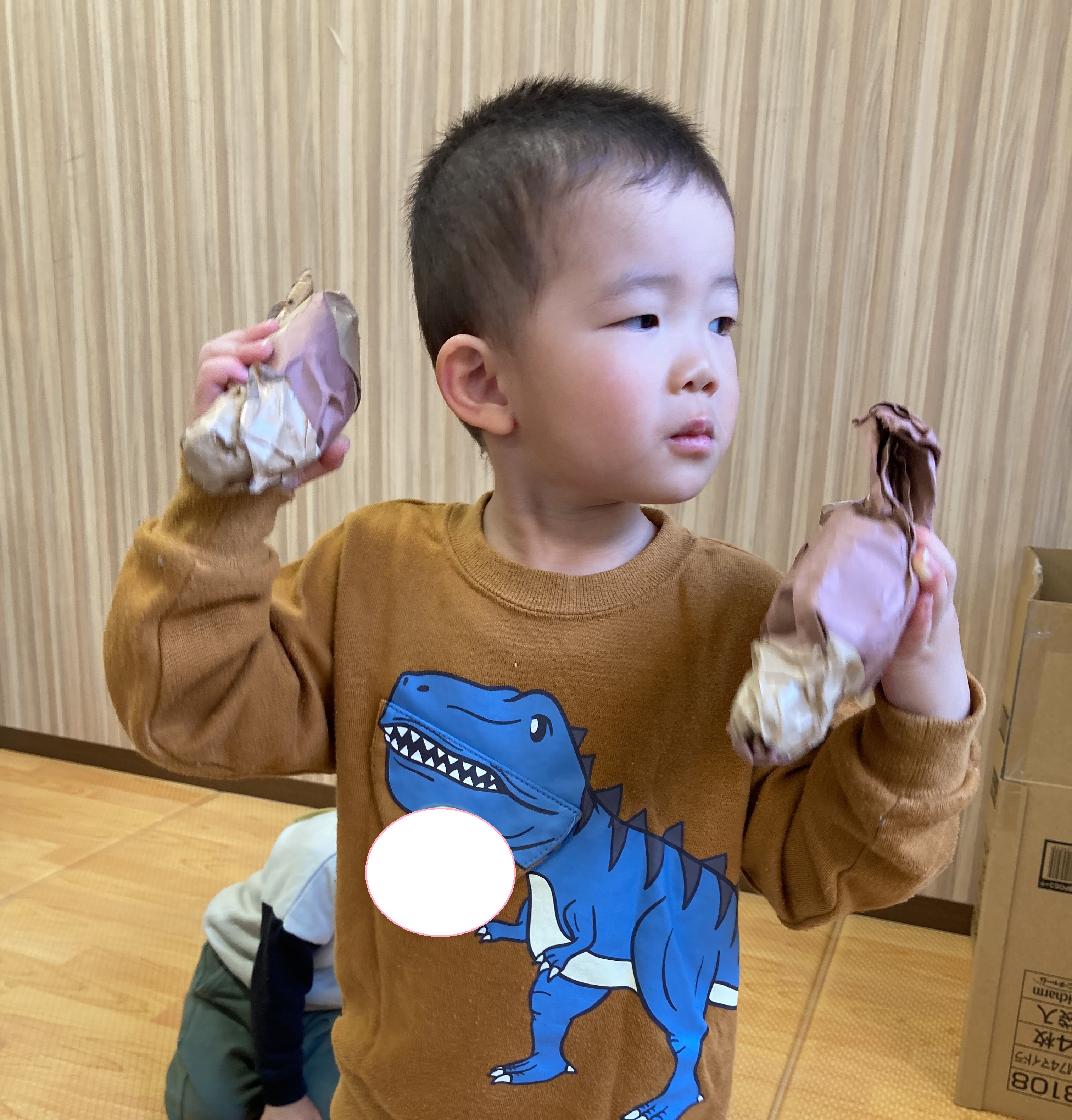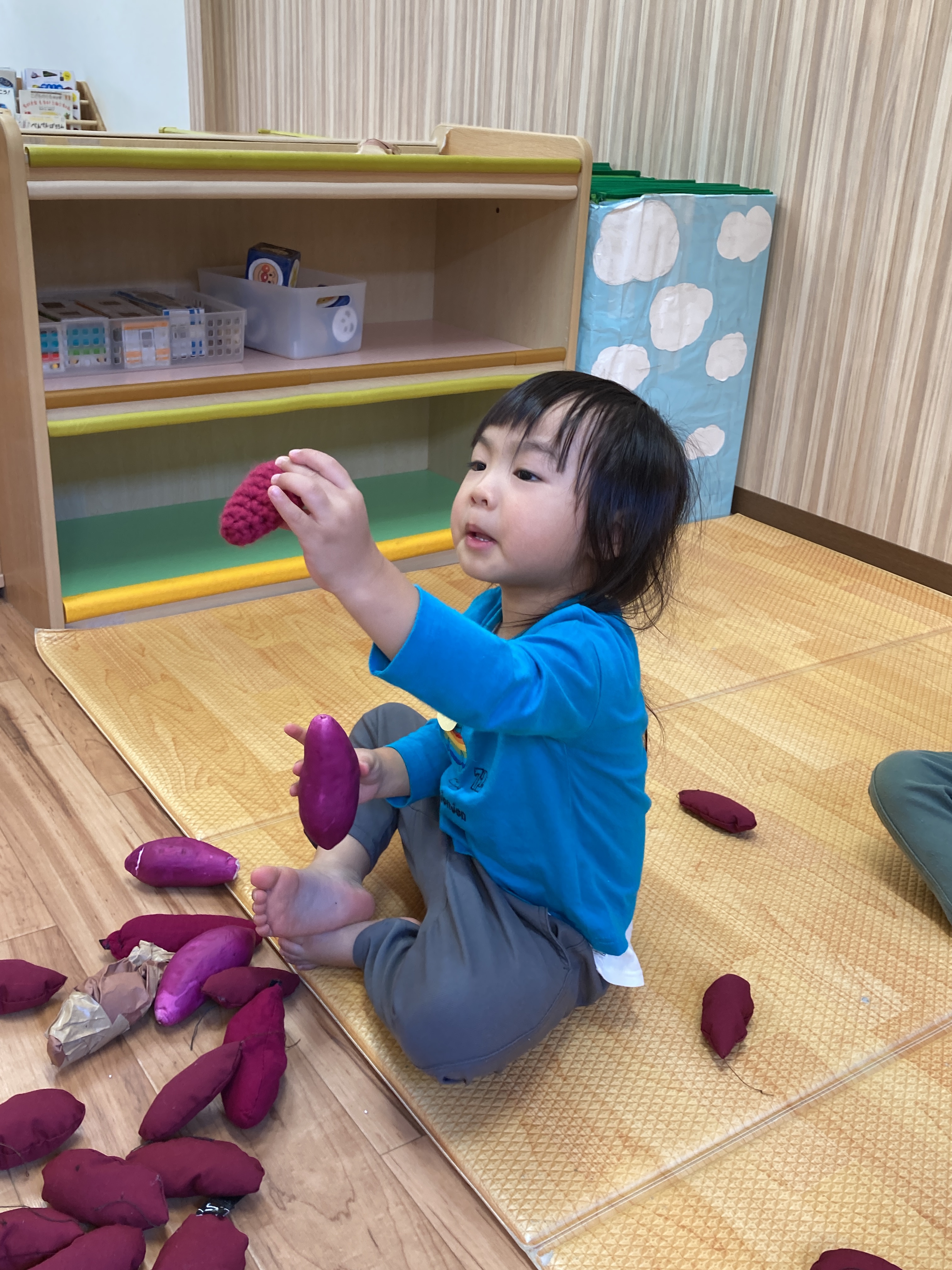 様々な素材で作られたサツマイモを箱から取り出しますどんなお芋かな?
