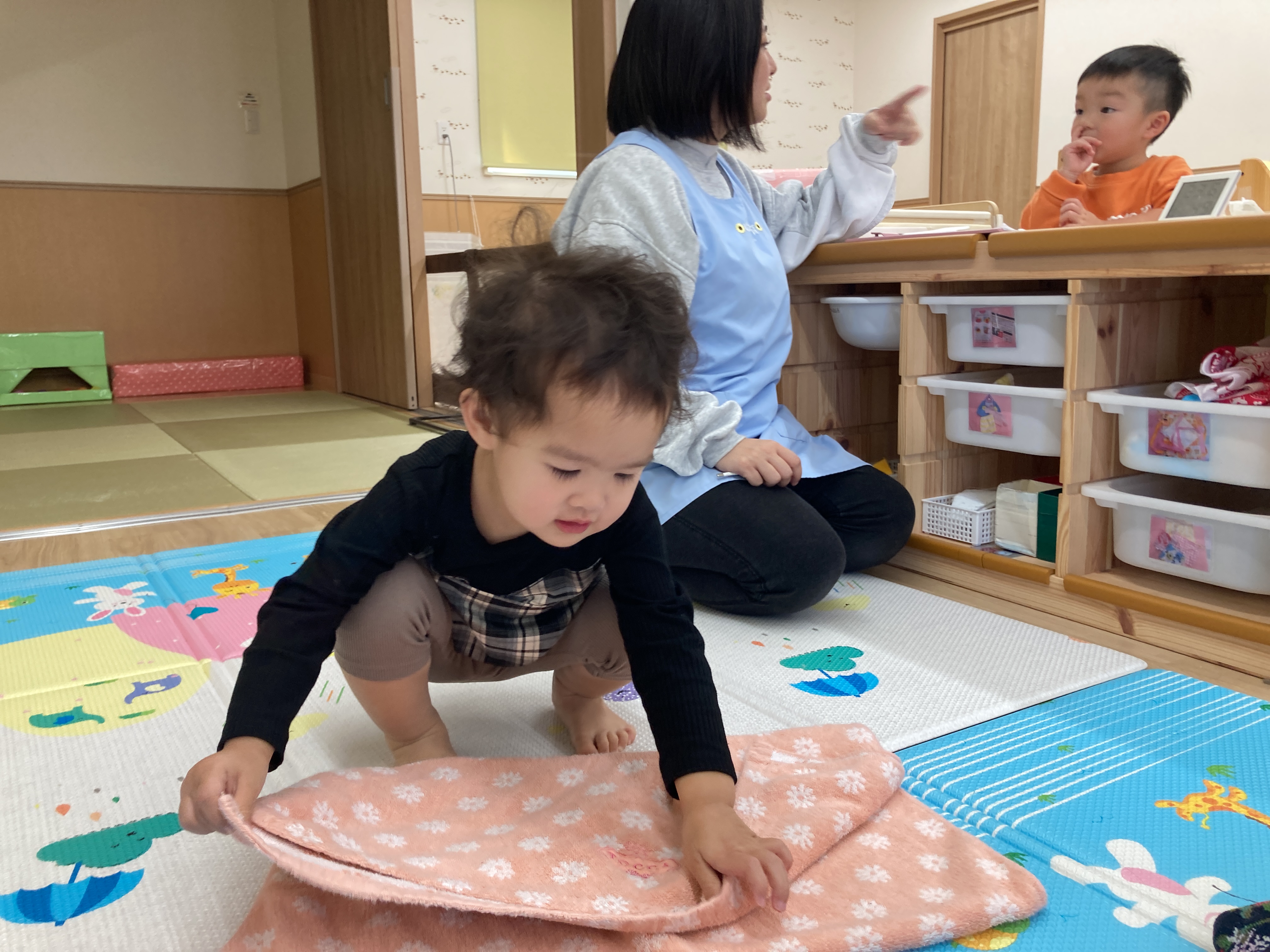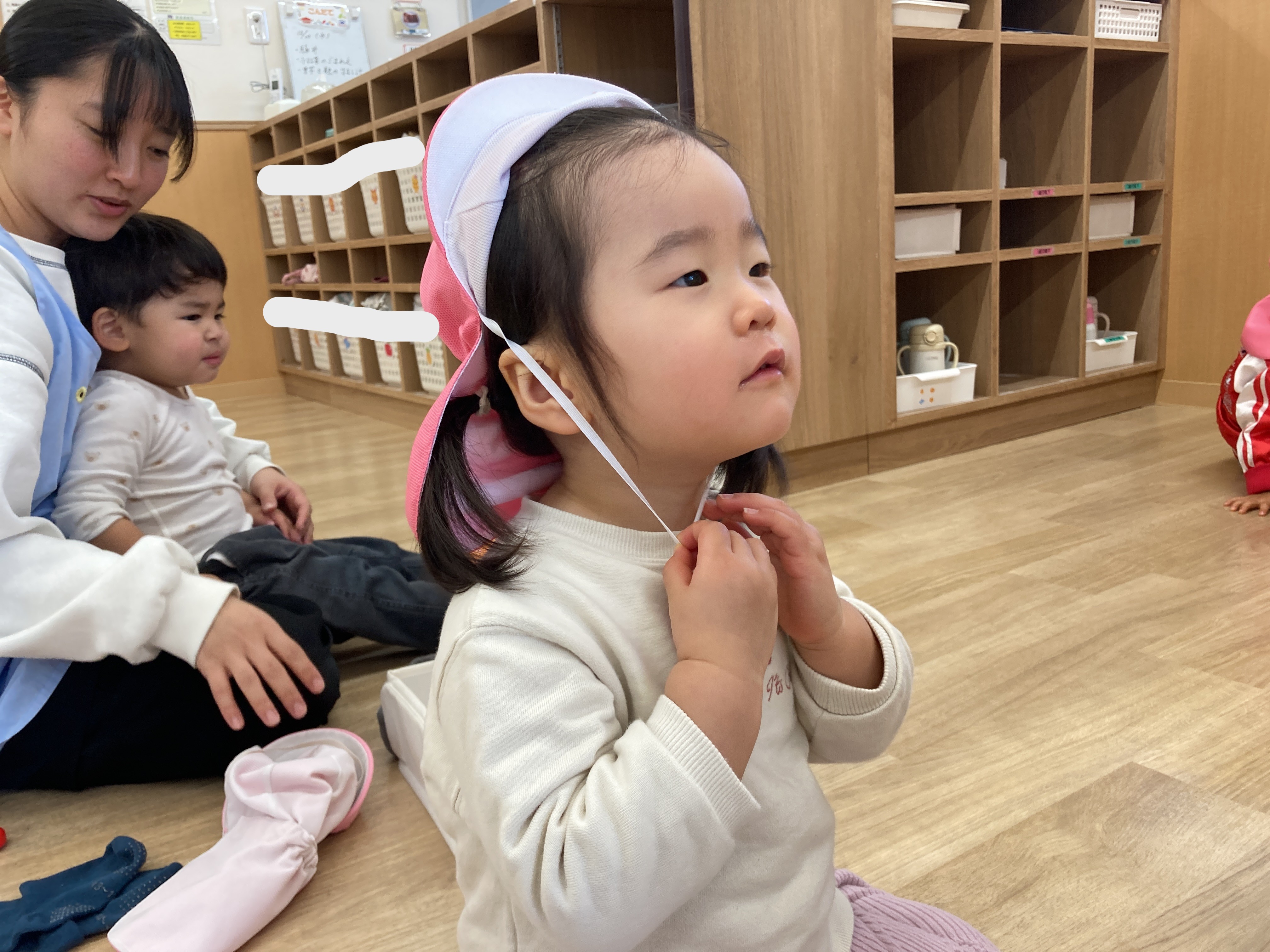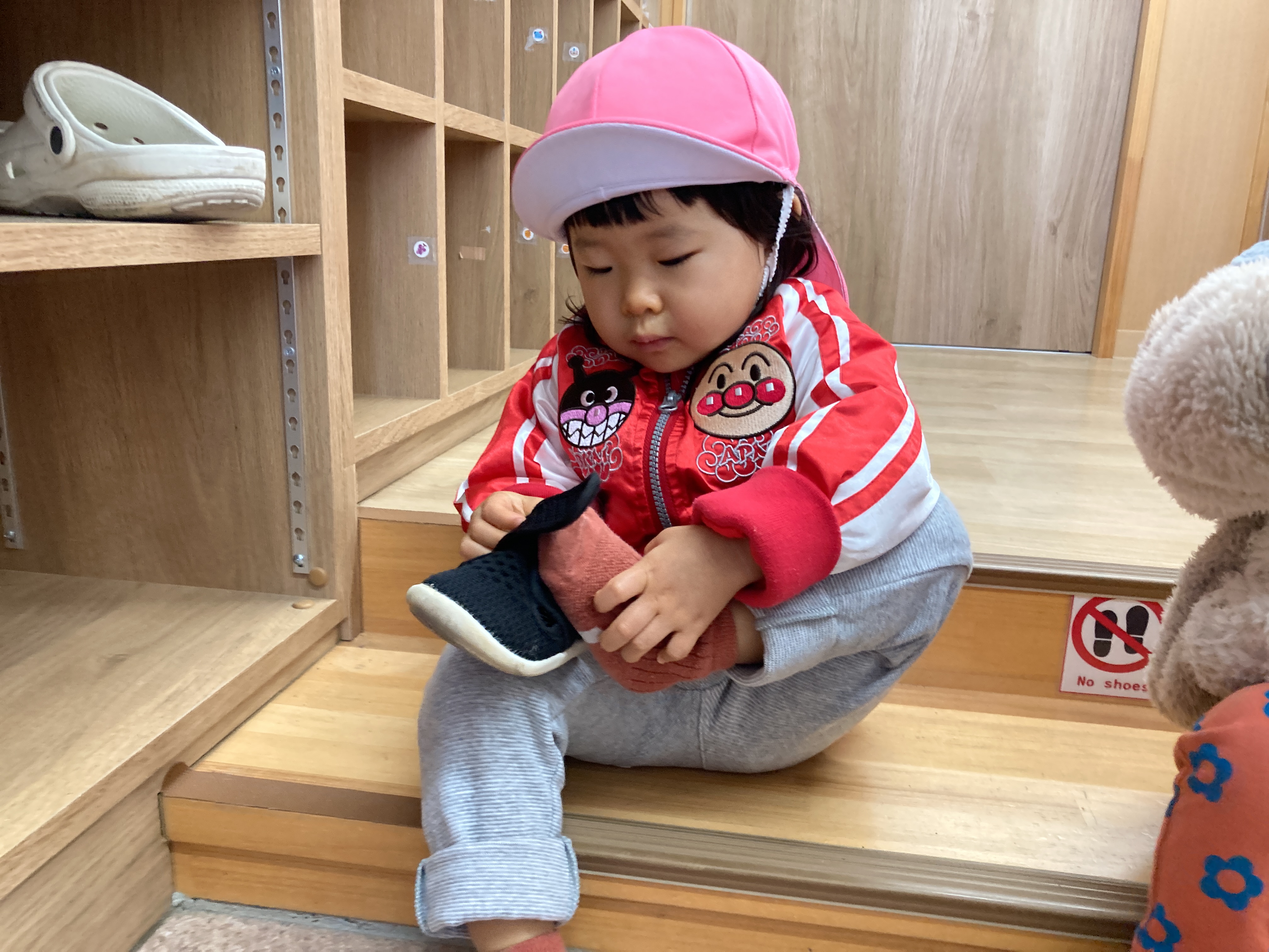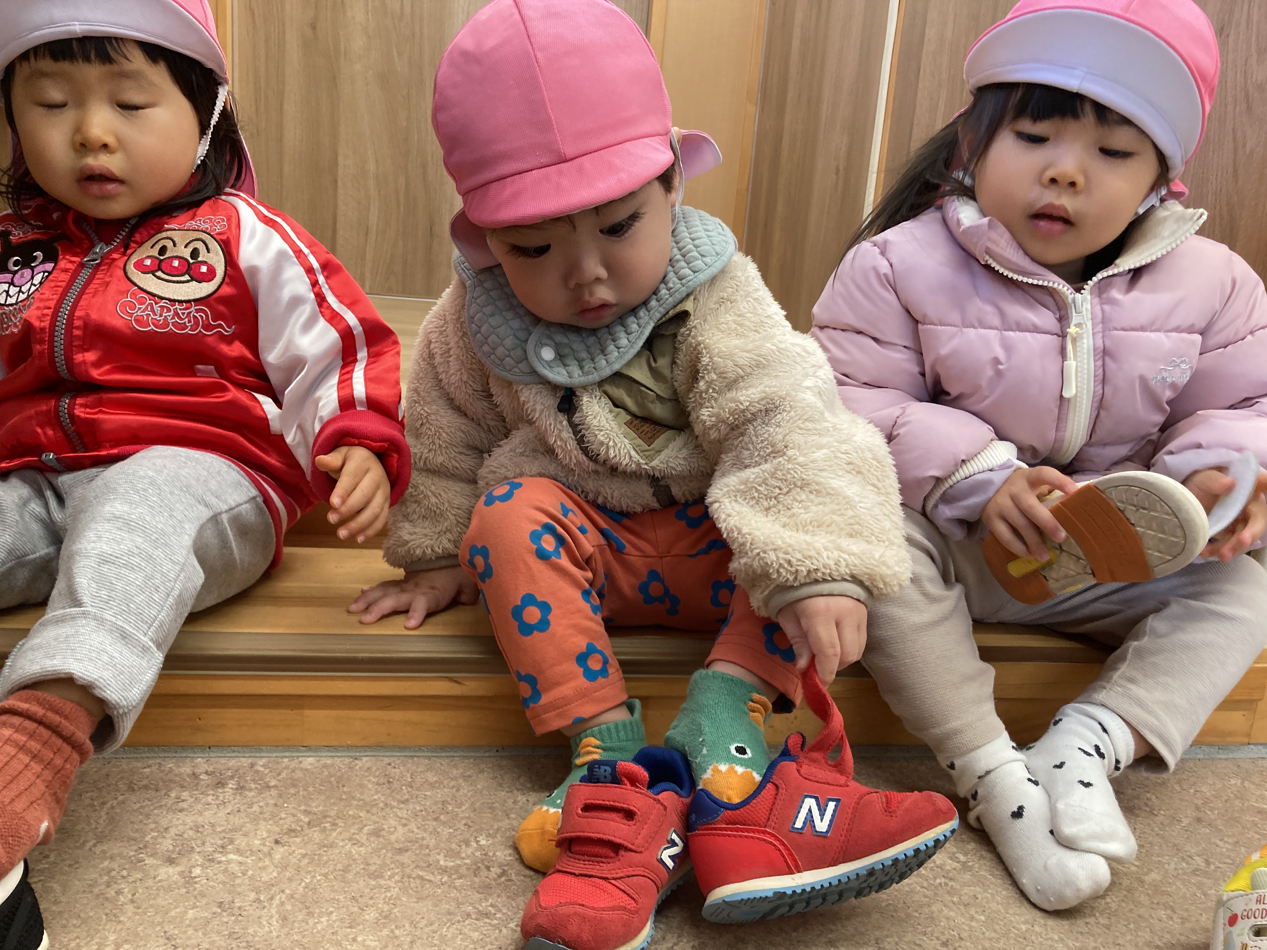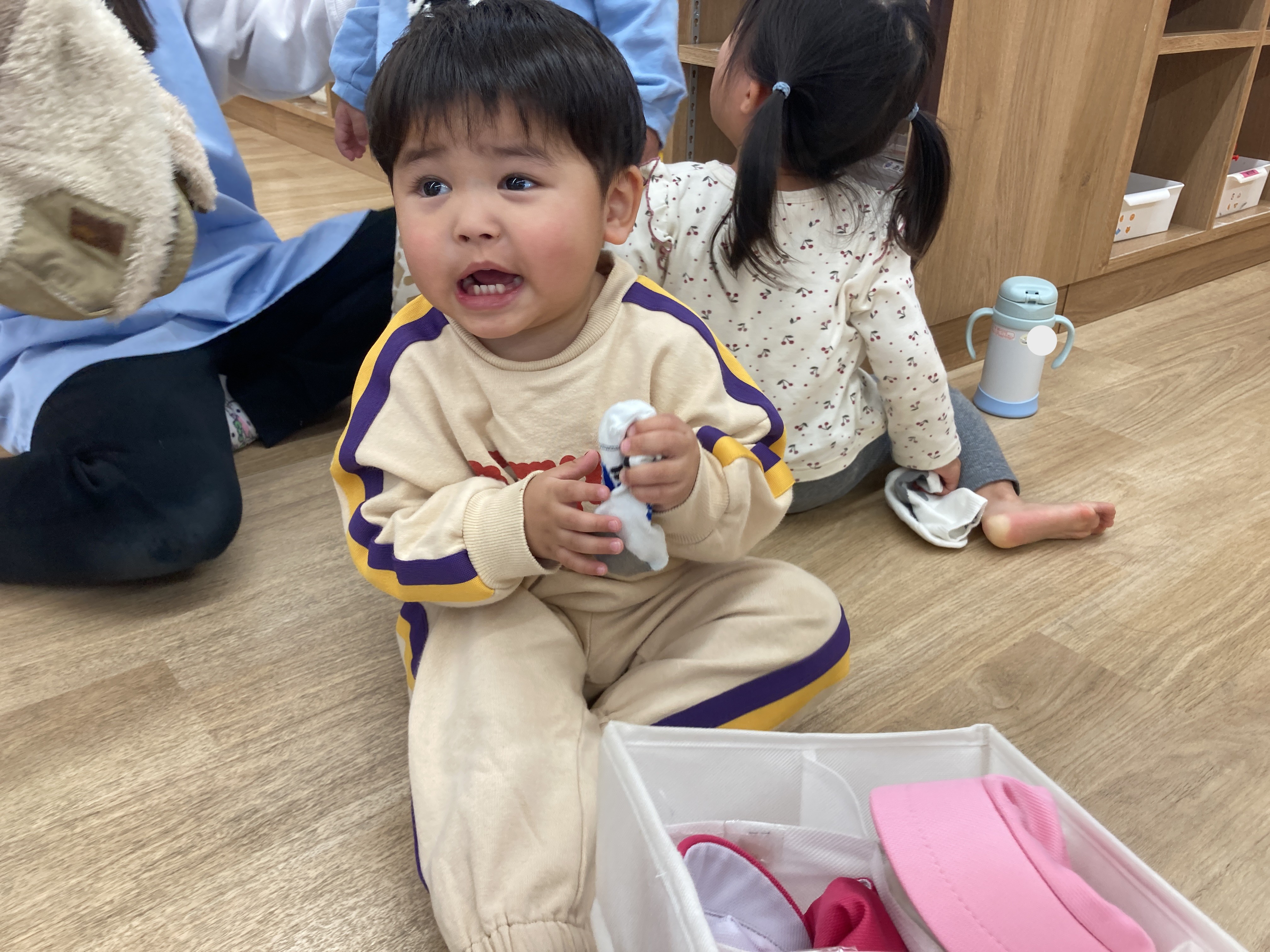 靴下を自分で脱げるお友だちもいるよ![]()