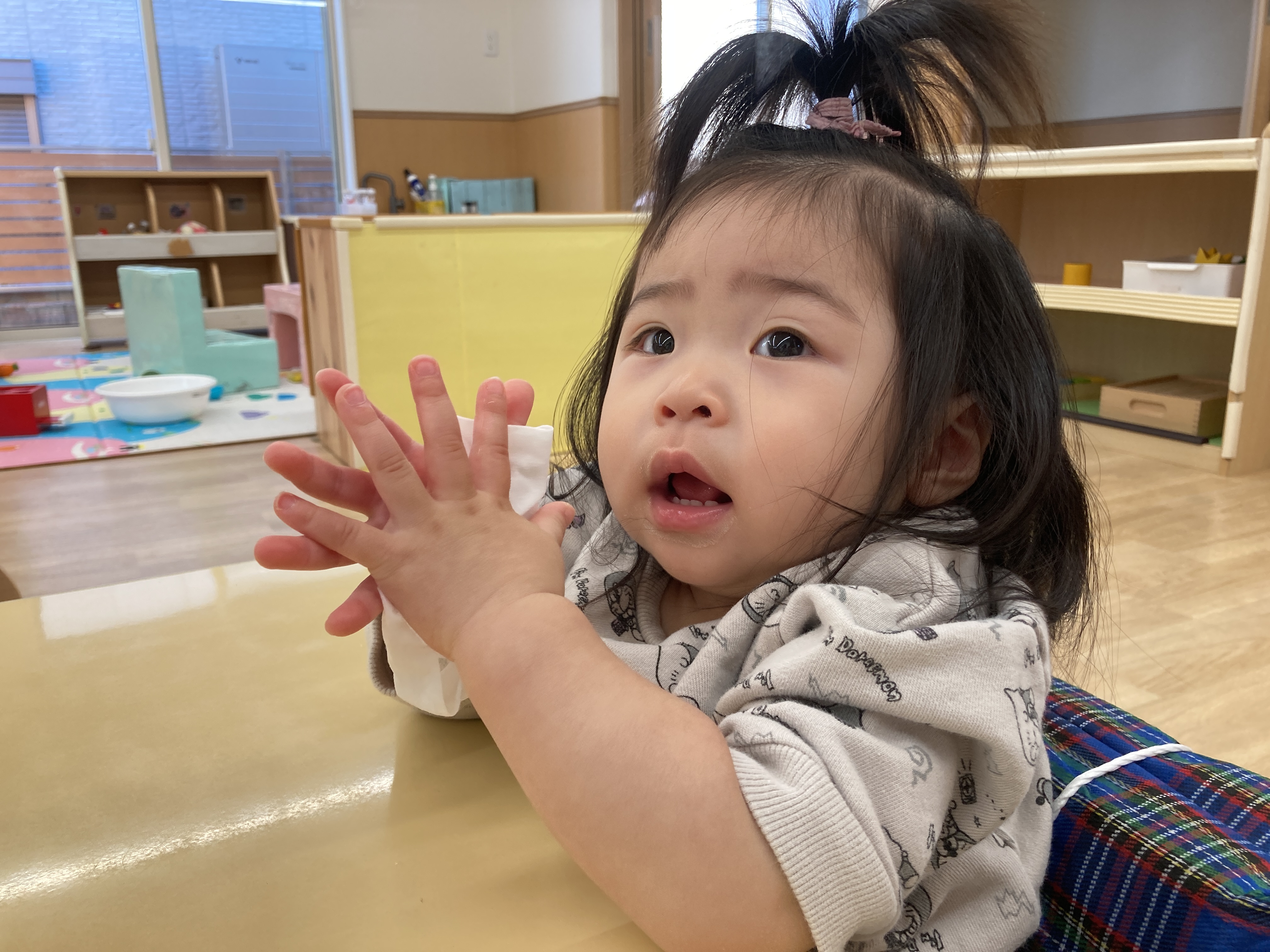 食事の後は口や手を綺麗にします![]()