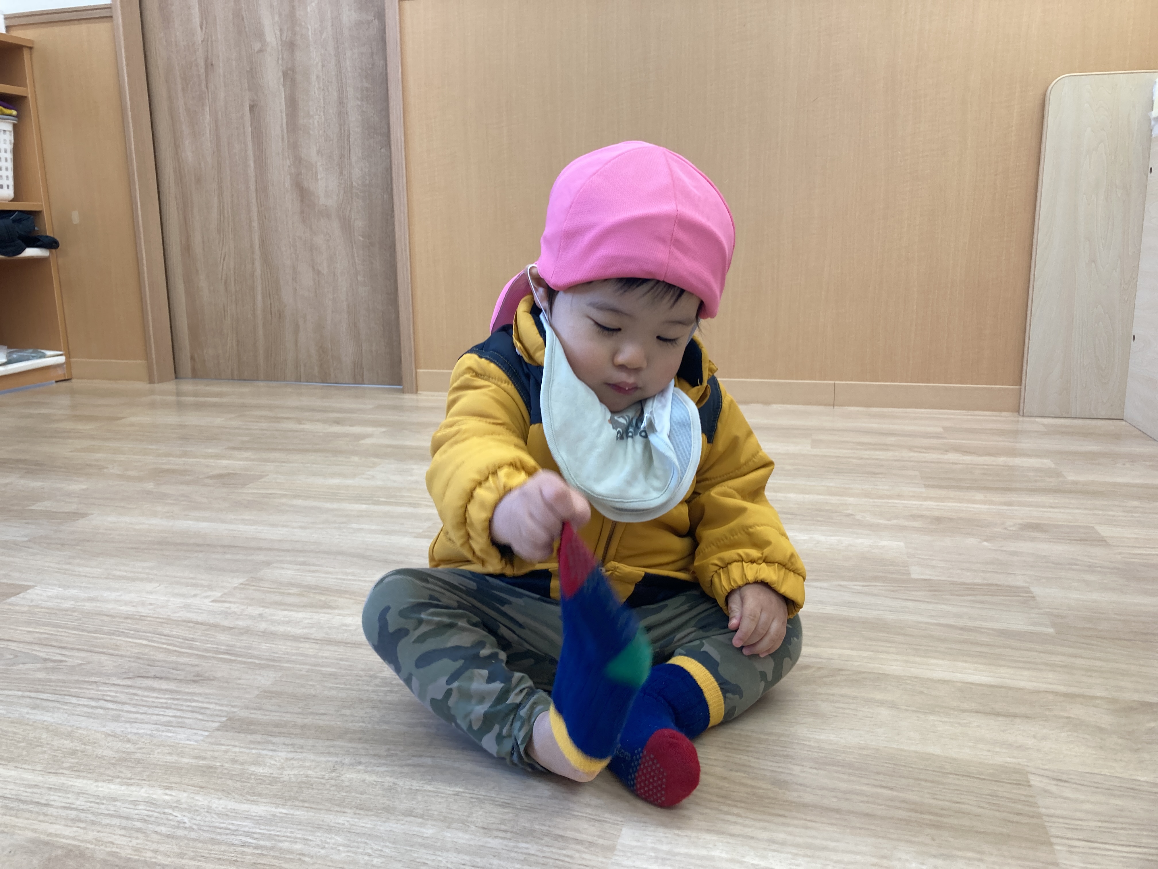 自分の靴下を自分で持ってきて履いてます🧦