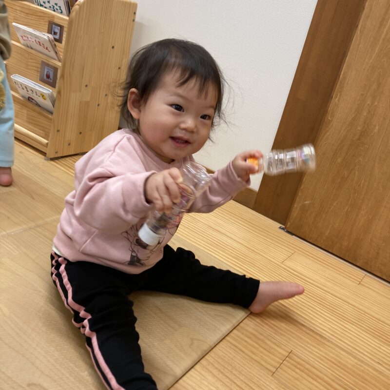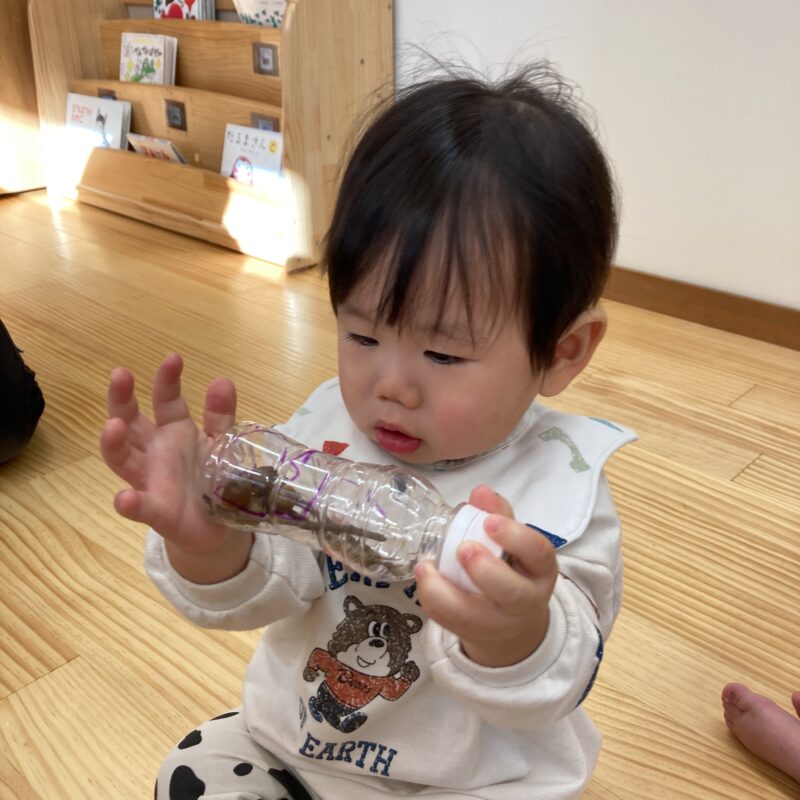 指先の動きが発達してきて、穴に物を入れるポットン落としが上手になった子どもたち😌