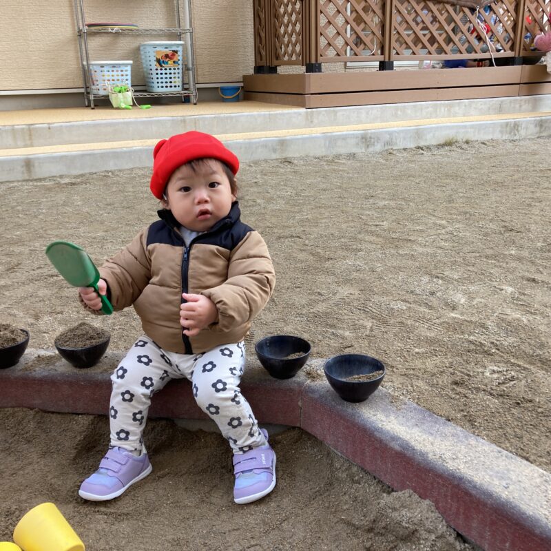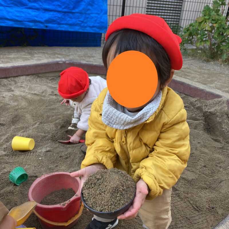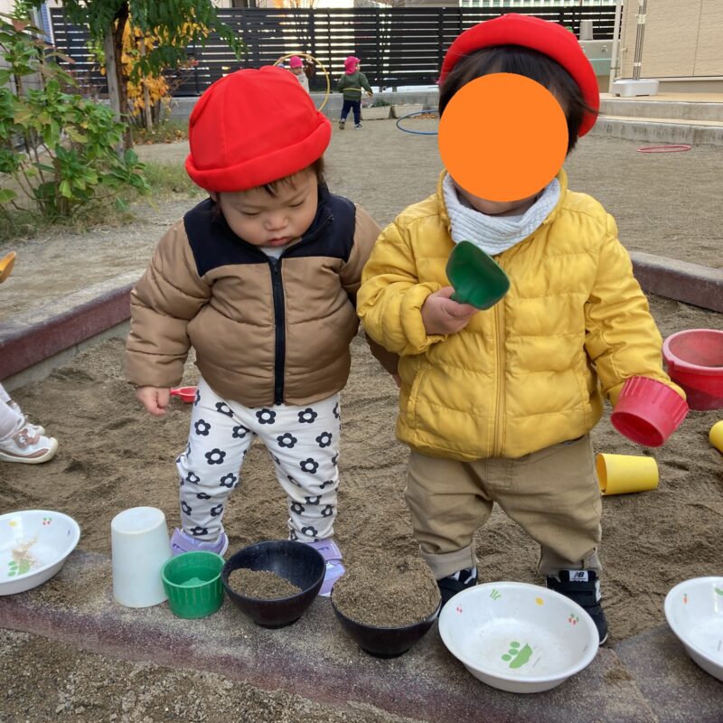 園庭の砂場ではごはん屋さんごっこがブームです🍚‼