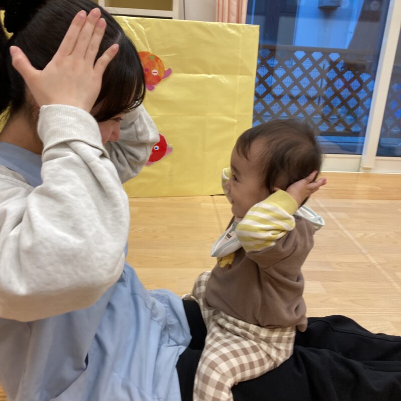 「あたまはとんがって」「おしりはぺったんこ」の歌に合わせて振り付けを真似してくれてとっても可愛いですね![]()