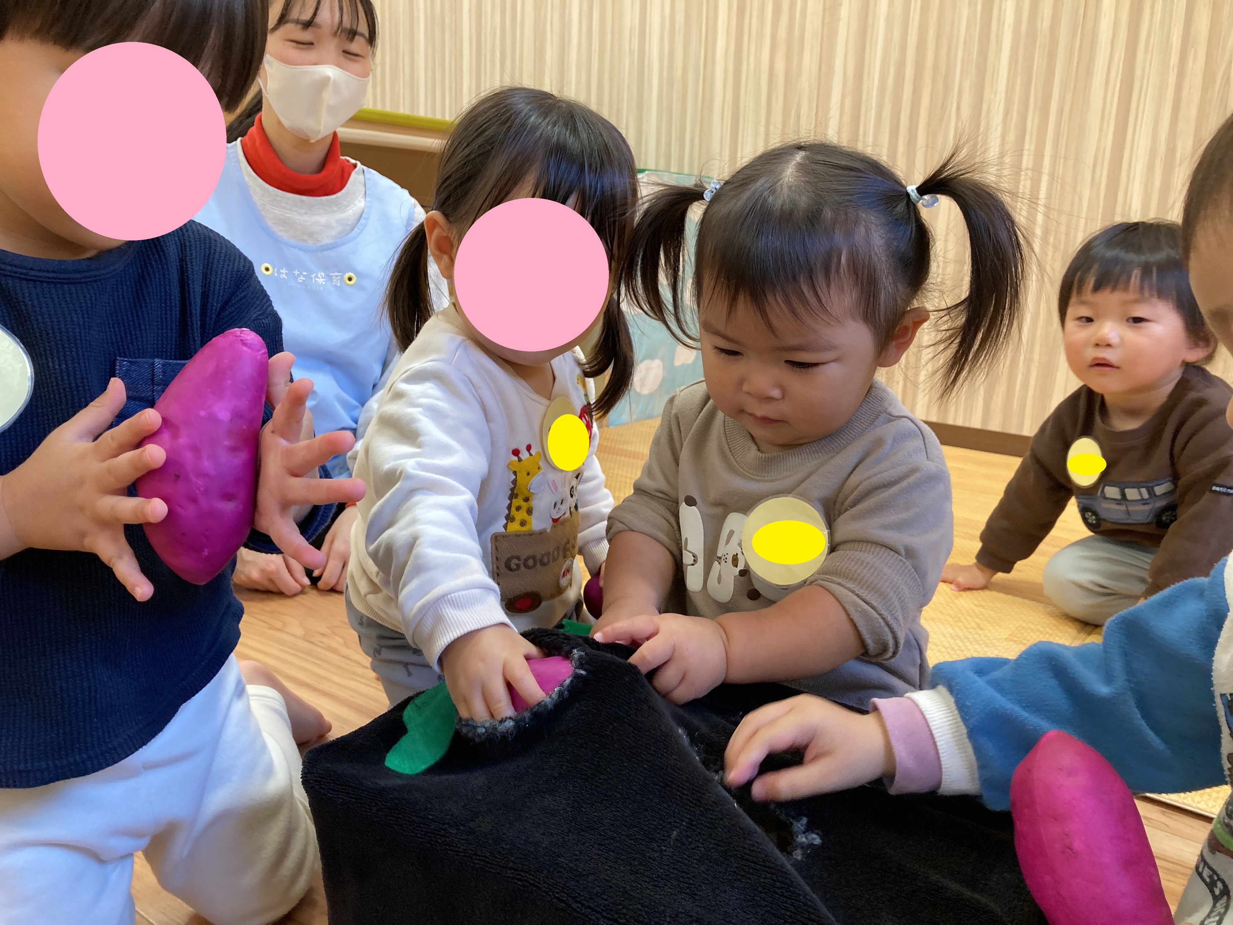 11月のテーマは「お芋🍠」リズムに合わせて焼き芋を作ったり芋ほりをしたりしました!