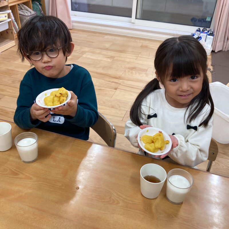 できたてのスイートポテトをみんなで味わい、子どもたちの笑顔が溢れていました![]()