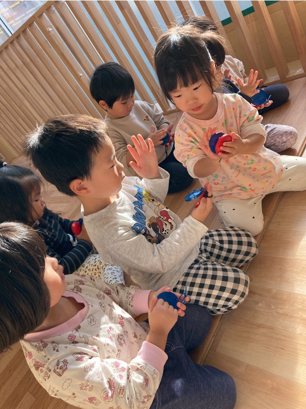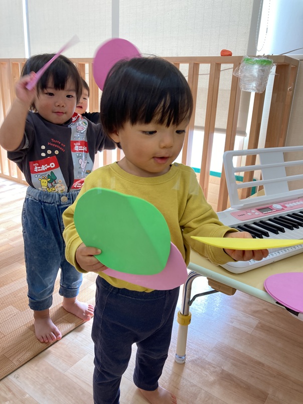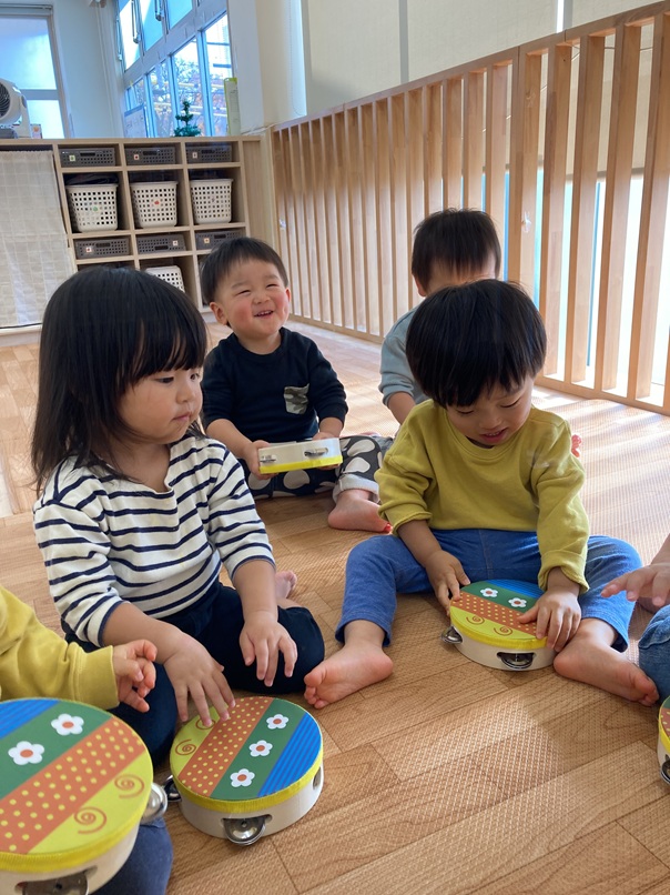 タンバリンや鈴、マラカスなどいろいろな音を鳴らして楽しんでいます🔔