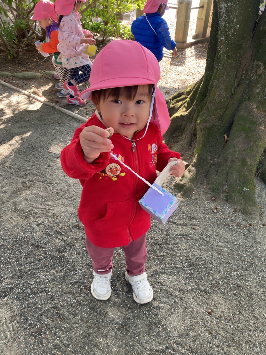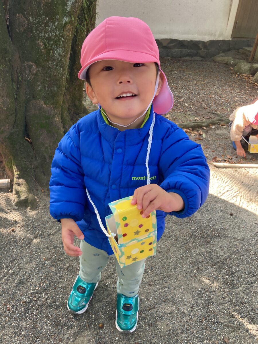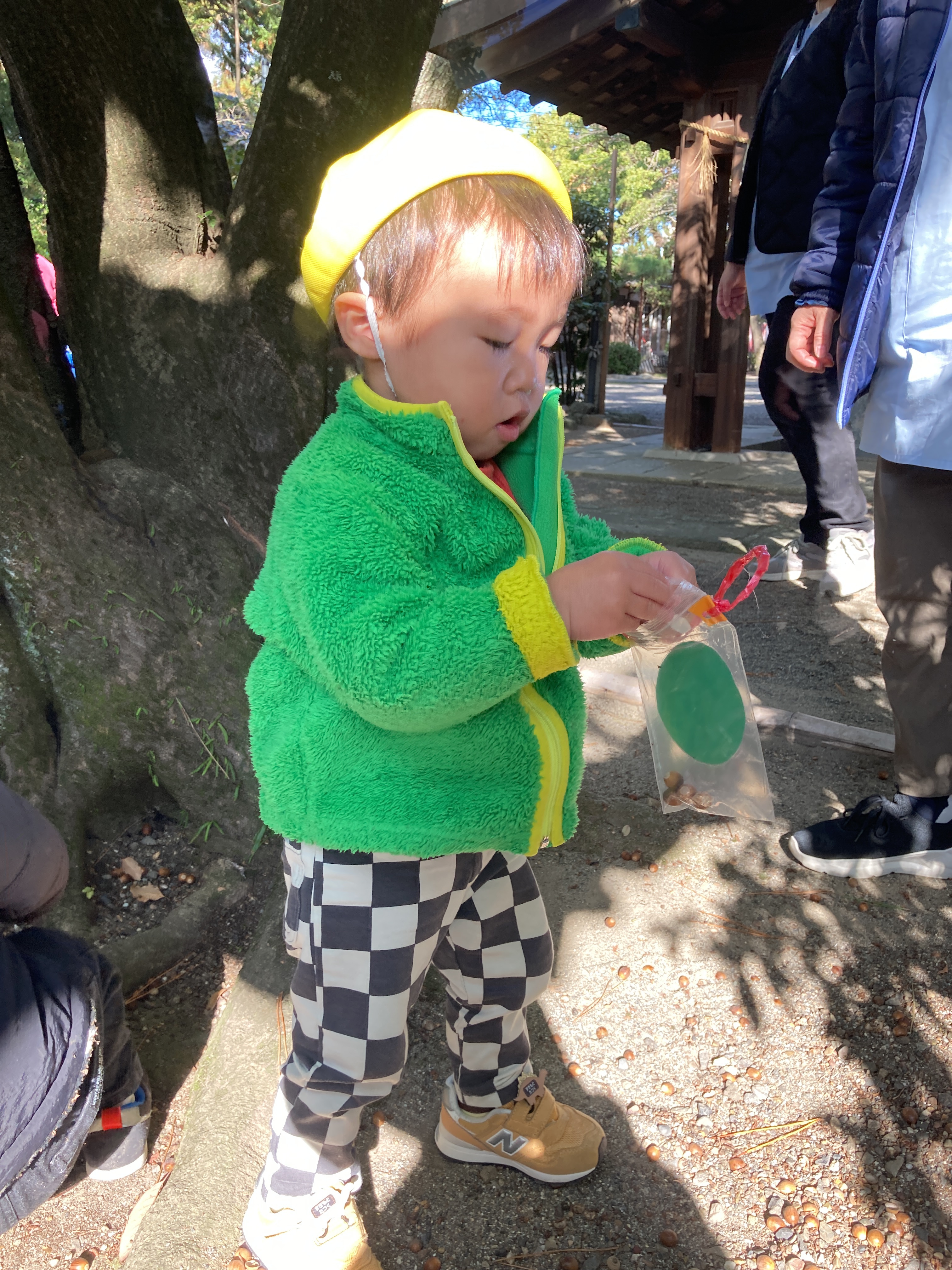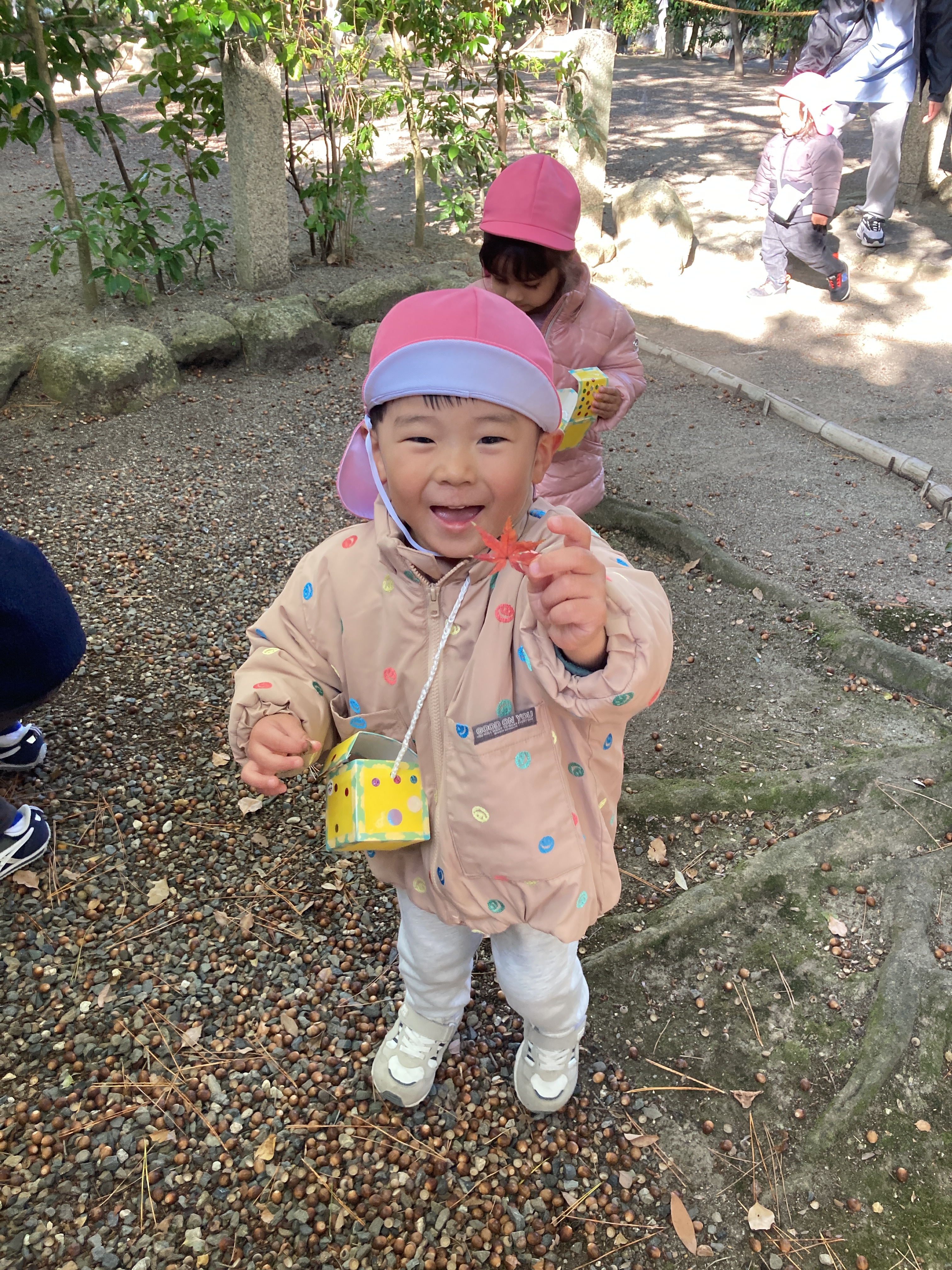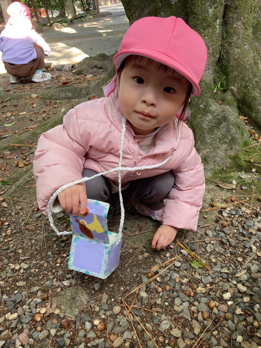 拾ったどんぐりを見せあいっこしたり、お友だちにどうぞと渡す姿もありました!