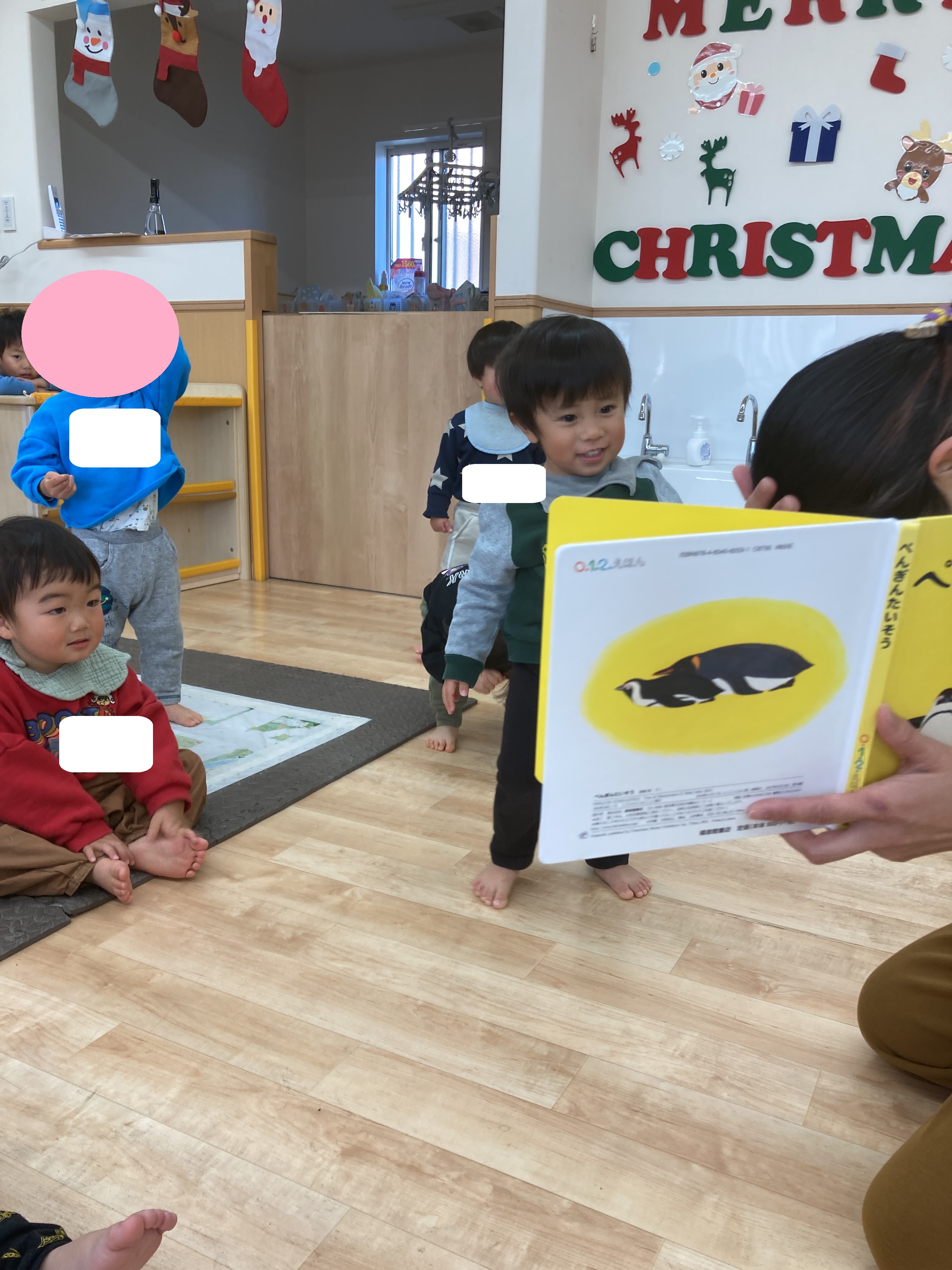 絵本「ぺんぎんたいそう」を読み、ペンギンになりきって歩くことを楽しみました🐧