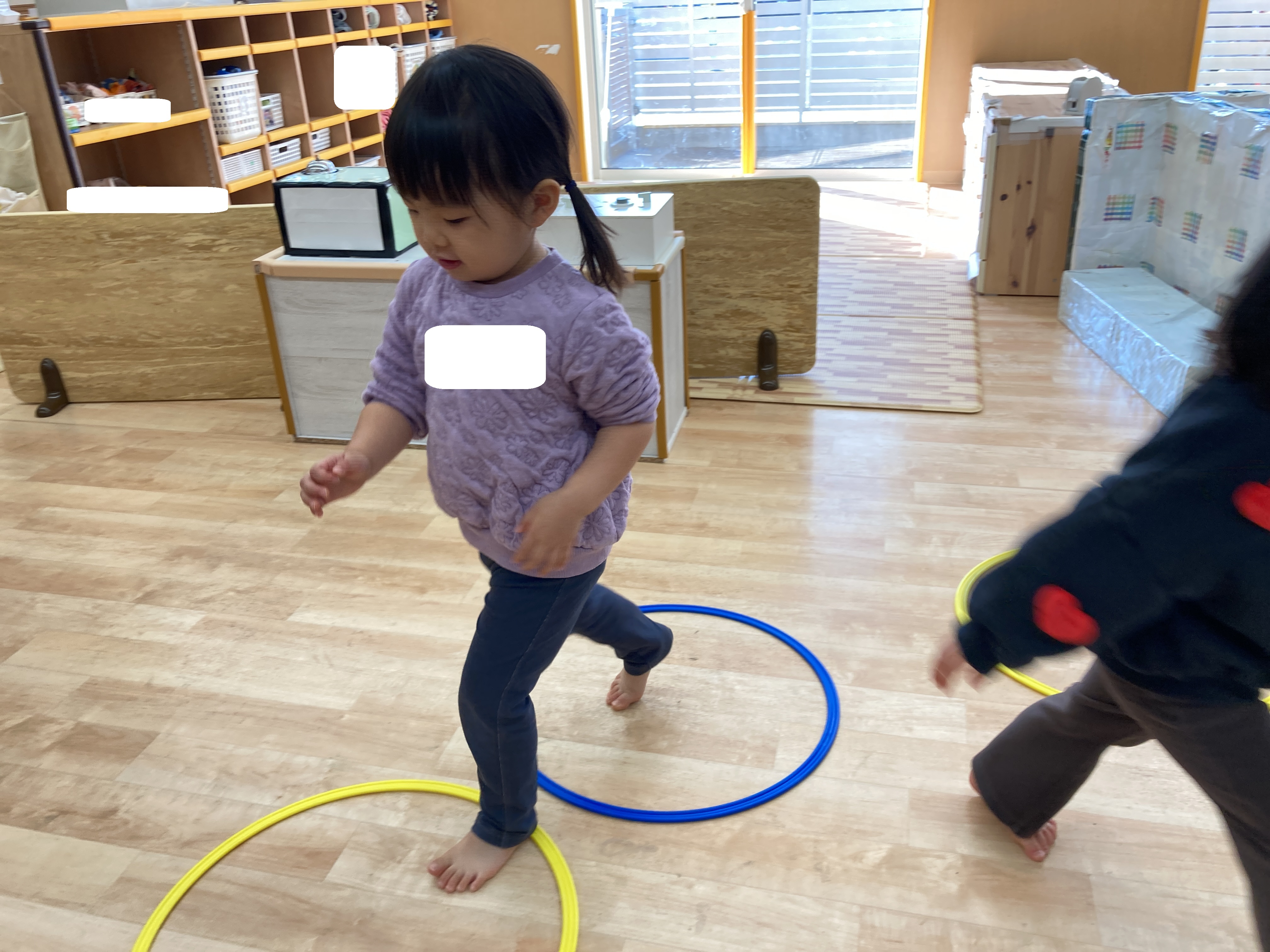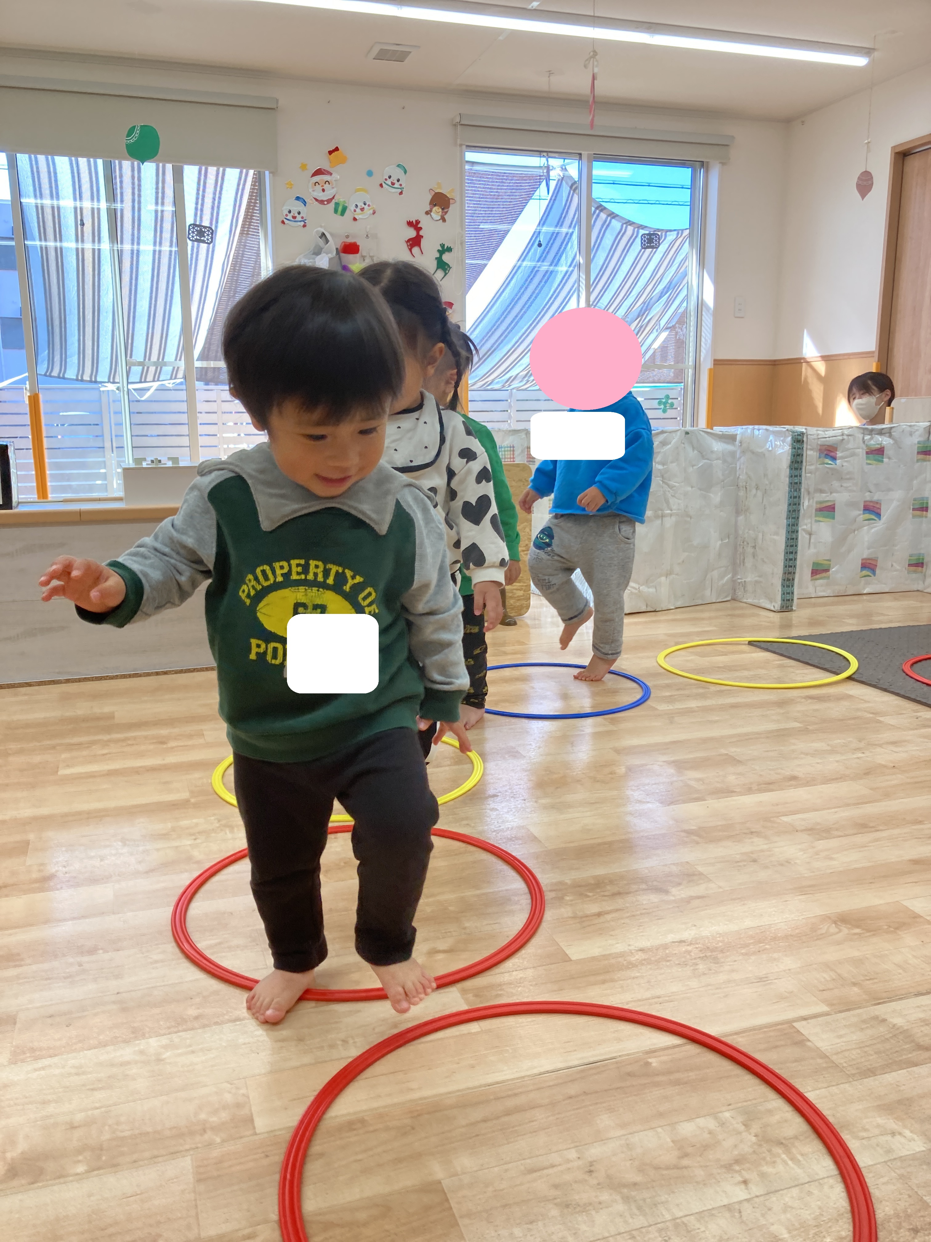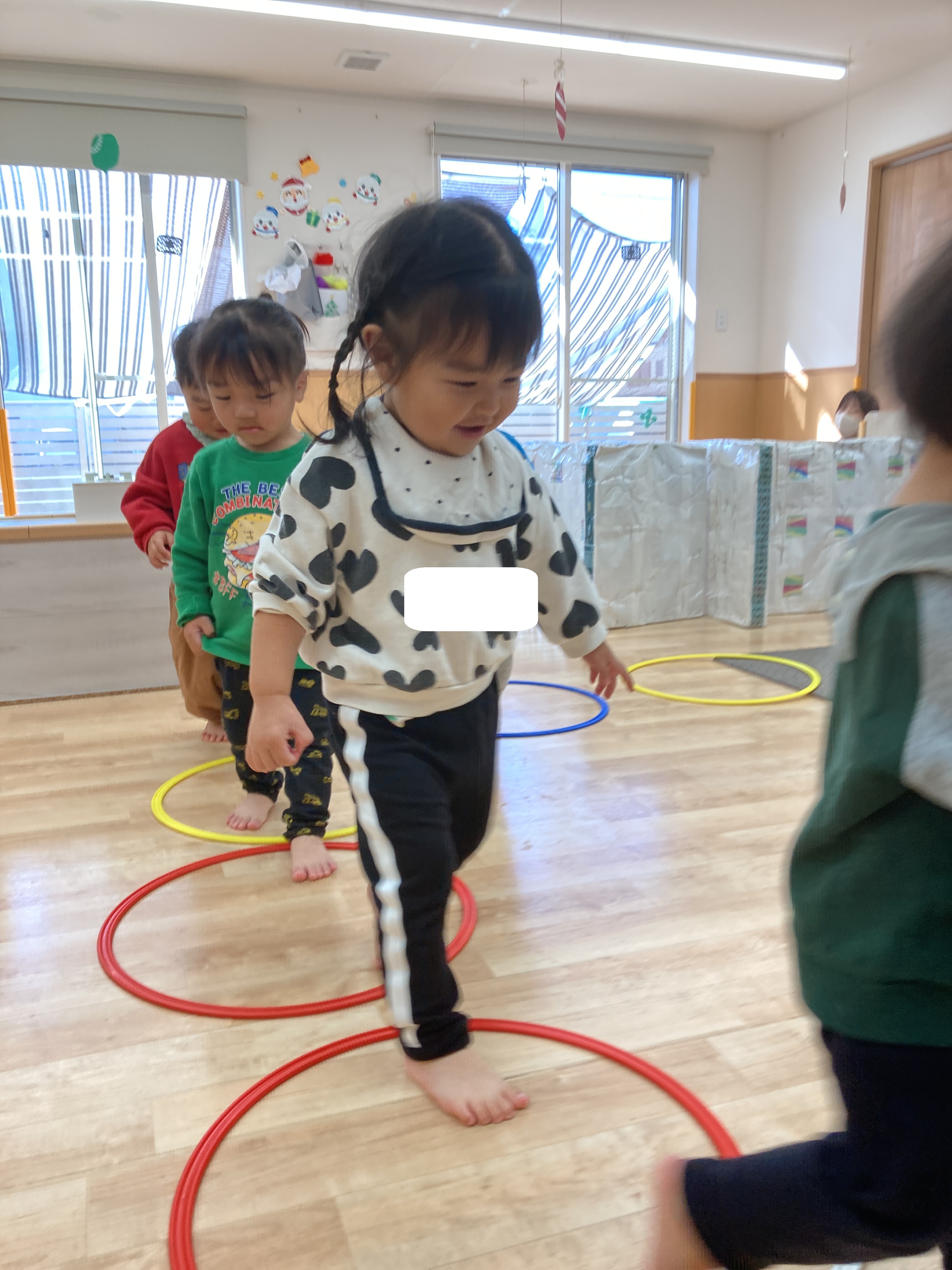 音楽に合わせてフラフープの上を上手に歩くことができましたよ👏