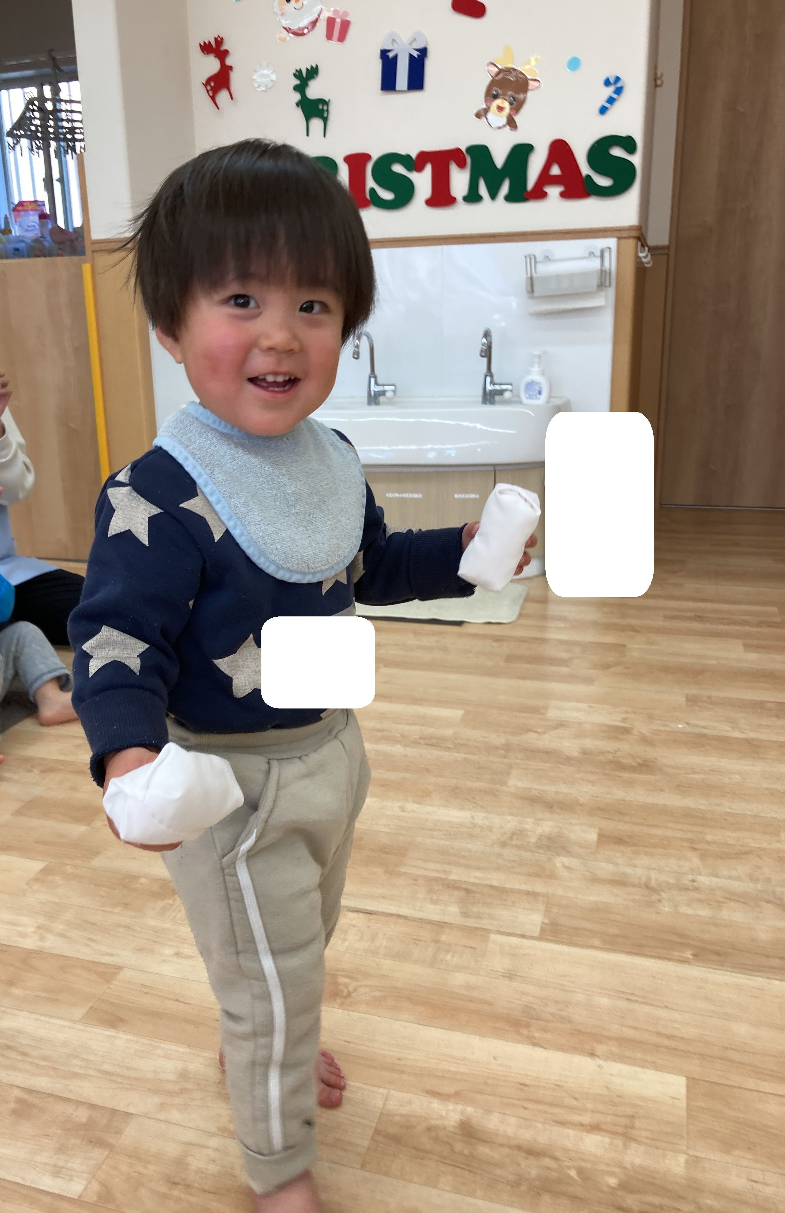 白色のお手玉を雪に見立てて遊びました⛄