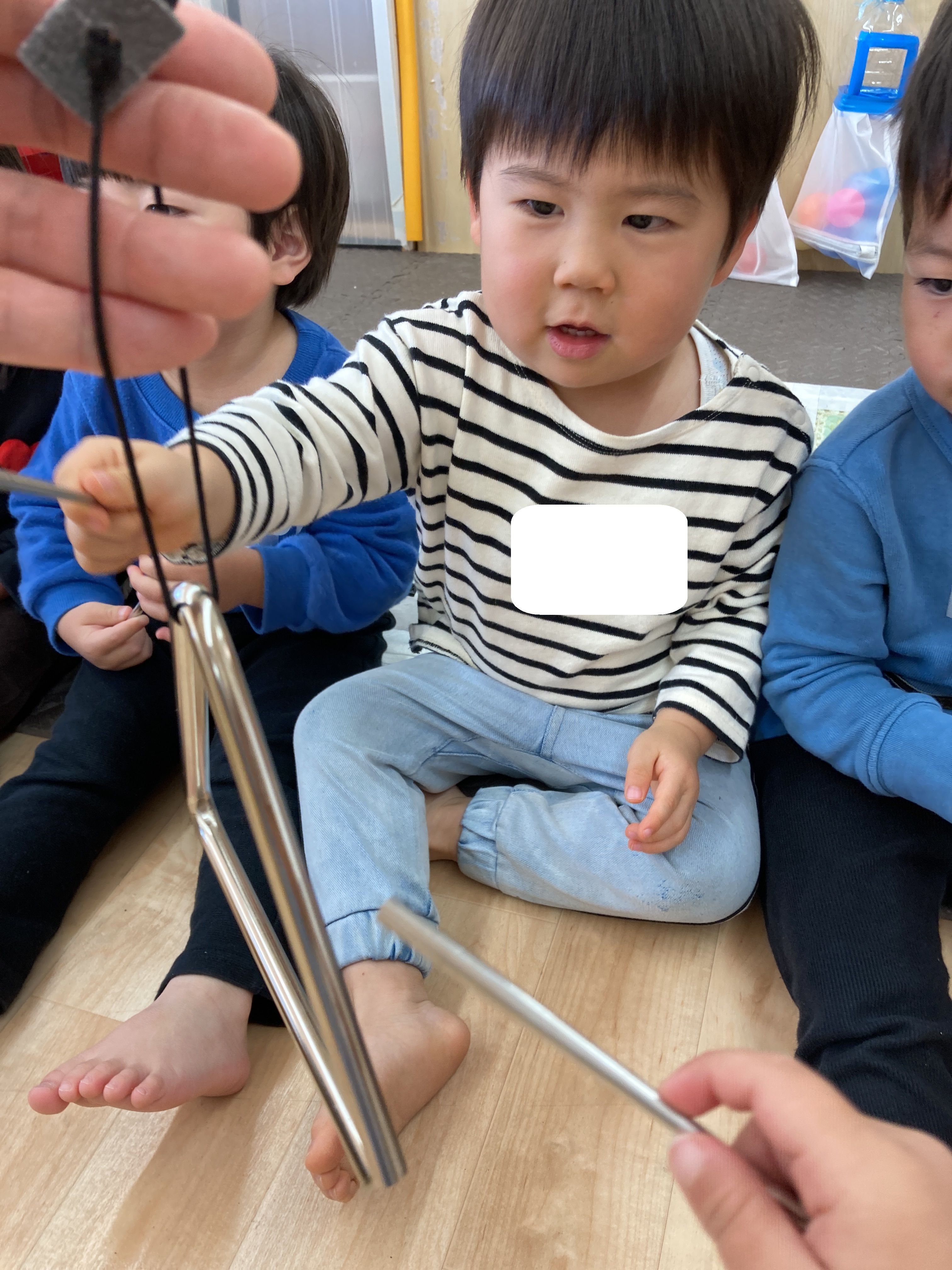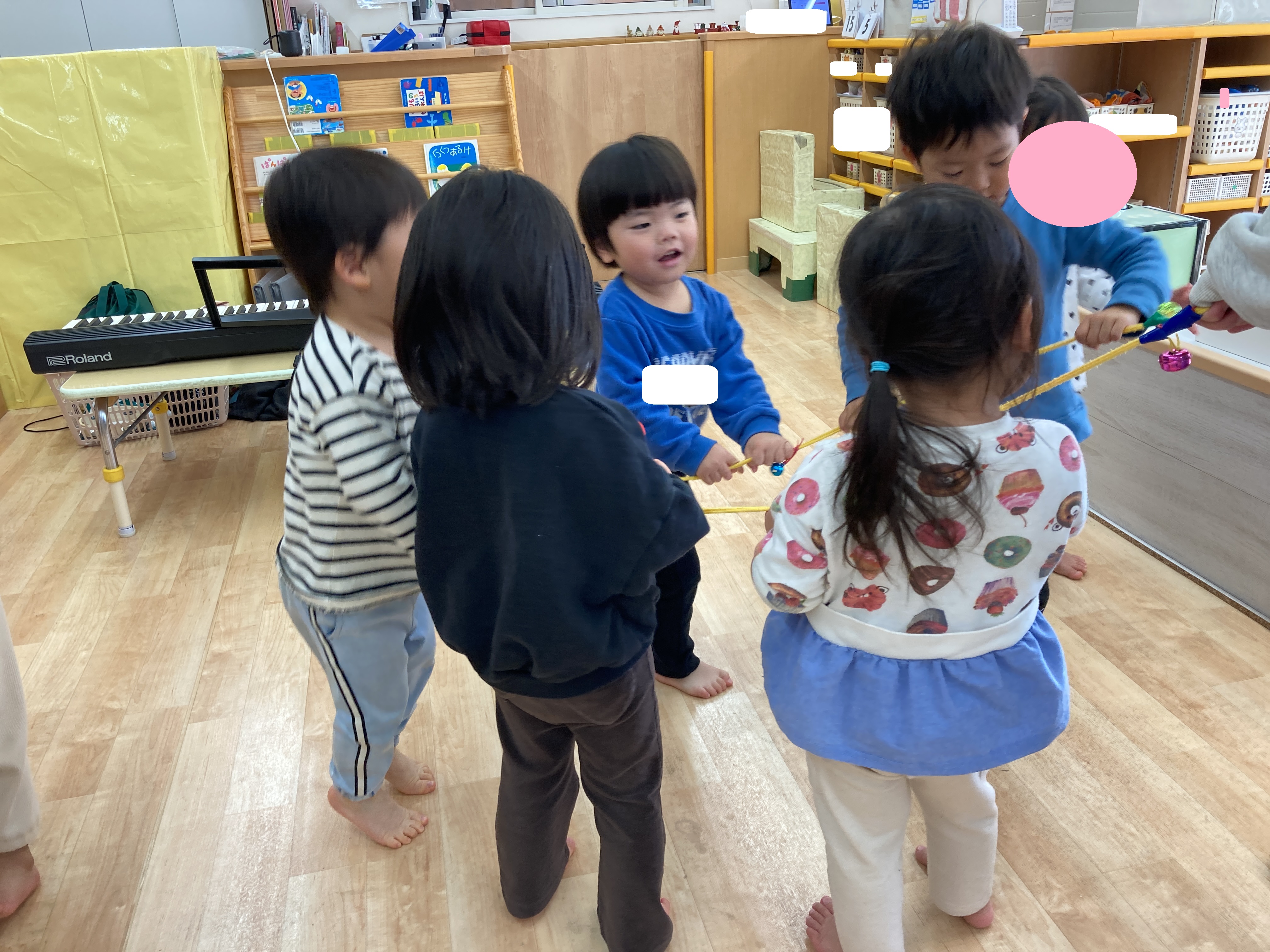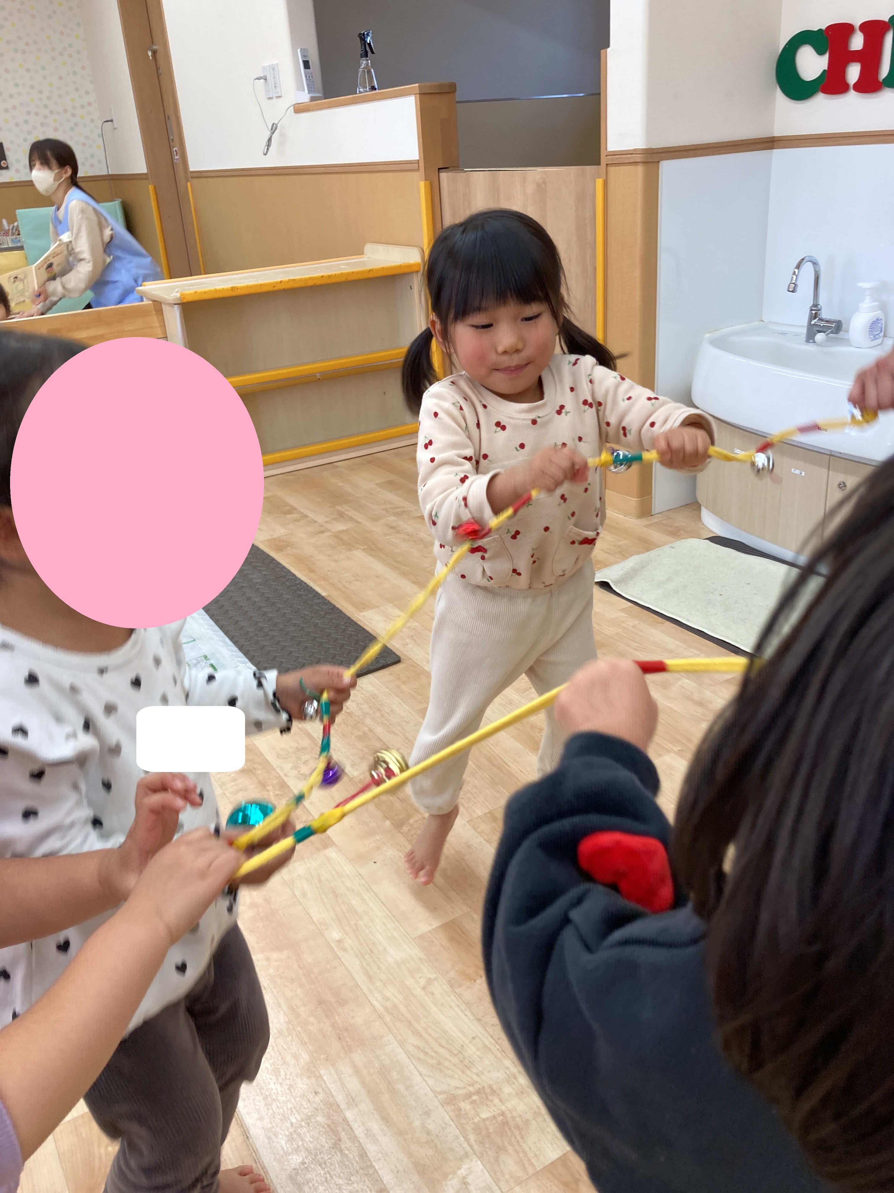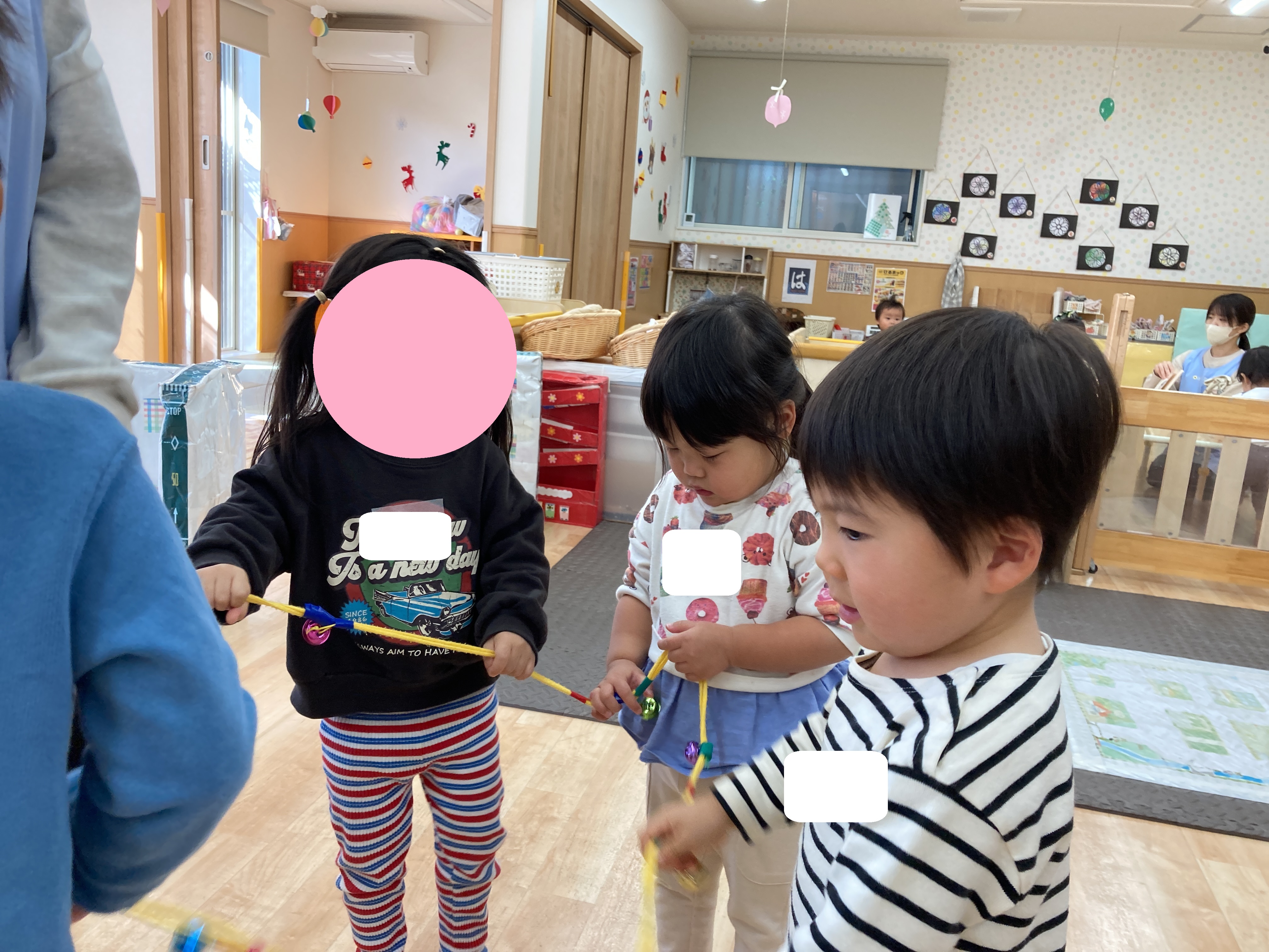 その後は音楽に合わせて、友だちと一緒に鈴を鳴らしました![]()