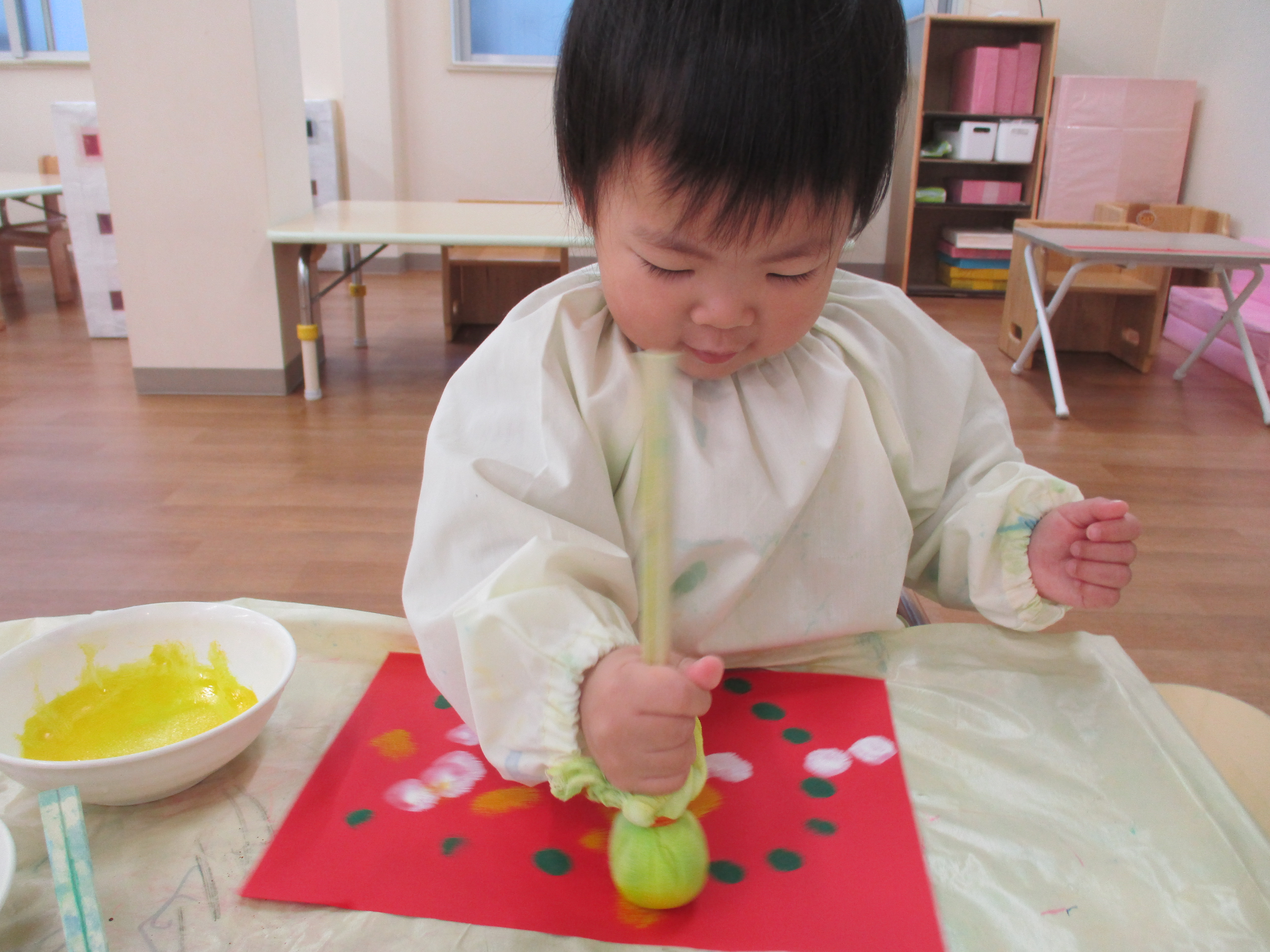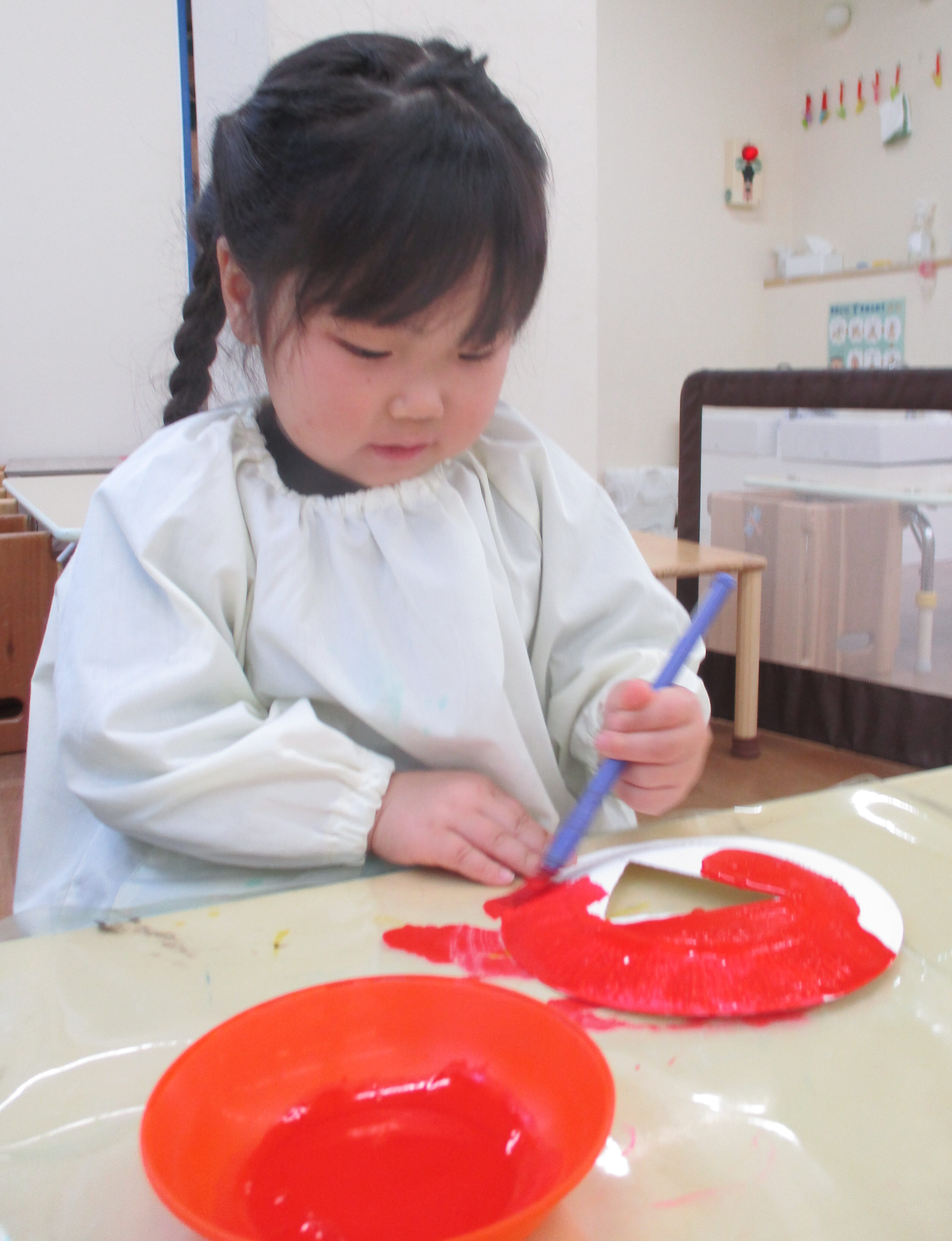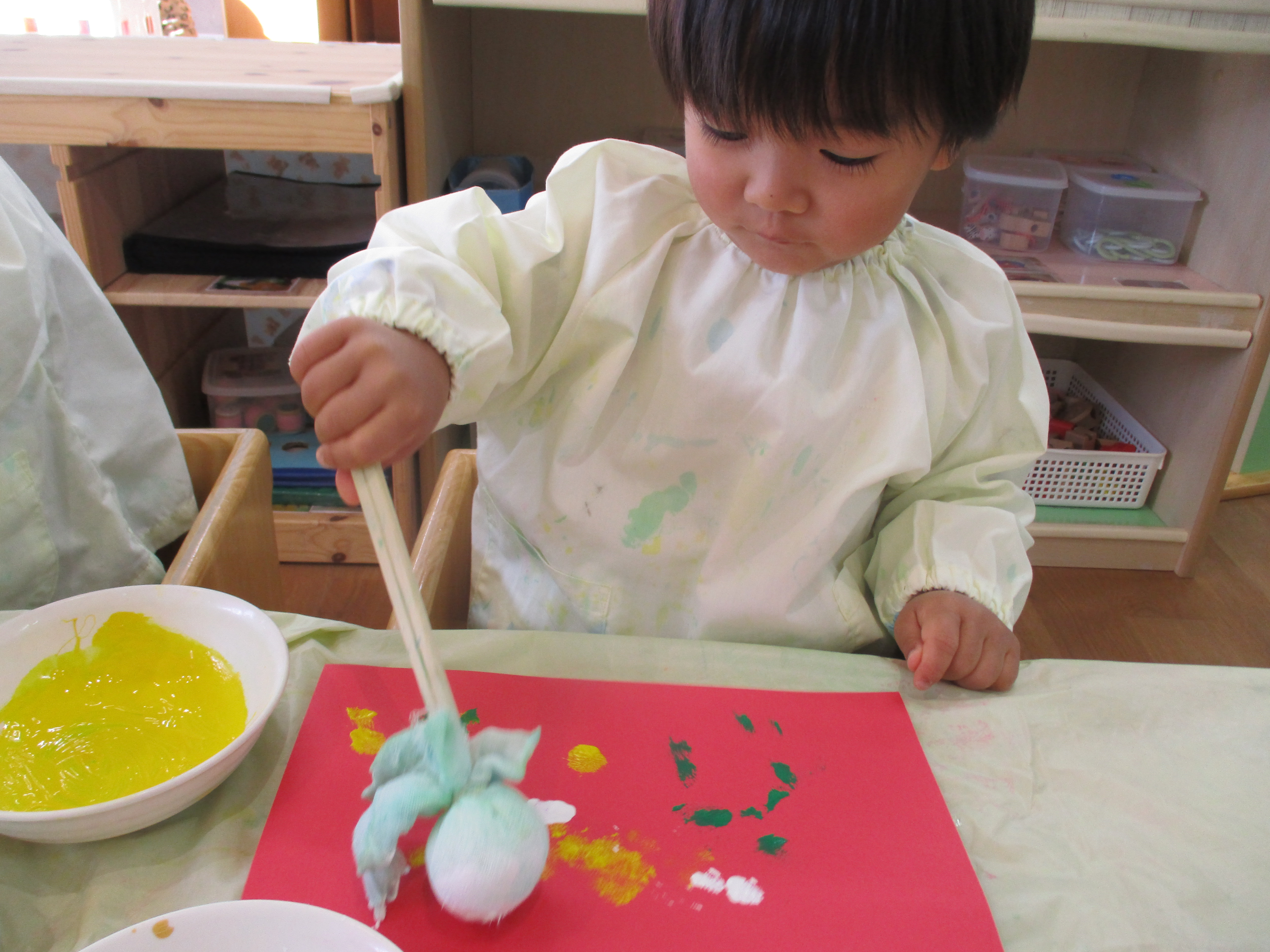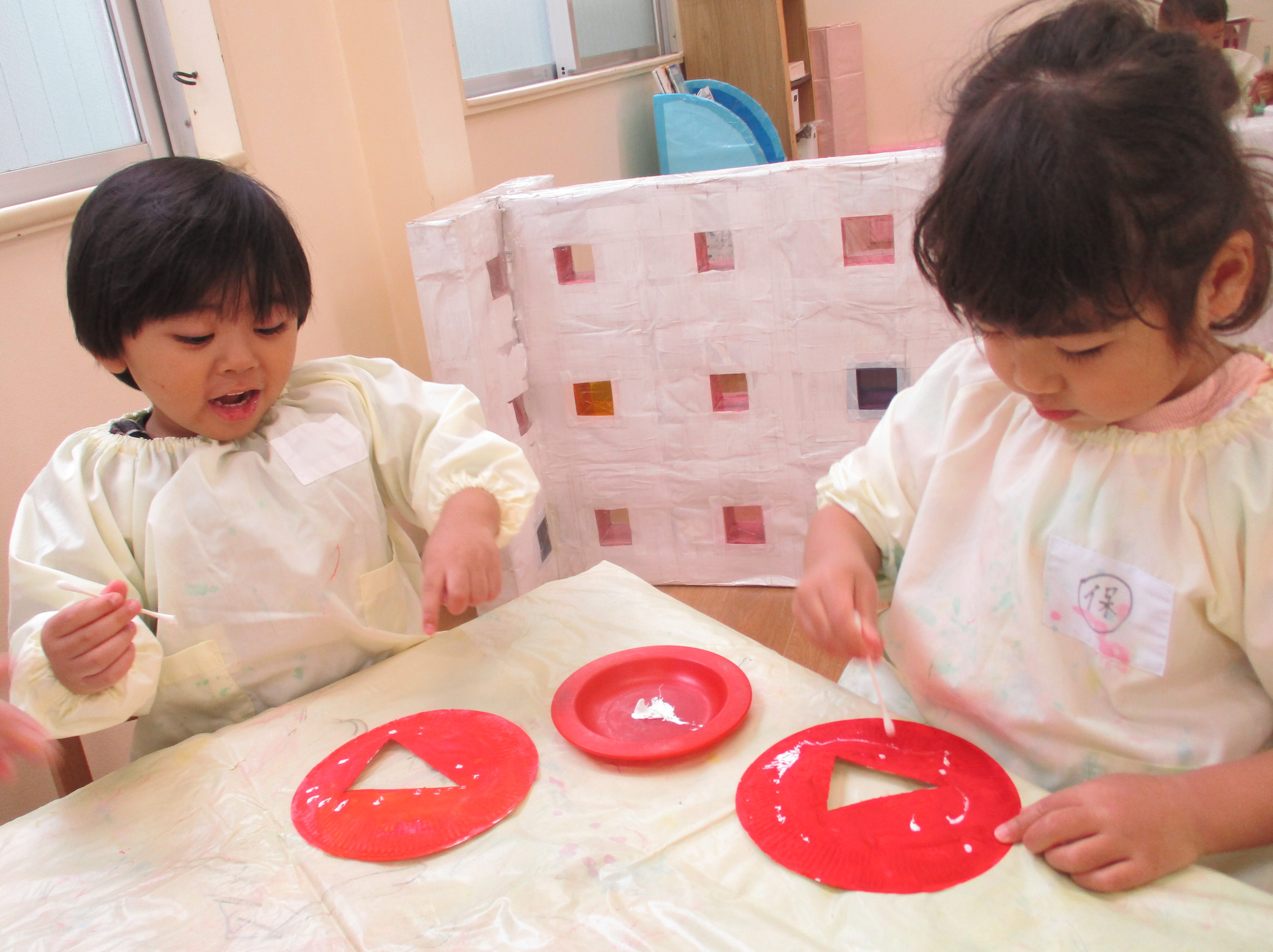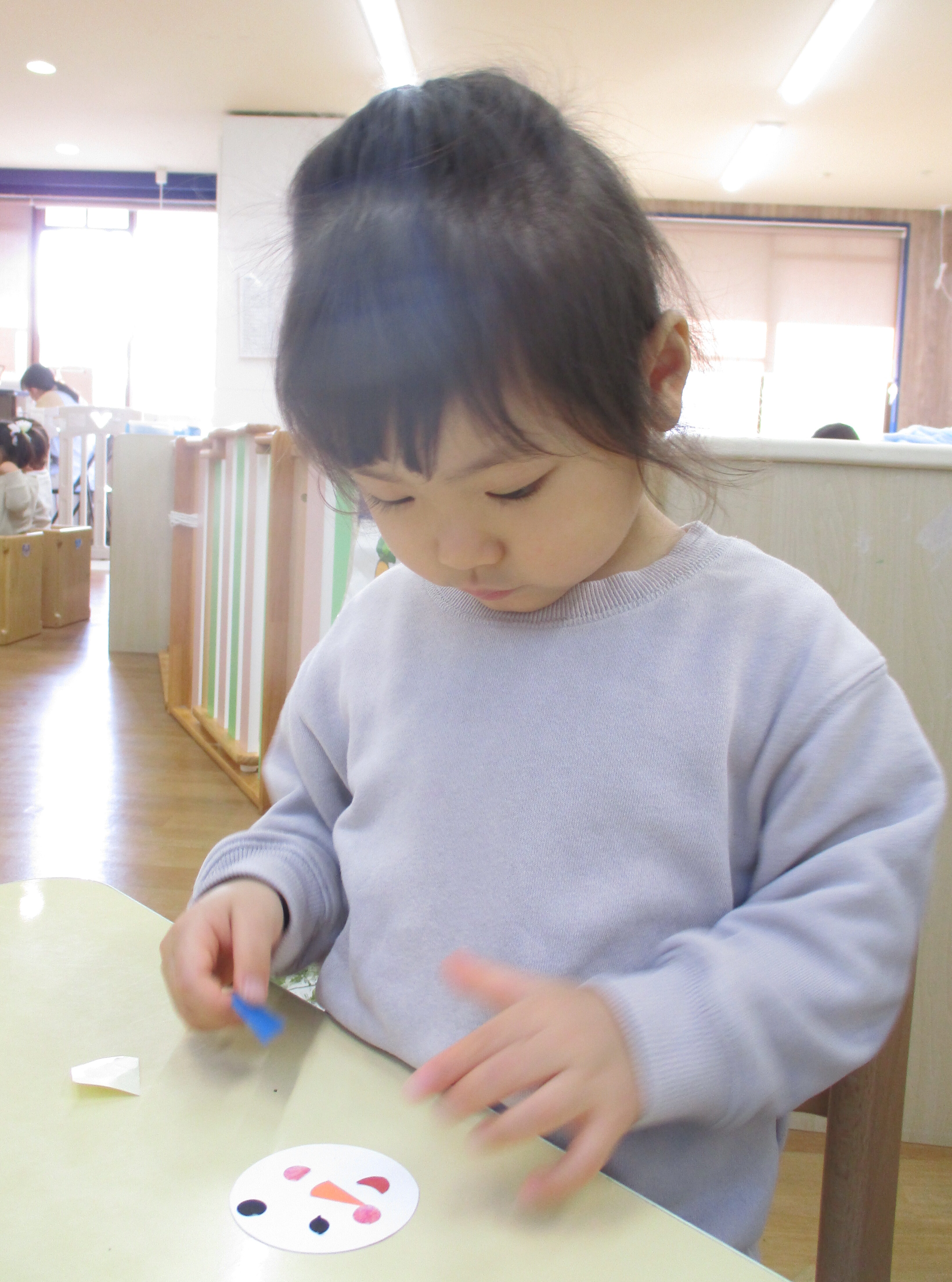 手先が器用になってきて、ハサミで画用紙を切ったりピンで糸を通したりすることができるようになりました![]()