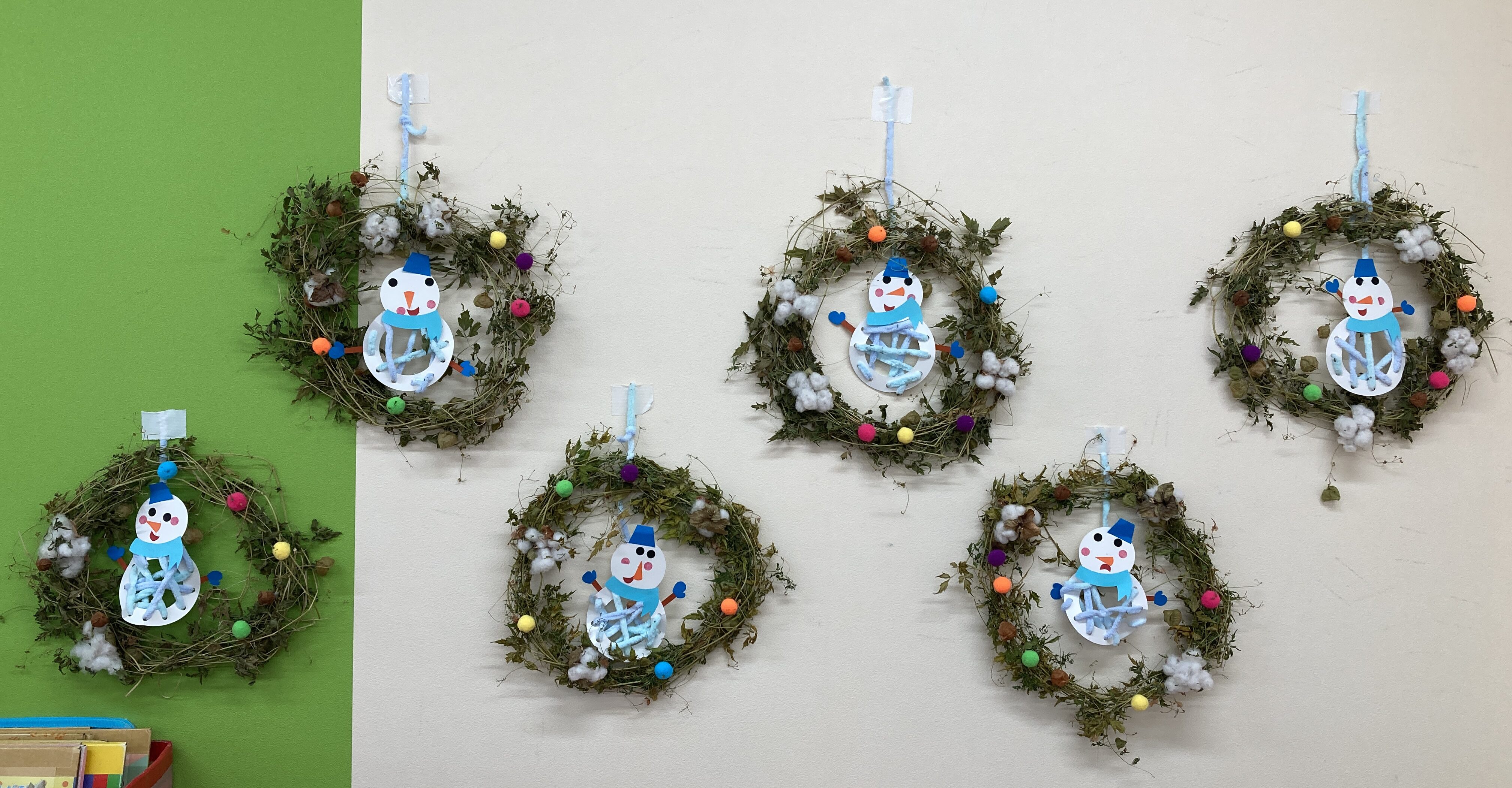最後にフウセンカズラのリースに雪だるまをつけてできあがり☆★