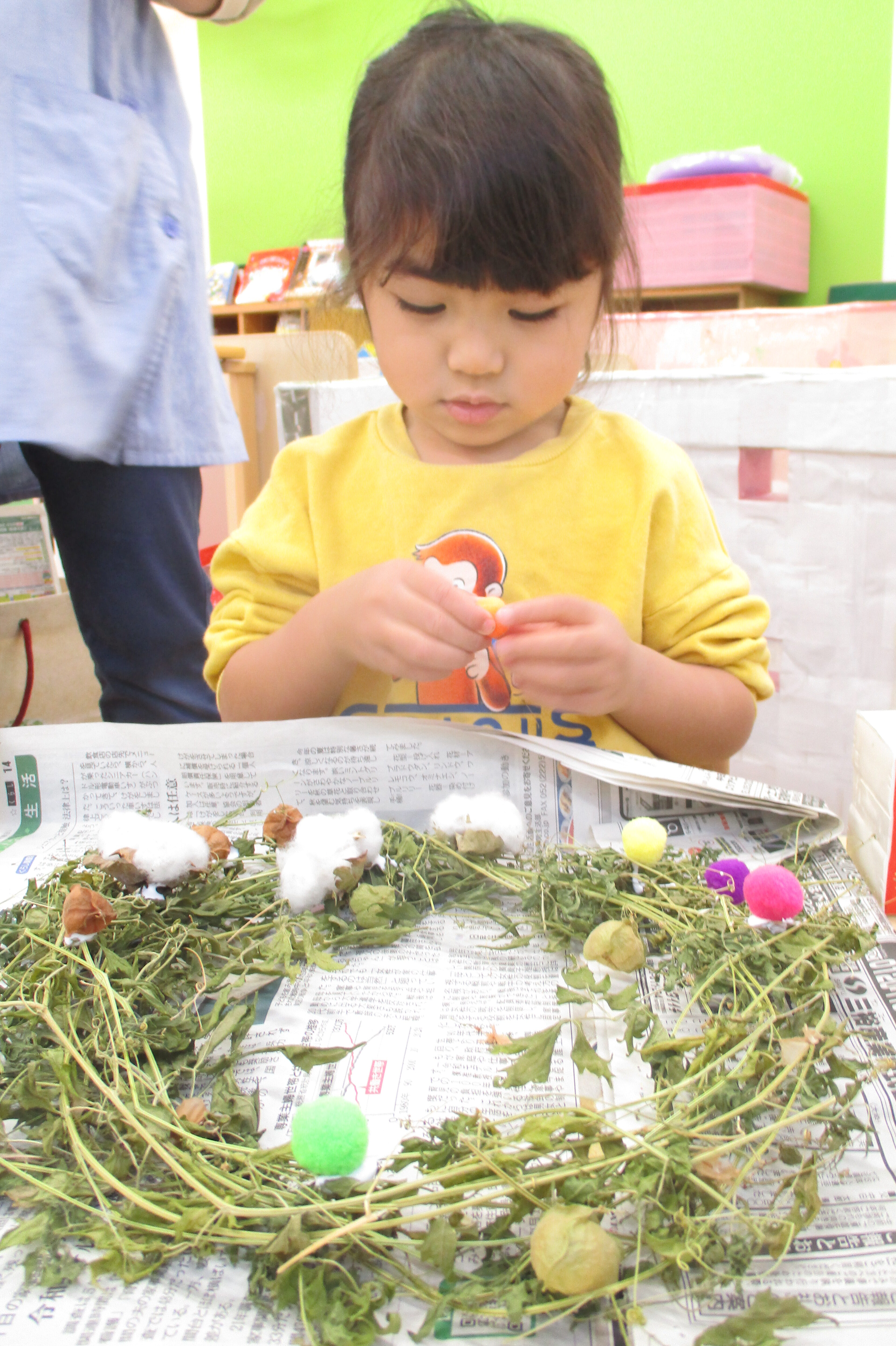 保育園で育てていたフウセンカズラを使ってリースを作りました ❢