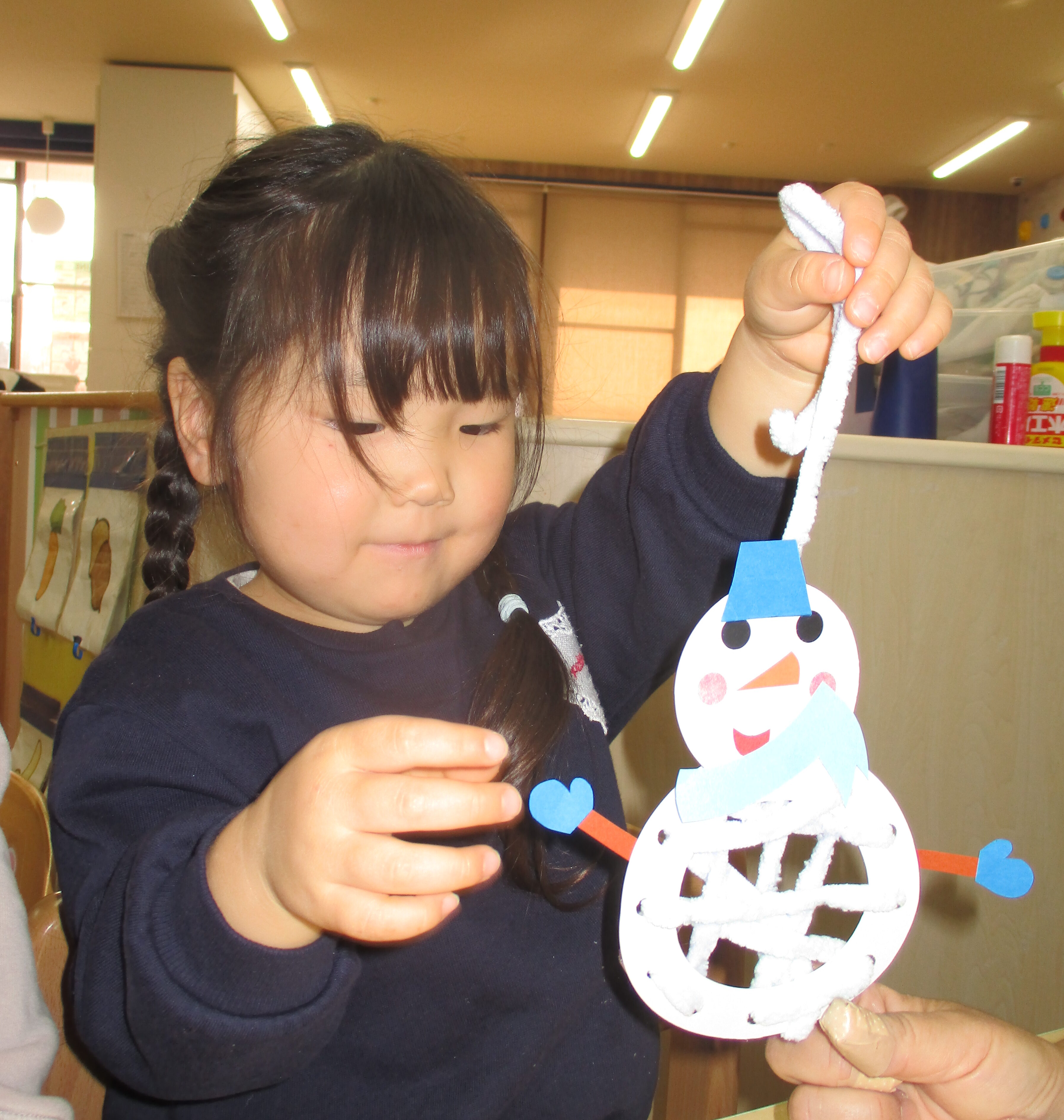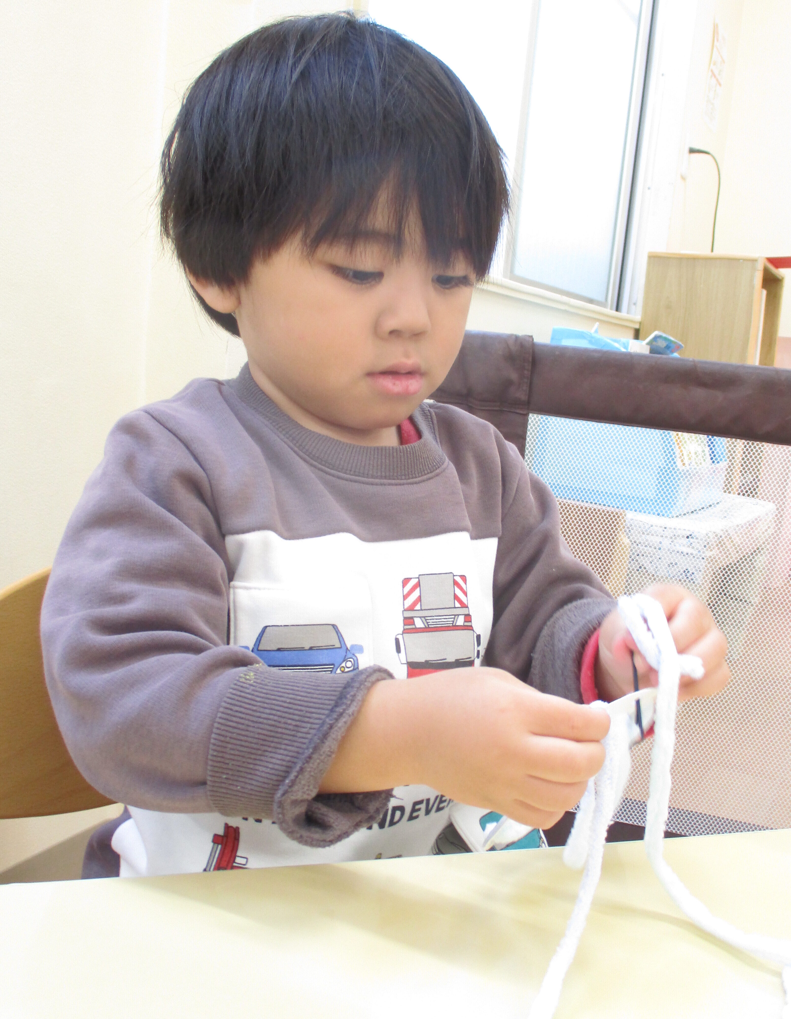 最後の穴に通すと「できたー!」と達成感を感じる姿が見られました![]()
