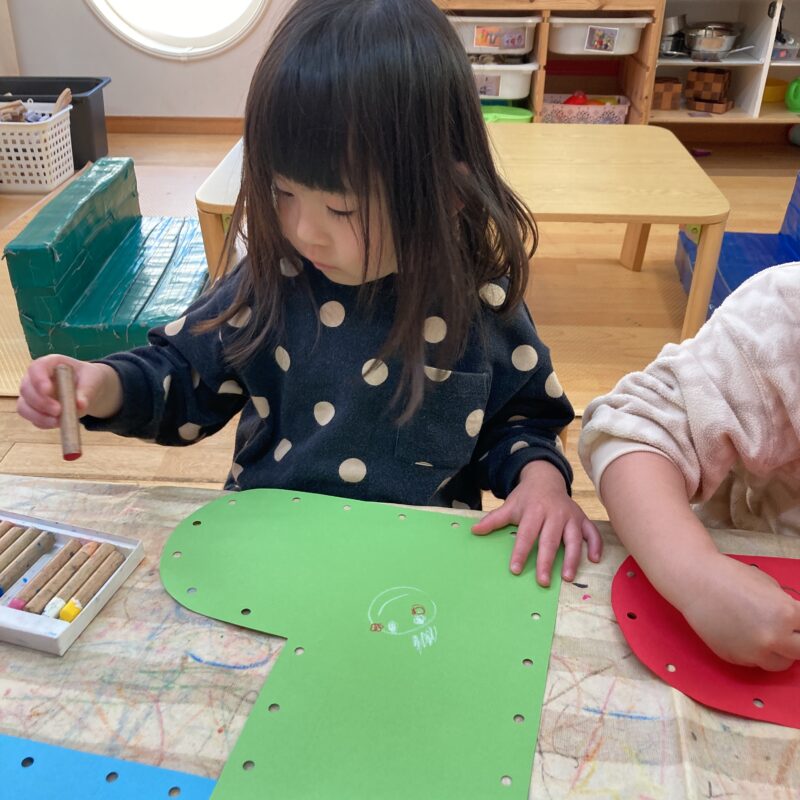 「ここに貼ろうかな?」と考えながら、思い思いに表現を楽しんでいます![]()
