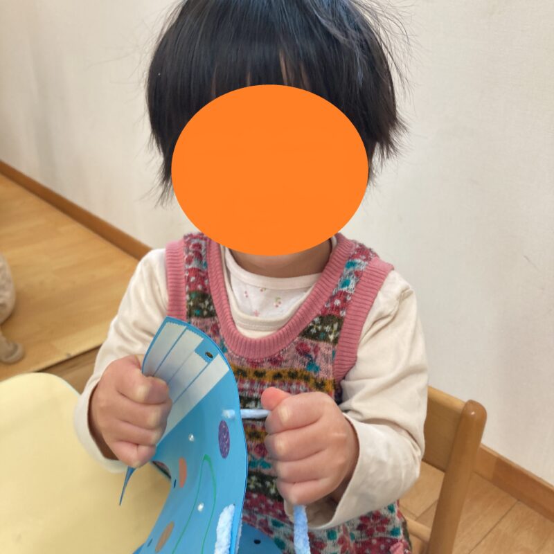 保育士がそばで声を掛けたり一緒にやってみたりすることで、最後まで諦めずに取り組もうとする姿が見られました。![]()