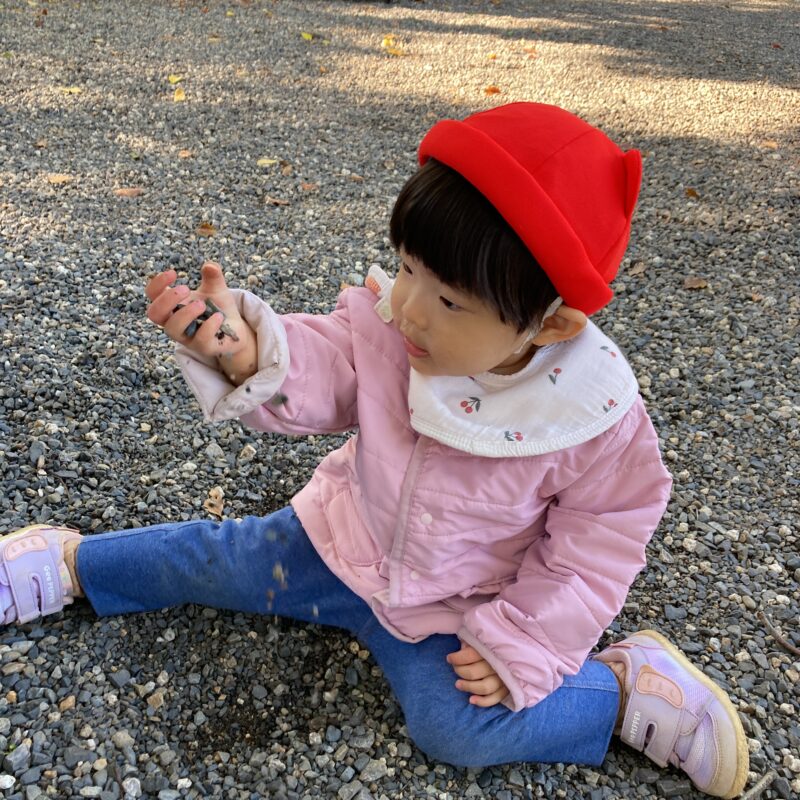 落ち葉🍂や木の実を拾ったり、鳩を見たりと自然を満喫します。