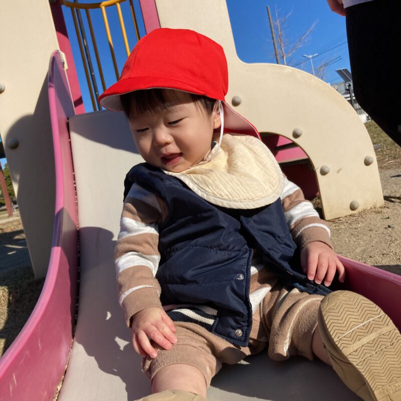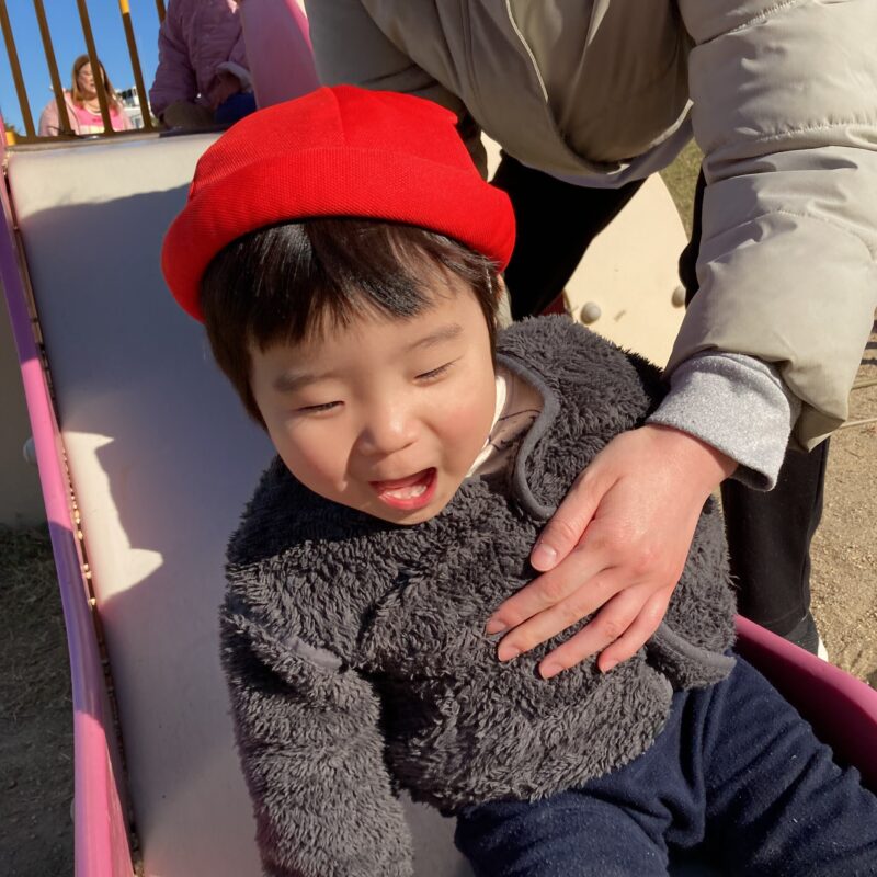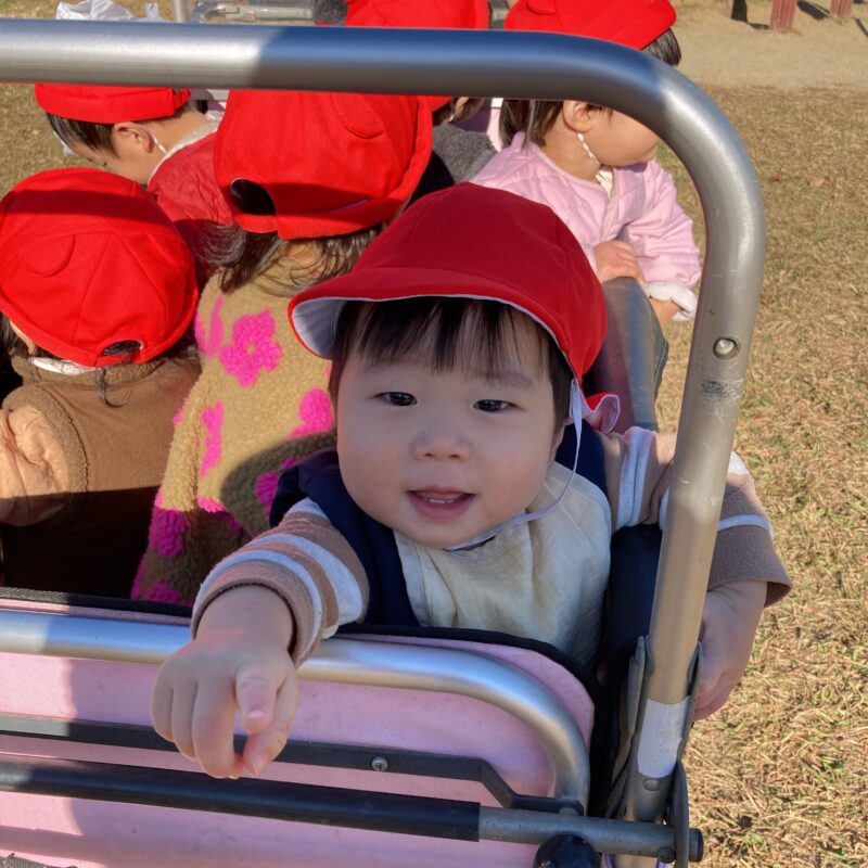 保育者に掴まってシュー!早いスピードにびっくりしたけど楽しかったね![]()