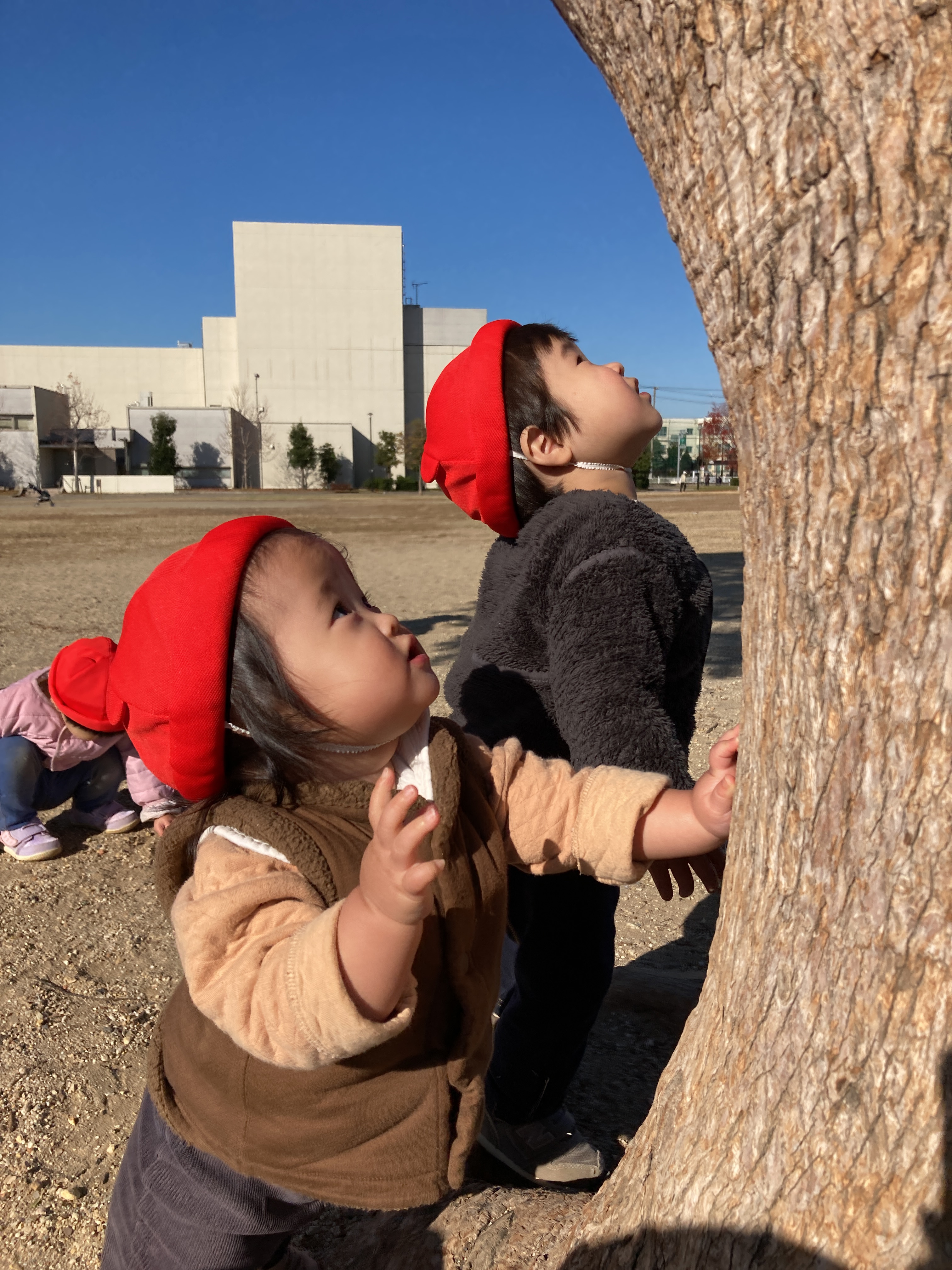 みんなでタッチ!辿り着くとお友だちと一緒に見上げています。
