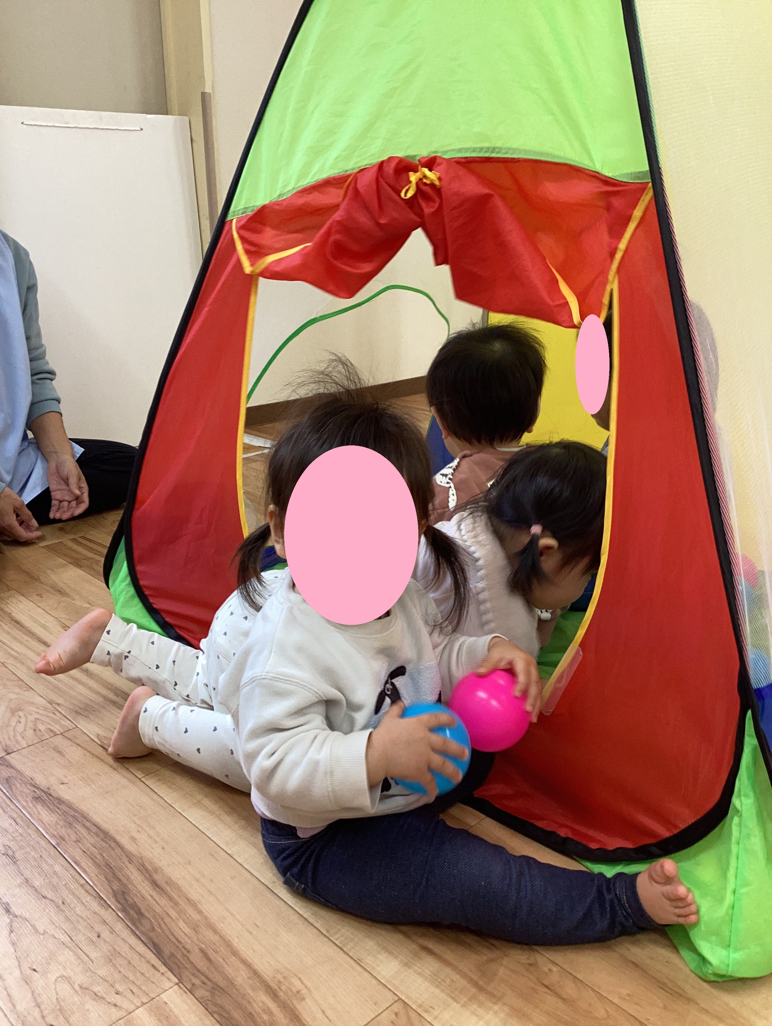 顔を隠して「いないいないばあっ!」 元気な笑い声とにこにこ笑顔の子ども達![]()