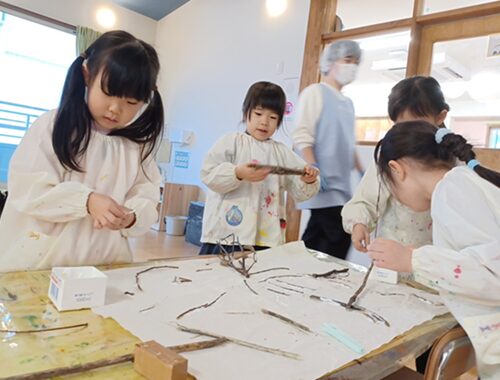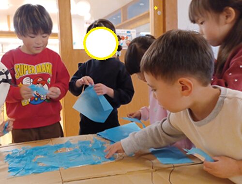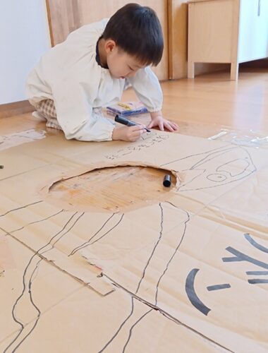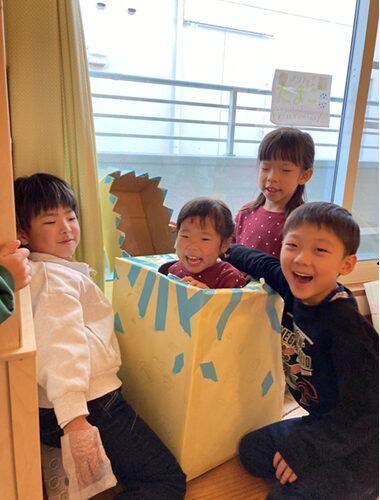 今回の活動を通して、みんなで協力して作品を作ることの楽しさや面白さを感じてもらえたかと思います。その気持ちと同時に、なかなか自分の意見が通らないもどかしさやお互いに寄り添い合って話し合うことの難しさを感じた子どもたち。時には相手の意見と違ったり、思いがすれ違ったりすることもありましたが、最後まで協力して作品を作り上げた子どもたちの姿はまた一段と成長した頼もしい年長さんの姿でした。