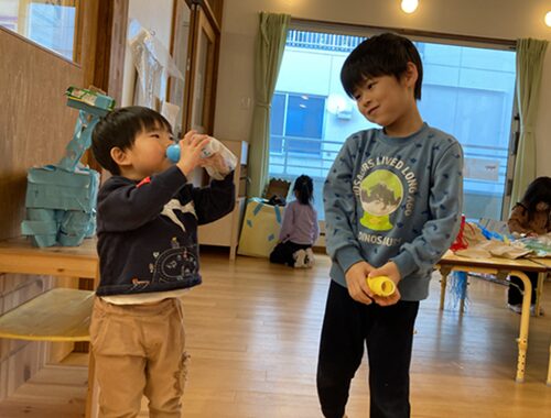 箱のふたを口に見立てたり、空の容器を足に見立てたり、子どもたちの豊かな発想力に驚かされました![]()