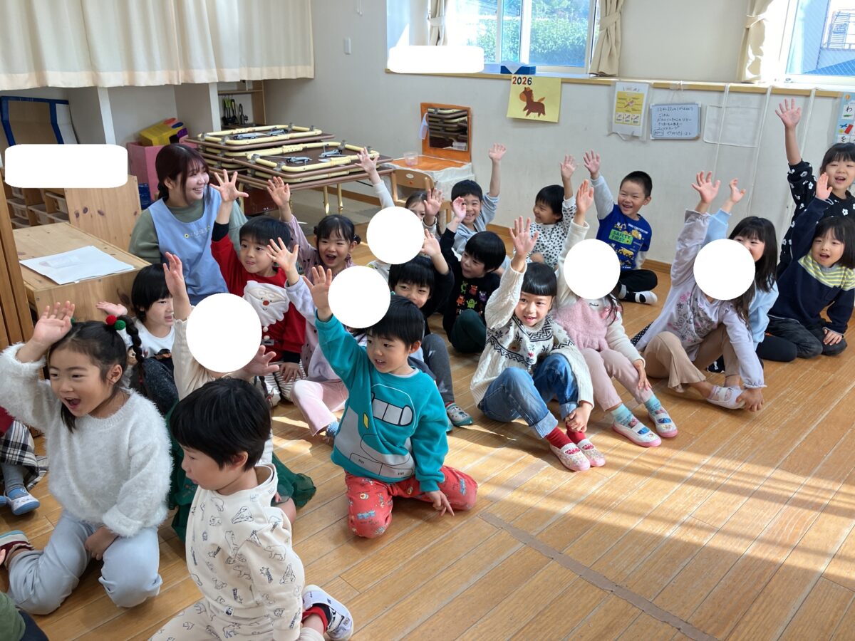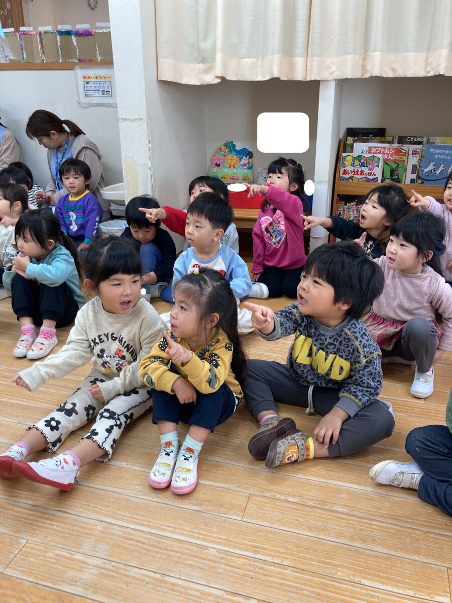 二択クイズでは、正解だと思う方に手をあげたり、どっちが正解か迷ってしまう子もいました![]()