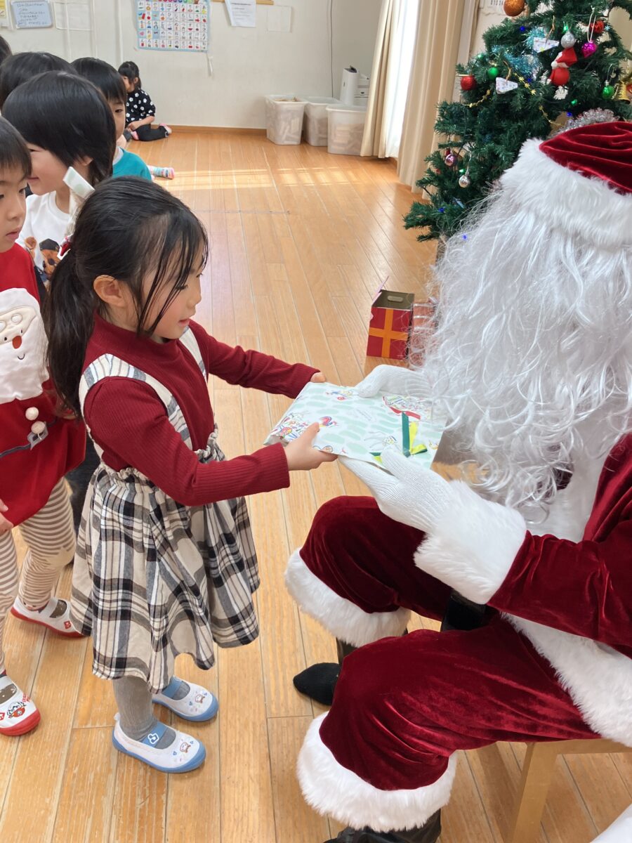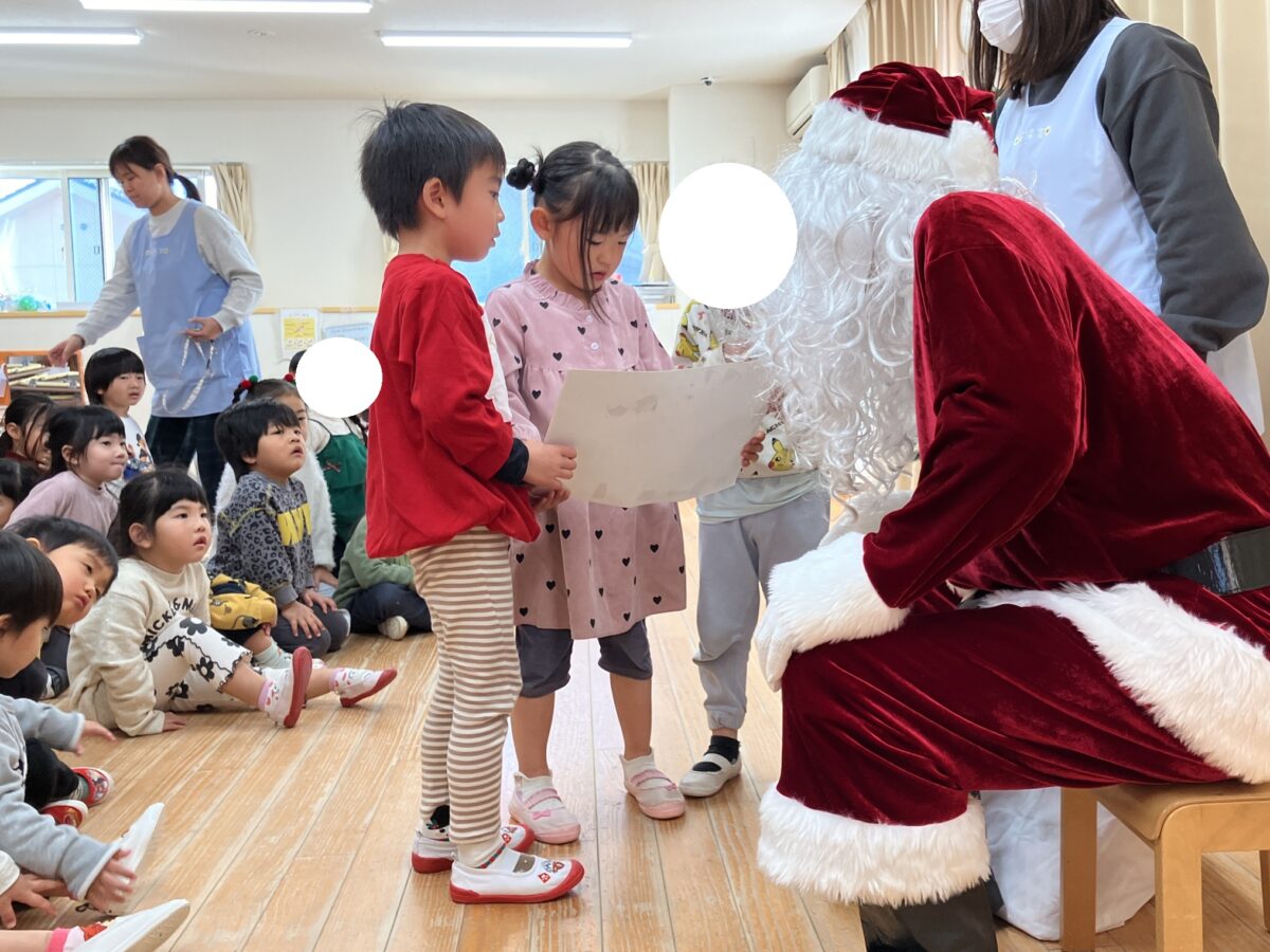 質問コーナーが終わると、4・5歳児がサンタさんに感謝の気持ちを込めて手紙を読んで渡しました![]()