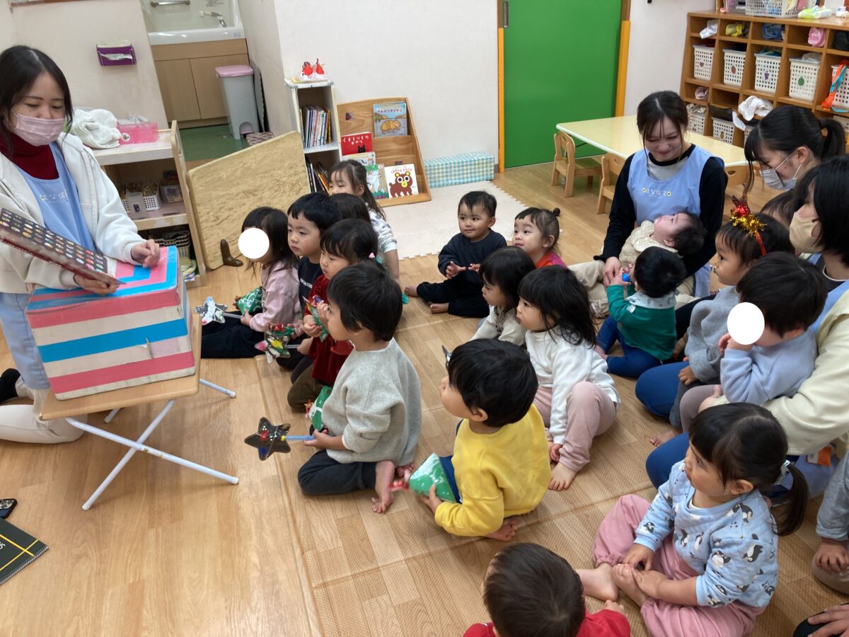 2025.12.25 名古屋市おおすかんのん前カテゴリ未選択 おおすにサンタがやってきた🎅🎄⭐ こんにちは、はな保育室おおすかんのん前です! 今回は23日に行われたクリスマス会の様子をお伝えします✨ 保育士からスケッチブックシアターと絵本の読み聞かせのプレゼント🎁💗 先生の出し物を見て、みんなでジングルベルを歌っていると…🎅 「サンタさんだ~!」 サンタさんに一人ずつプレゼントを貰いにっこり また来年も来てねサンタさん 次回もお楽しみに!