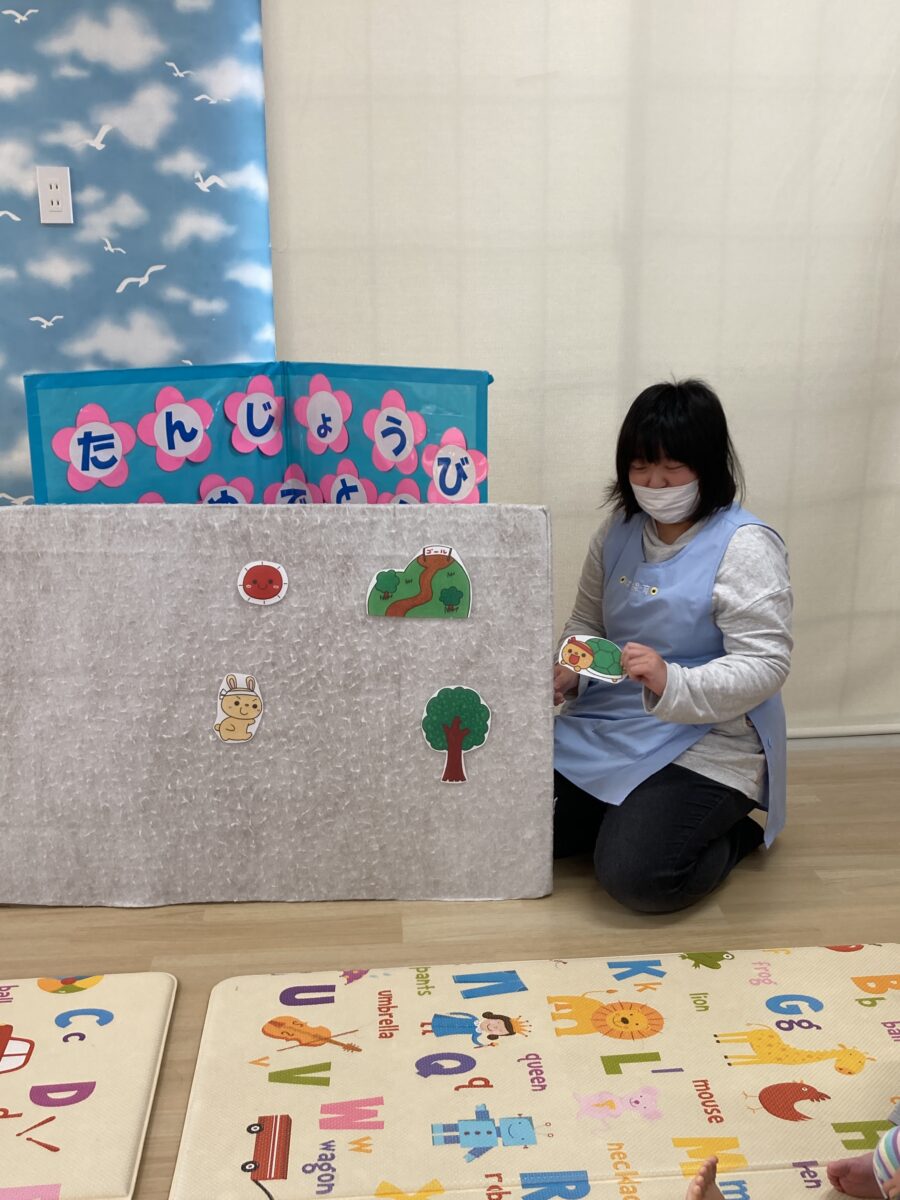 保育士からのプレゼントは「うさぎとかめ」のパネルシアターでした🐇🐢